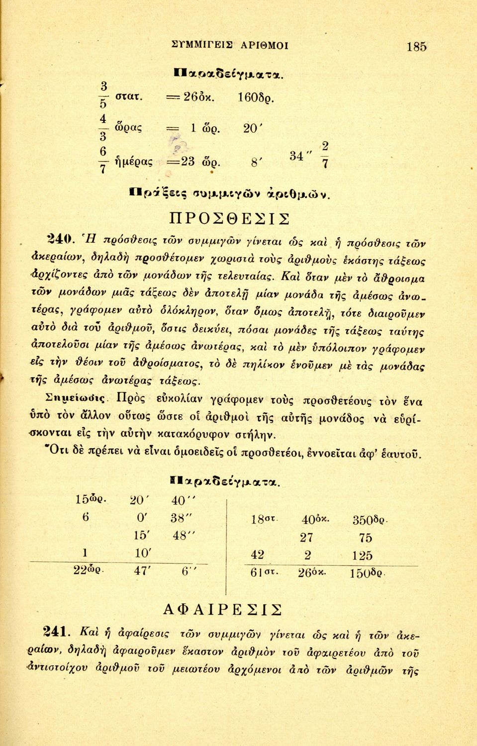 Σχολικό εγχειρίδιο Αριθμητικής για τα Γυμνάσια και Λύκεια που εστιάζει στις αριθμητικές πράξεις με ακέραιους αριθμούς και κλάσματα και είναι χωρισμένο σε ορισμούς, θεωρήματα και ασκήσεις.