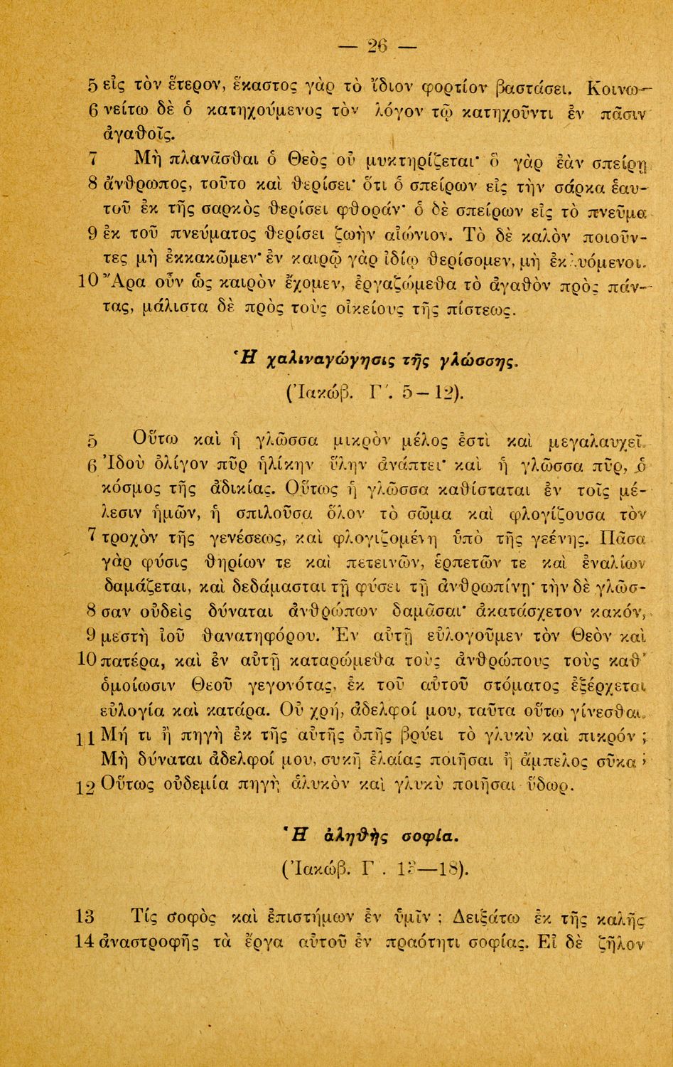 Σχολικό εγχειρίδιο Θρησκευτικών για την Γ΄ Γυμνασίου, τα Διδασκαλεία και τα Ανώτερα Παρθεναγωγεία που περιέχει περικοπές από τα βιβλία της Καινής Διαθήκης και ερμηνευτικές σημειώσεις.
