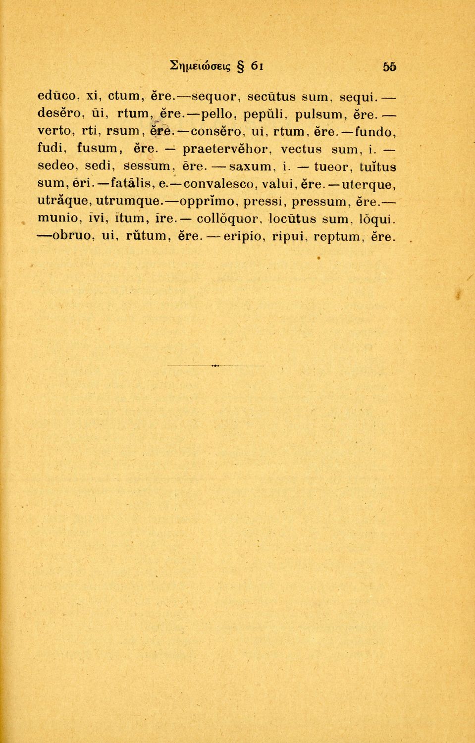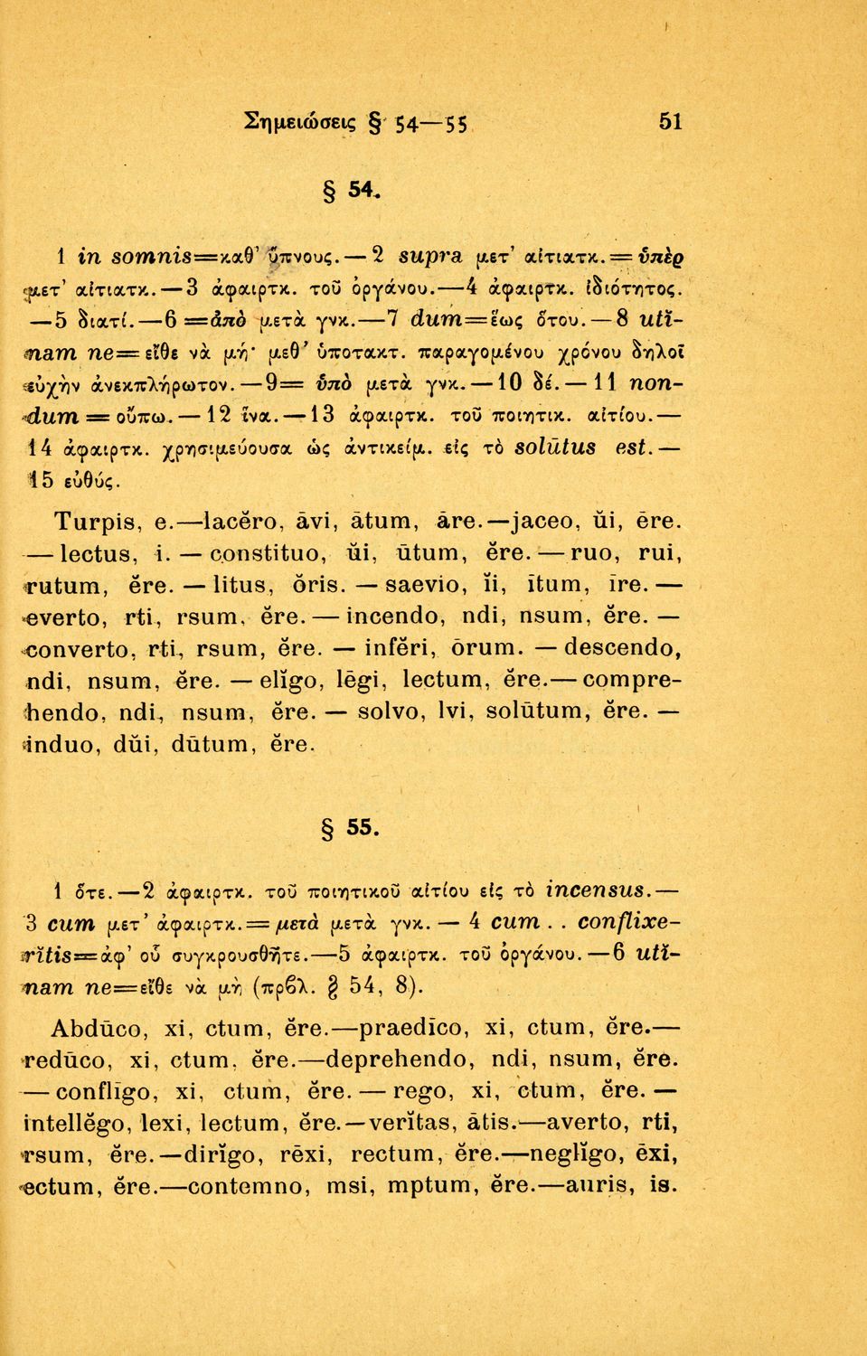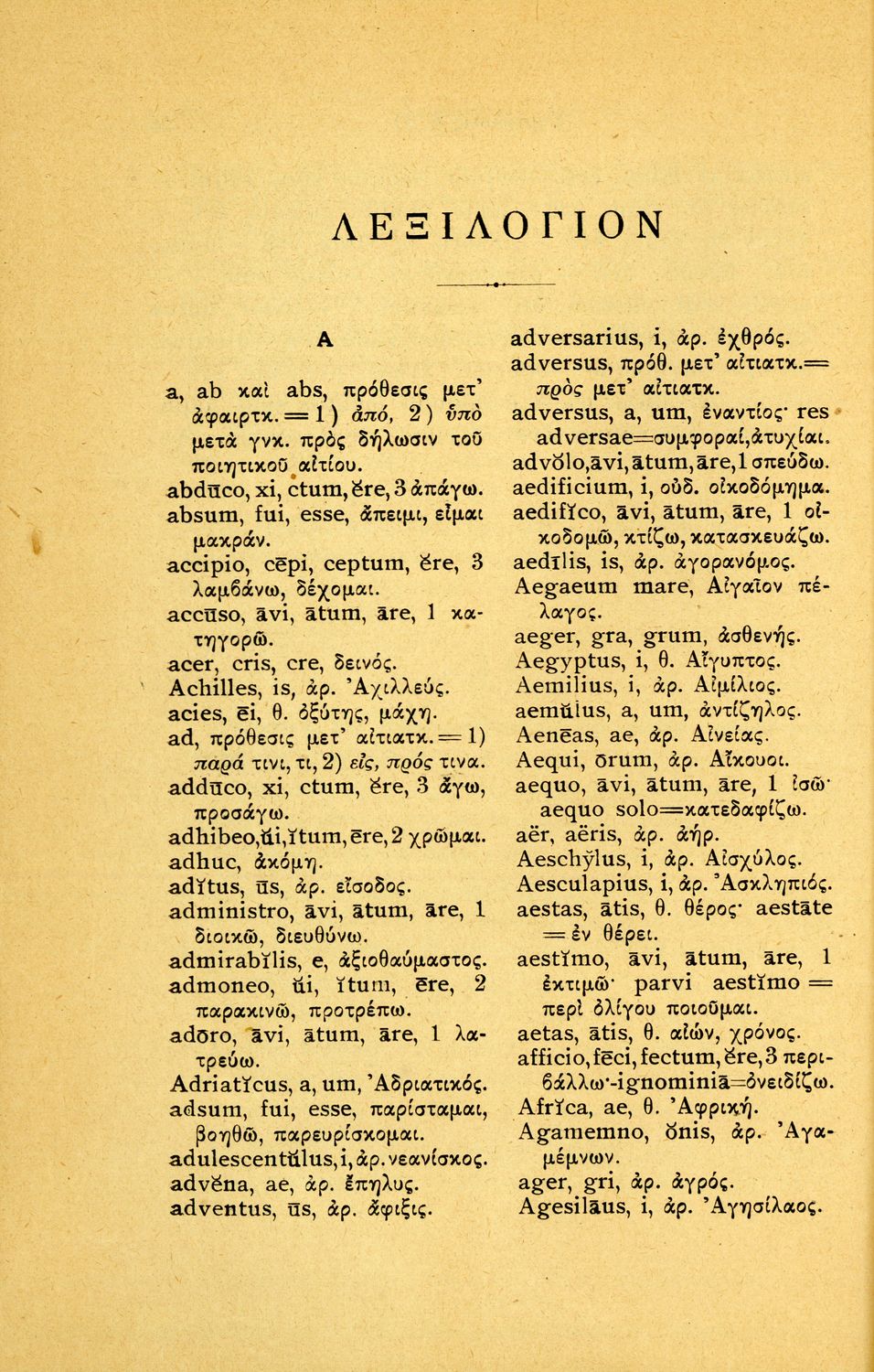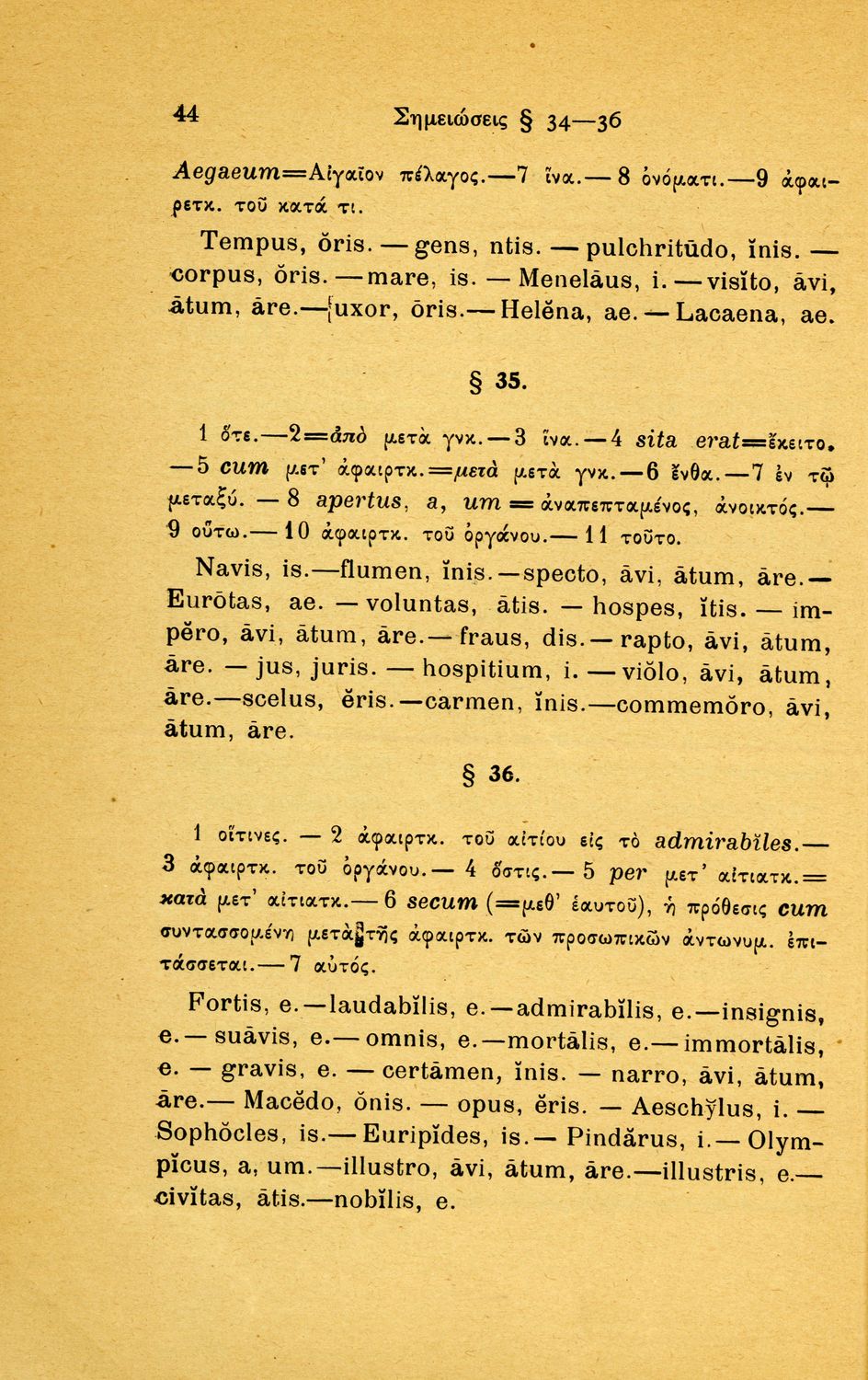 Σχολικό εγχειρίδιο Λατινικών για τη Γ΄ Γυμνασίου που περιέχει 54 κείμενα/περικοπές στα λατινικά, ερμηνευτικά υπομνήματα, λεξιλόγιο και κατάλογο με τα συντακτικά φαινόμενα (αφαιρετική, προθέσεις, σύνδεσμοι) που