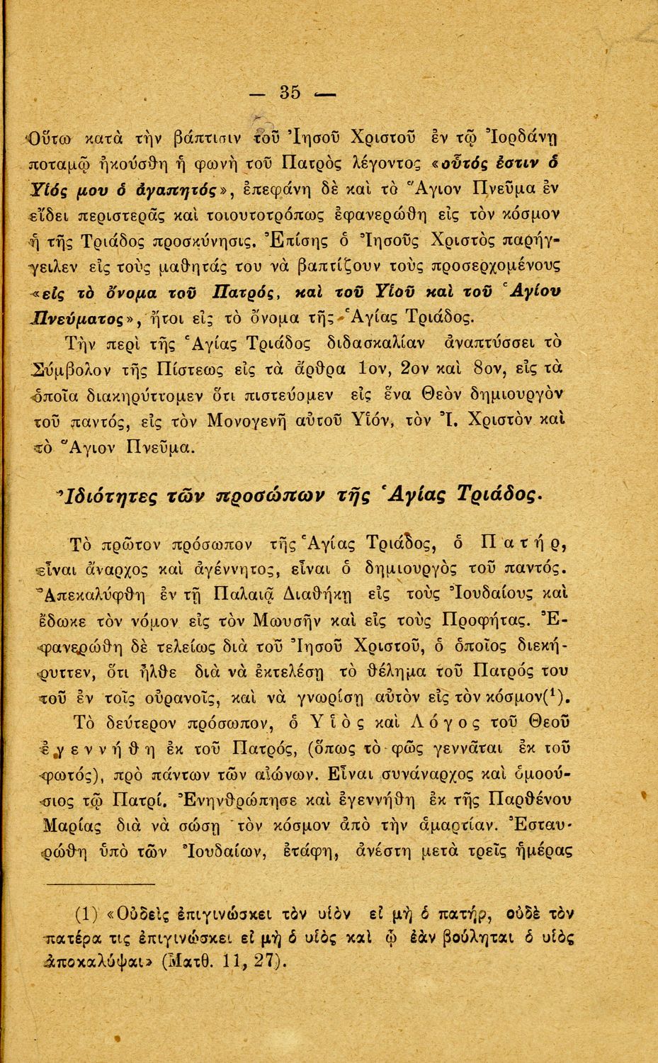 Βαθμίδα εκπαίδευσης: Δευτεροβάθμια Τάξη: Γ' Ελληνικού Σχολείου Μάθημα: Θρησκευτικά Γλώσσα: Καθαρεύουσα Παρουσίαση περιεχομένου: Σχολικό εγχειρίδιο Θρησκευτικών Γ' Ελληνικού Σχολείου που περιλαμβάνει εισαγωγή στη χριστιανική κατήχηση και τα δόγματά της και πραγματεύεται δογματικά και ηθικά ζητήματα της ορθόδοξης παράδοσης. |