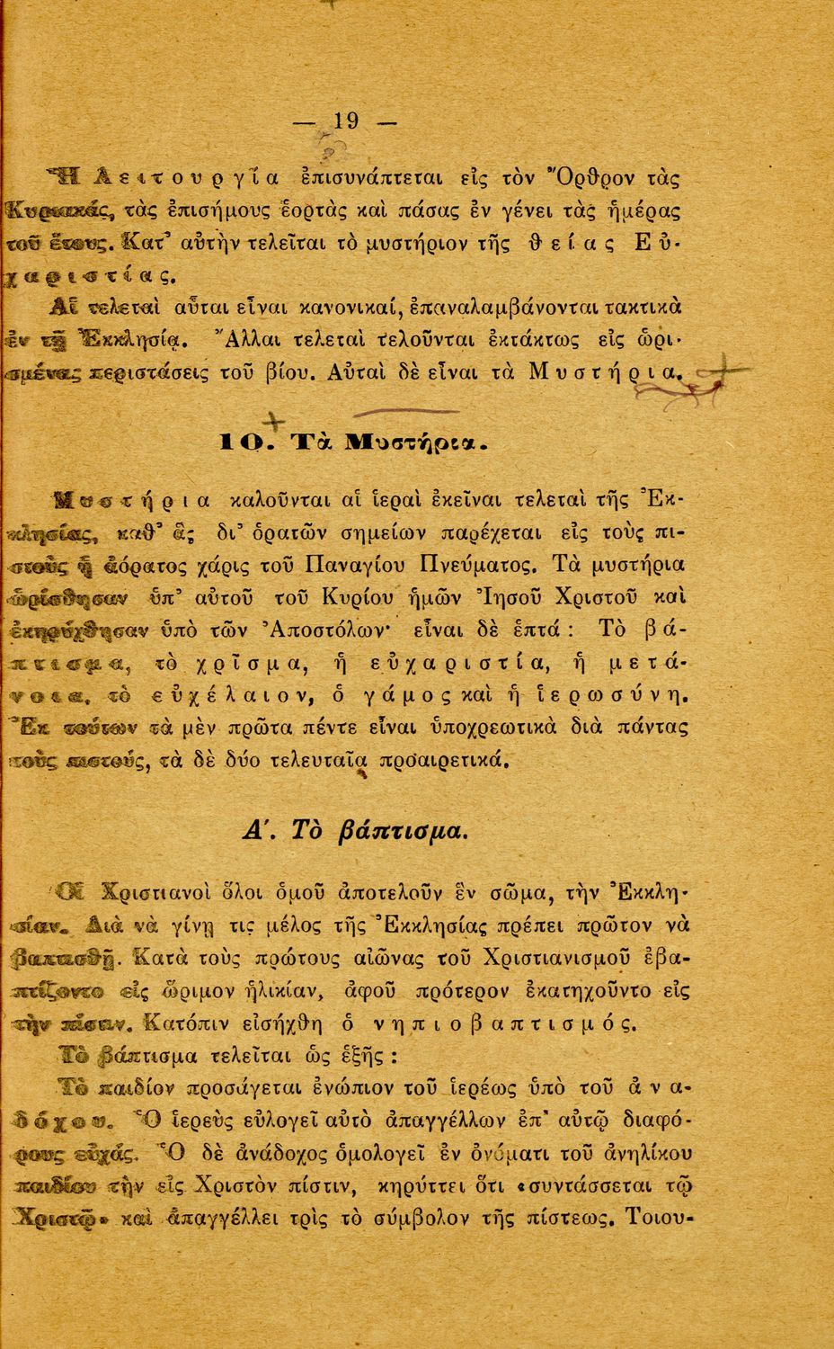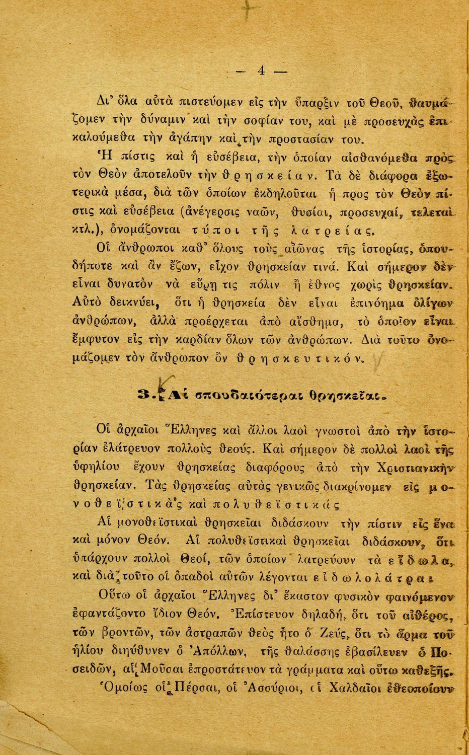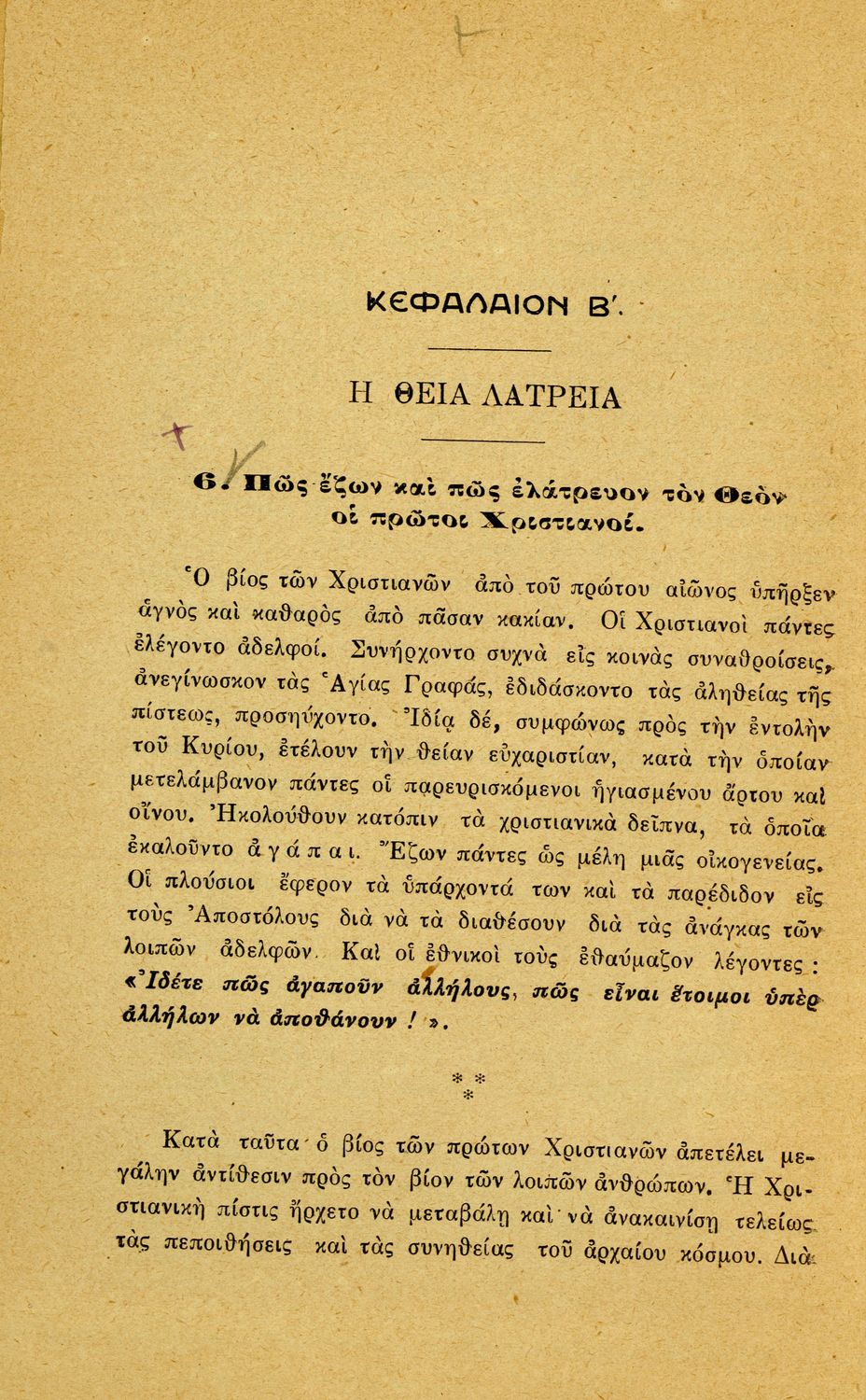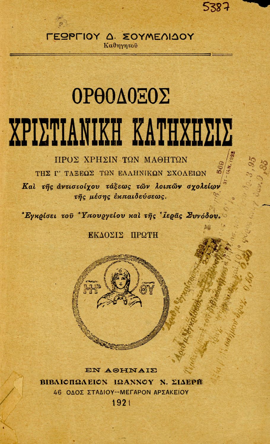 Σχολικό εγχειρίδιο Θρησκευτικών για τα Ελληνικά Σχολεία και Παρθεναγωγεία που εστιάζει σε θέματα χριστιανικής ηθικής και σε δογματικά και ηθικά ζητήματα της ορθόδοξης κατήχησης.