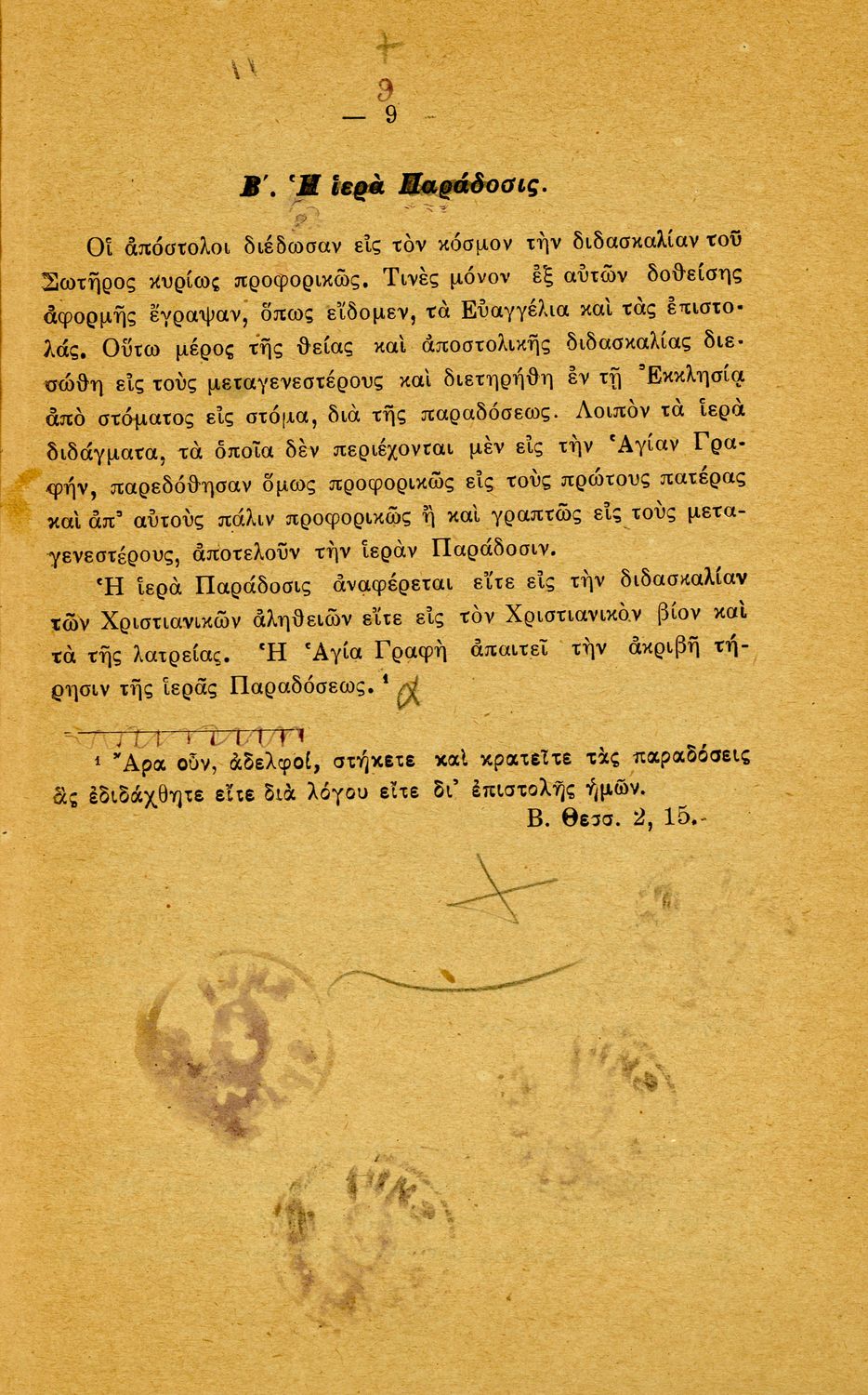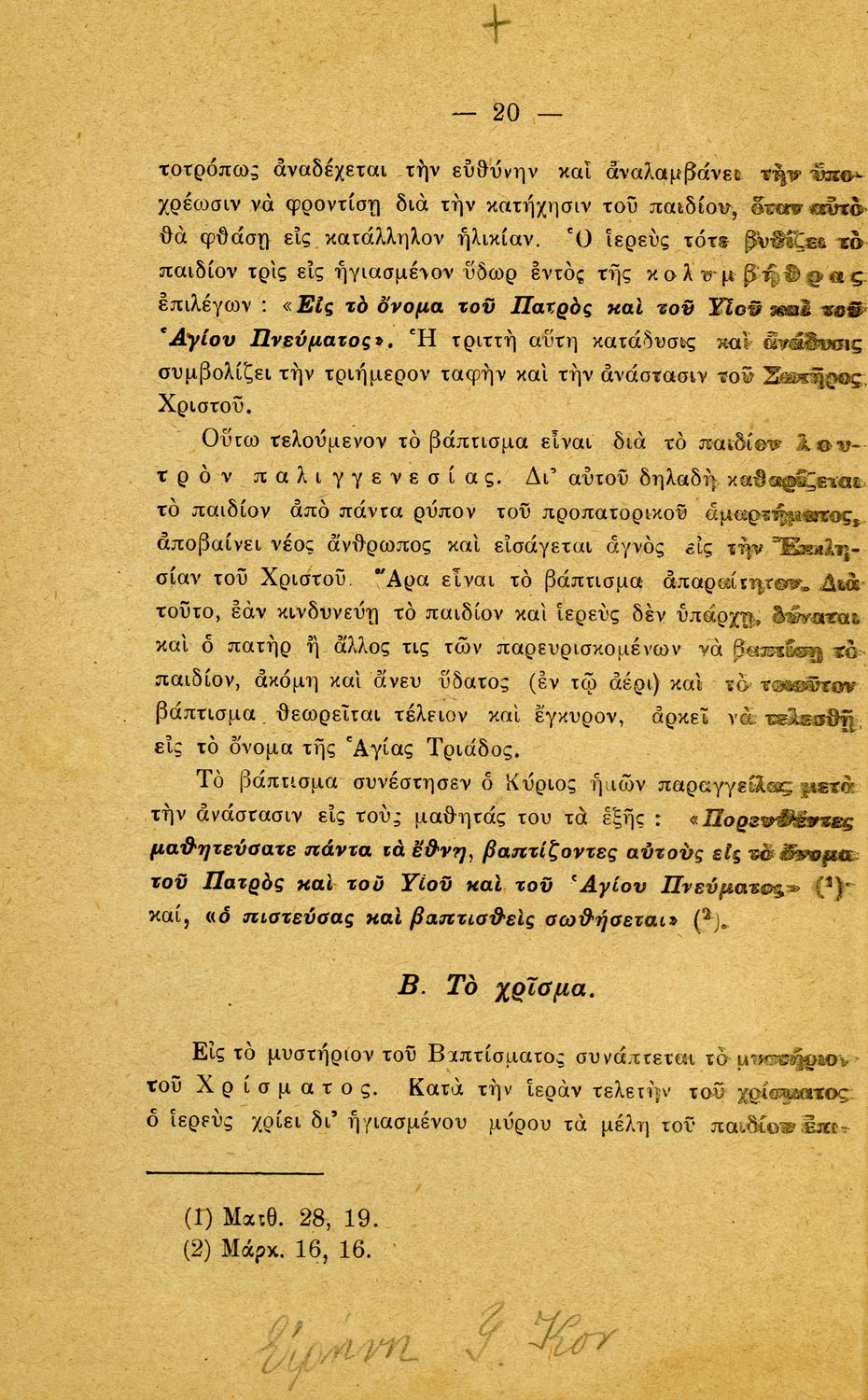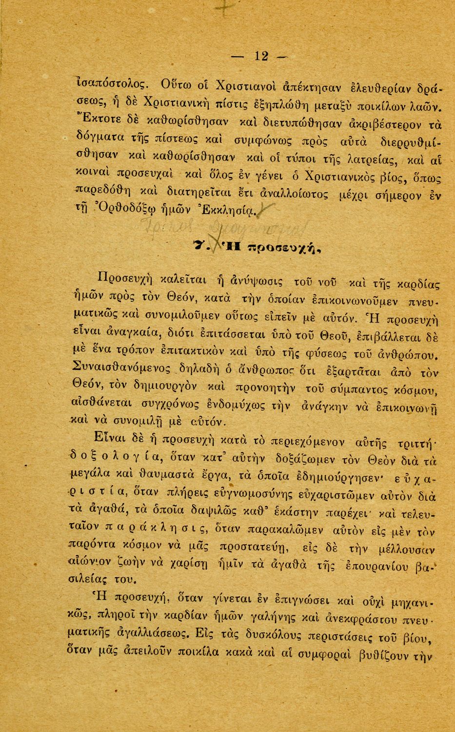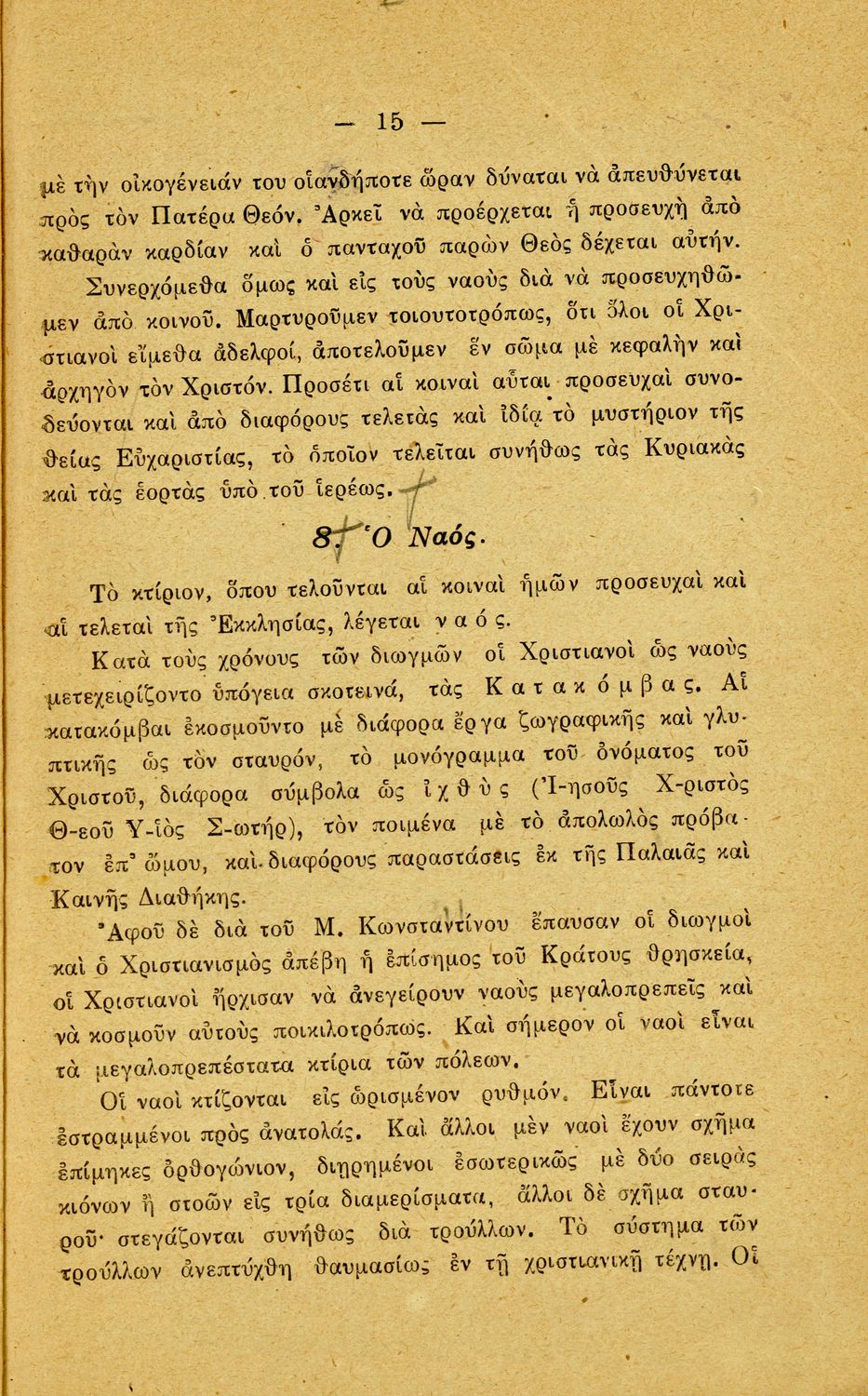 Σχολικό εγχειρίδιο Θρησκευτικών για τα Ελληνικά Σχολεία και Παρθεναγωγεία που εστιάζει σε θέματα χριστιανικής ηθικής και σε δογματικά και ηθικά ζητήματα της ορθόδοξης κατήχησης.