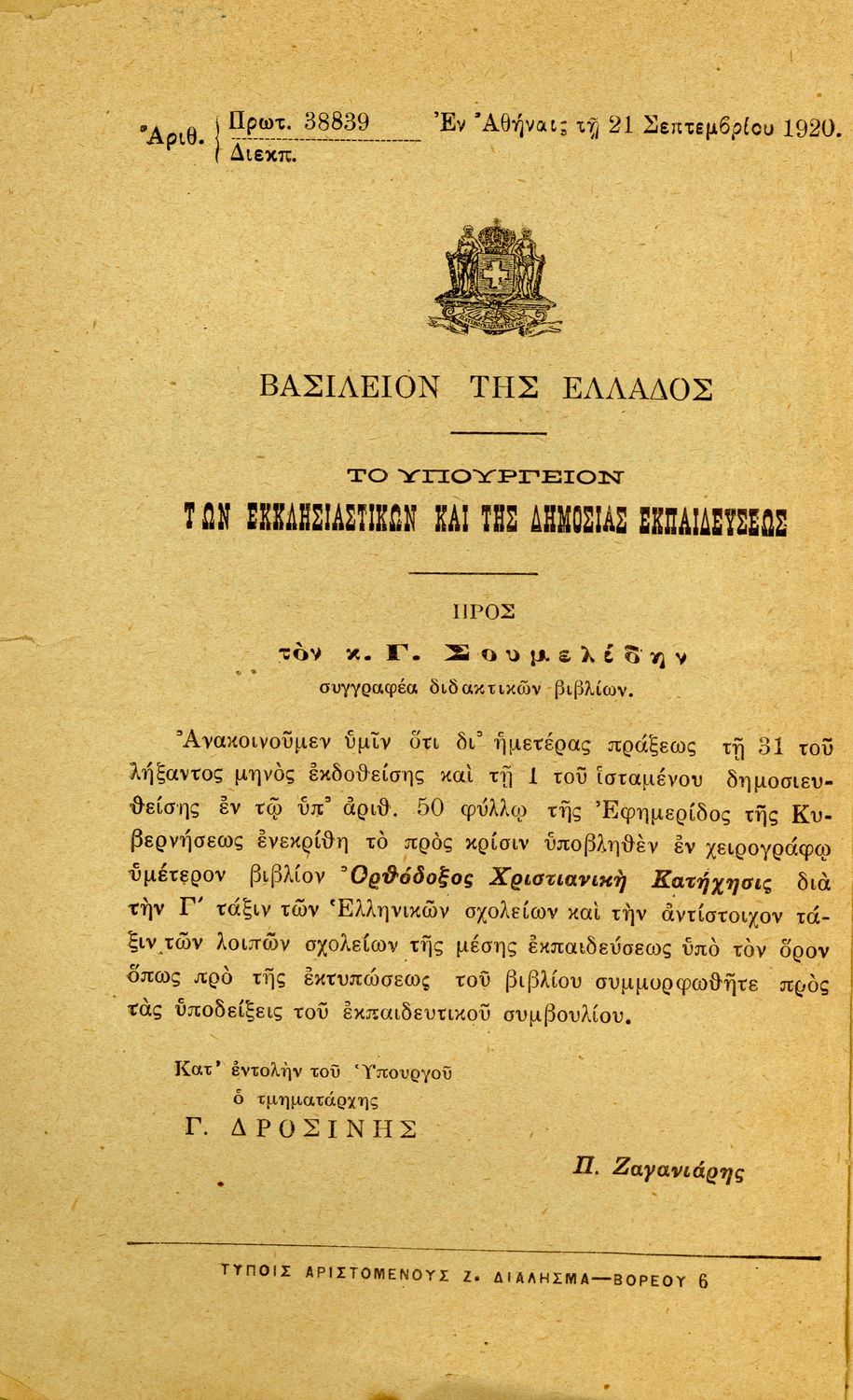 Υπουργική απόφαση / Σύμβαση: 38839/21-9-1920