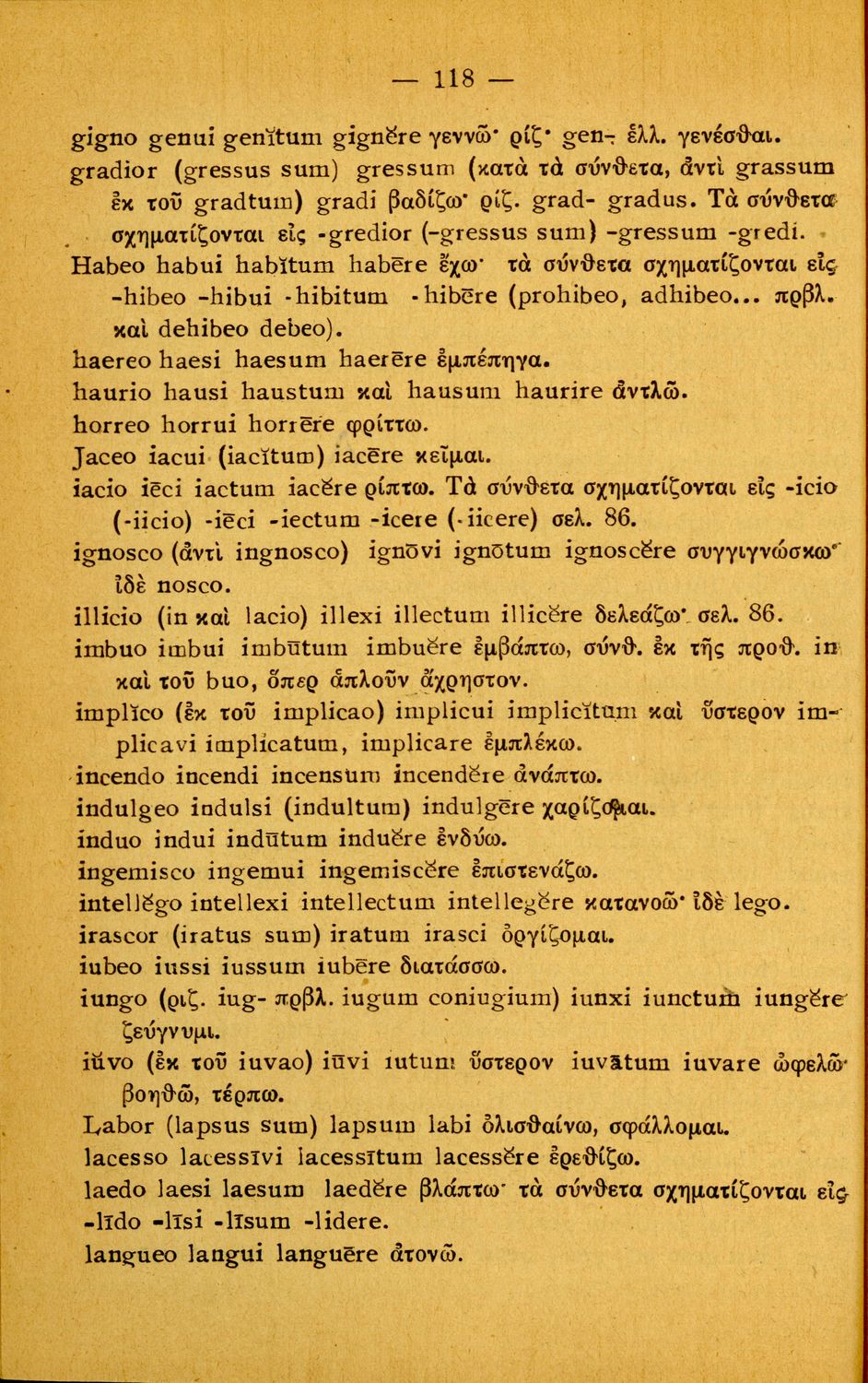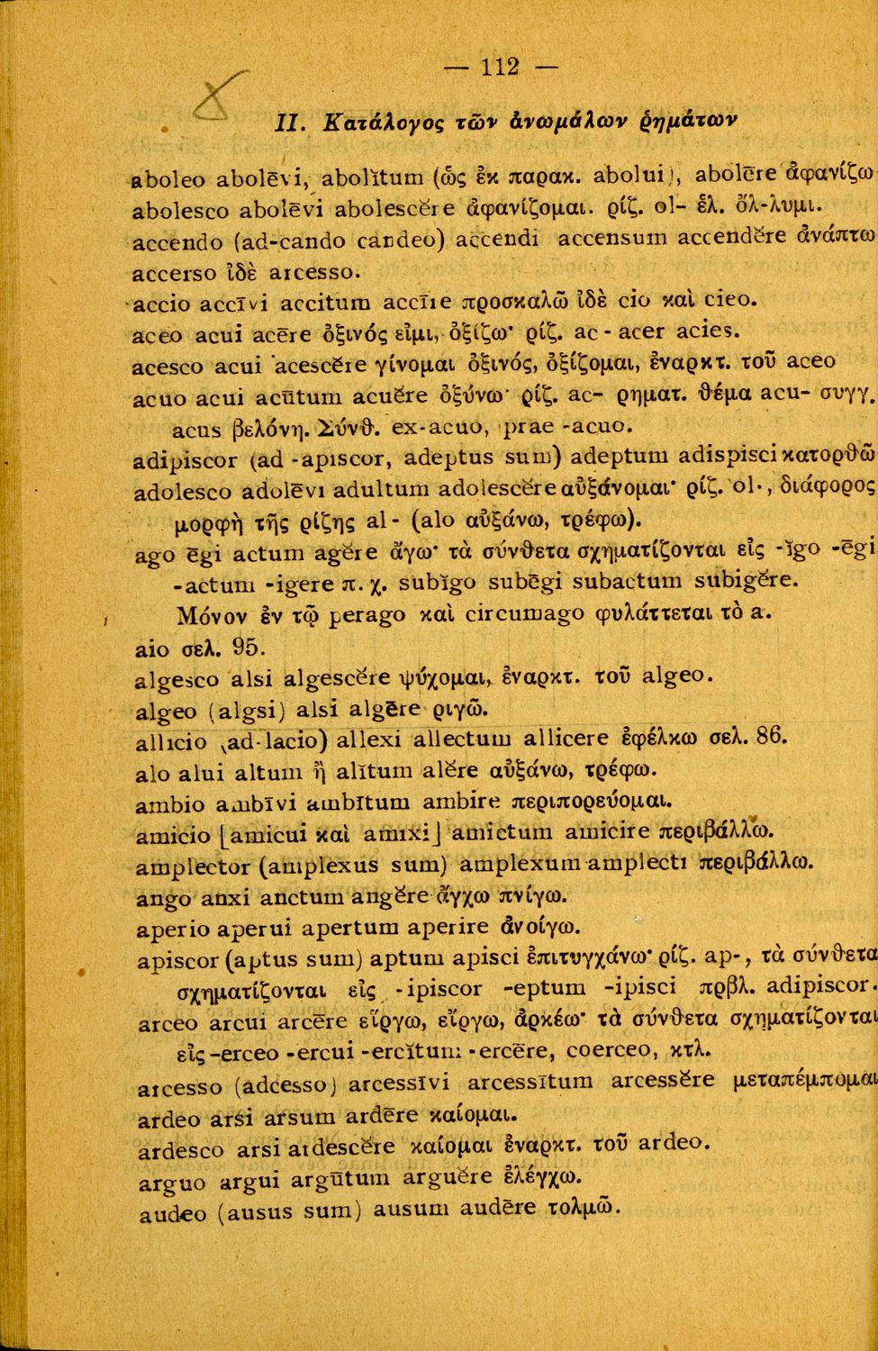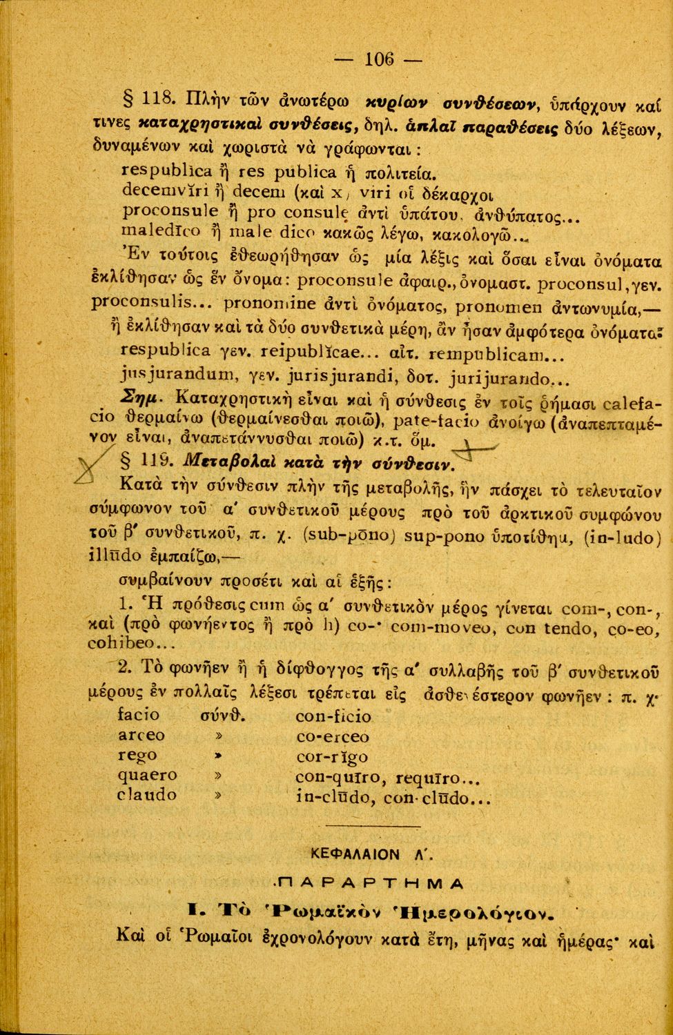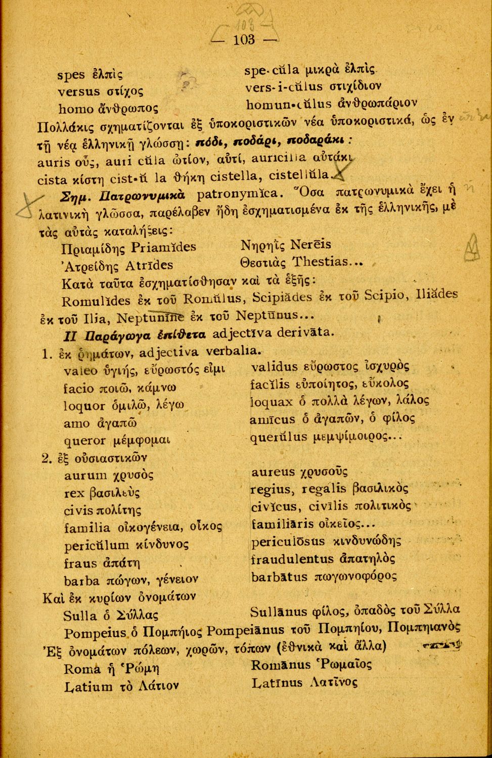 Σχολικό εγχειρίδιο Λατινικών Α΄, Β΄, Γ' Γυμνασίου που περιλαμβάνει γραμματική και συντακτικό και είναι χωρισμένο σε φθογγολογικό, τυπολογικό και ετυμολογικό μέρος.