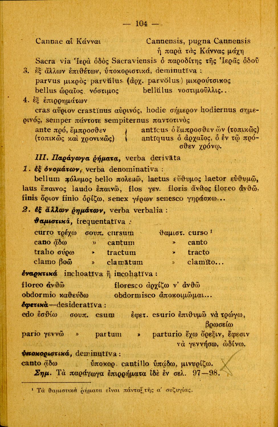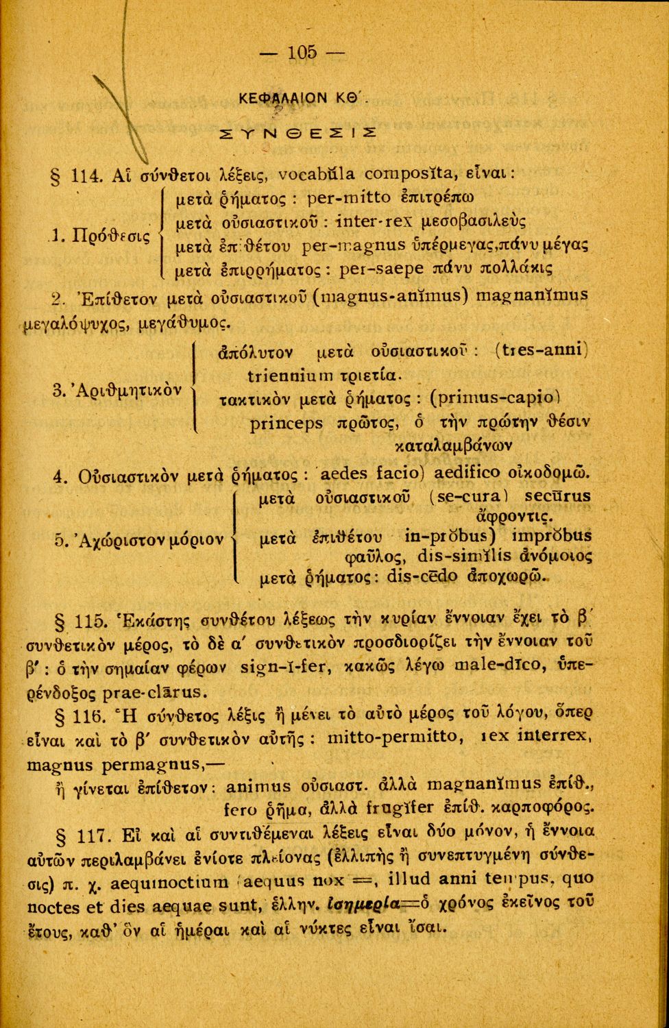 520 ## _aΣχολικό εγχειρίδιο Λατινικών Α΄, Β΄, Γ' Γυμνασίου που περιλαμβάνει γραμματική και συντακτικό και είναι χωρισμένο σε φθογγολογικό, τυπολογικό και ετυμολογικό μέρος.