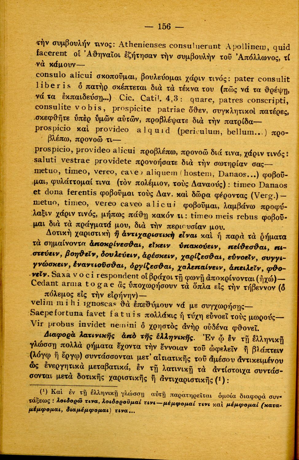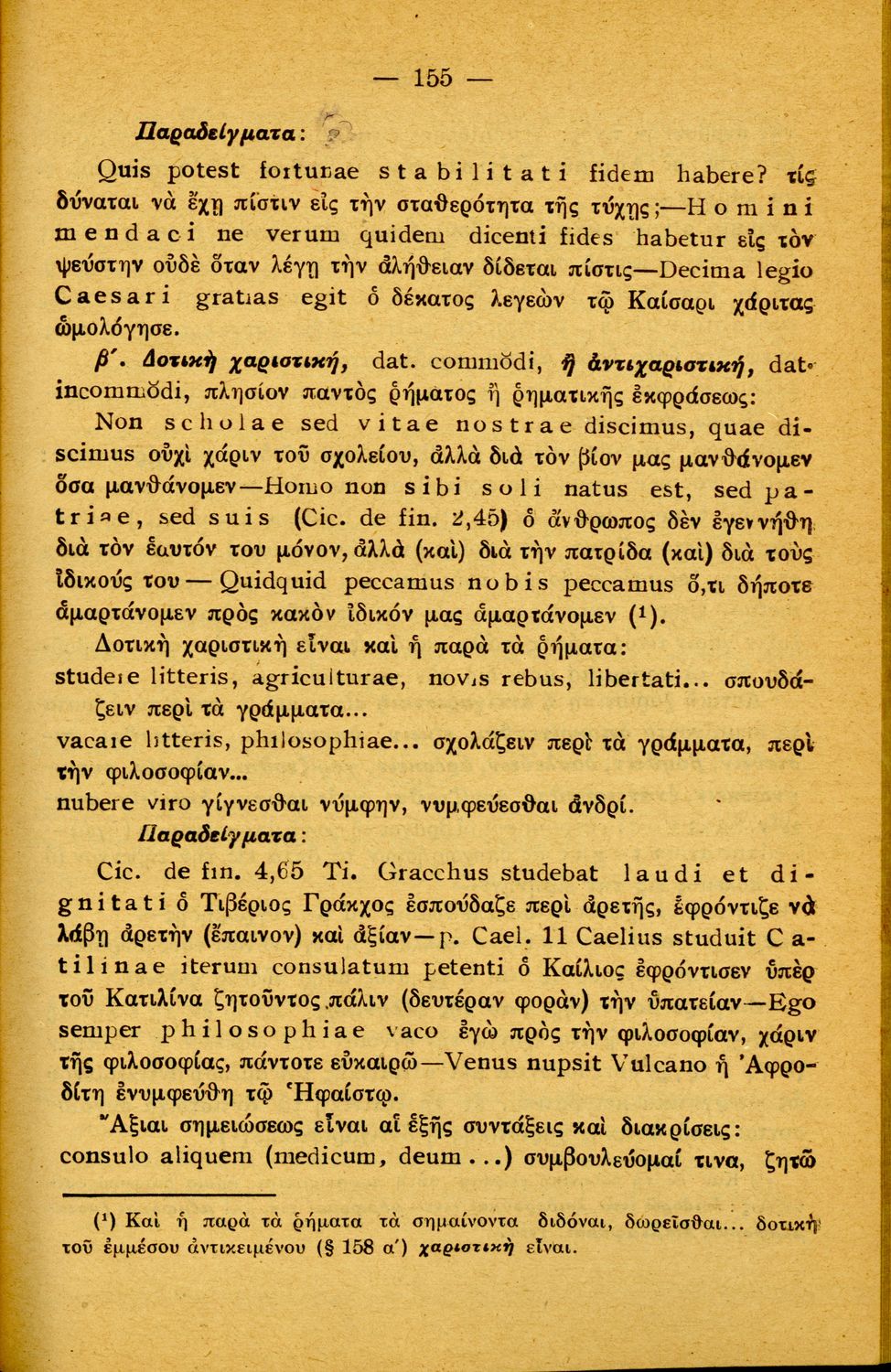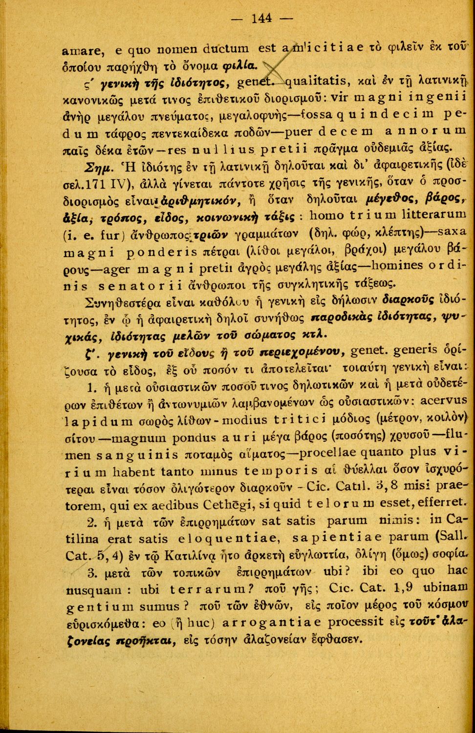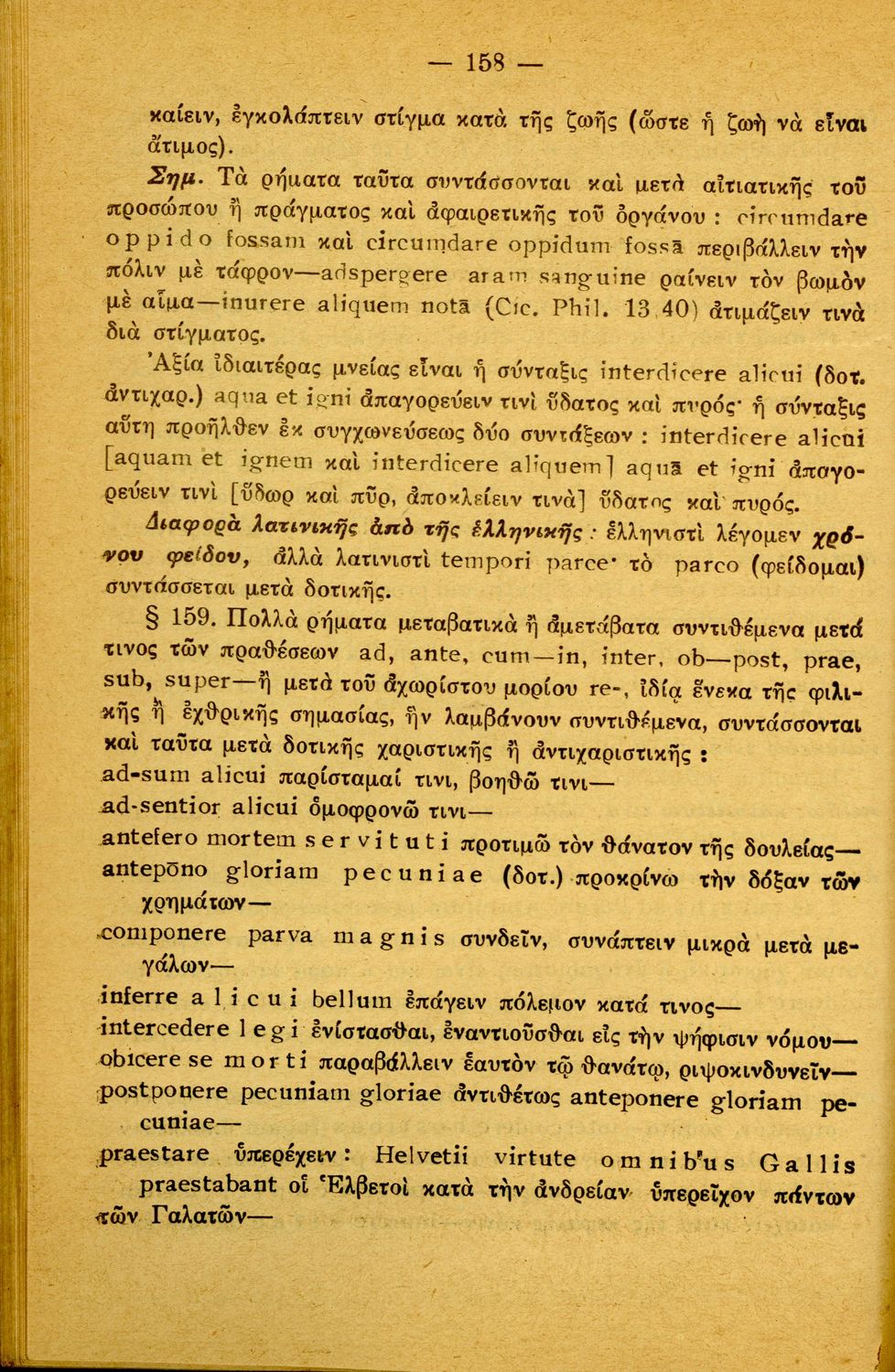 Σχολικό εγχειρίδιο Λατινικών Α΄, Β΄, Γ' Γυμνασίου που περιλαμβάνει γραμματική και συντακτικό και είναι χωρισμένο σε φθογγολογικό, τυπολογικό και ετυμολογικό μέρος.