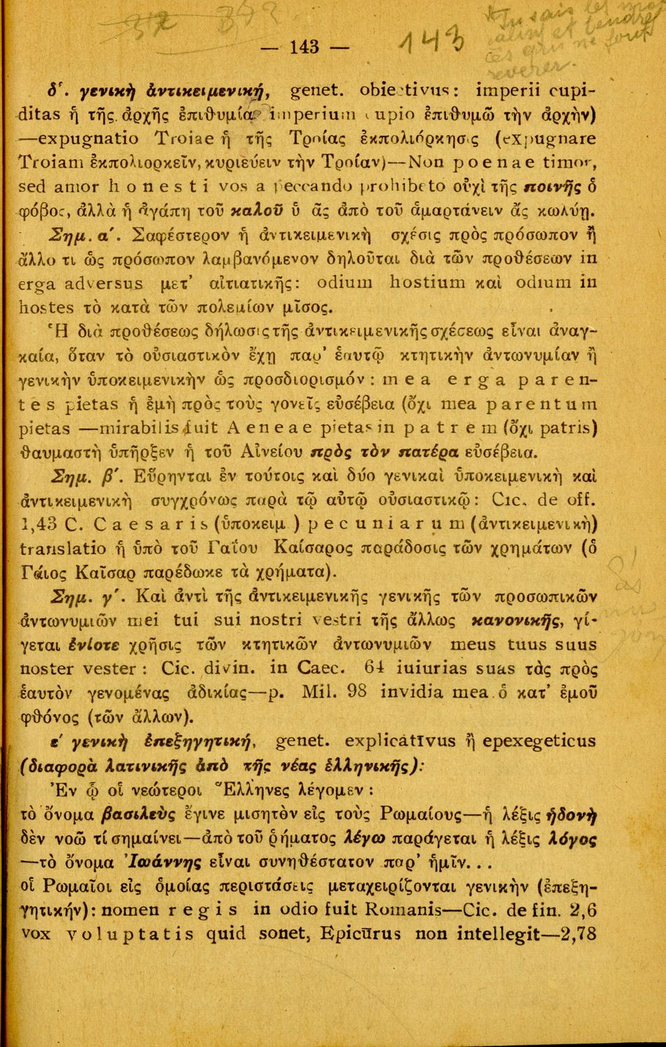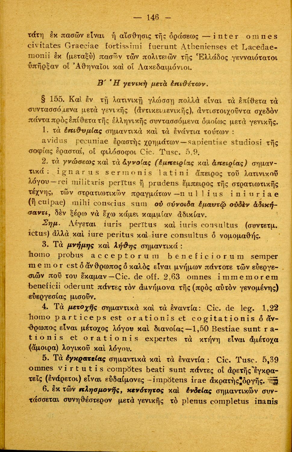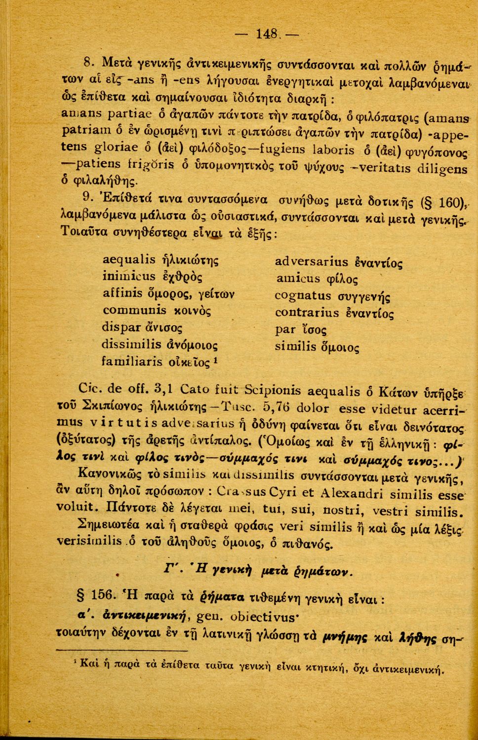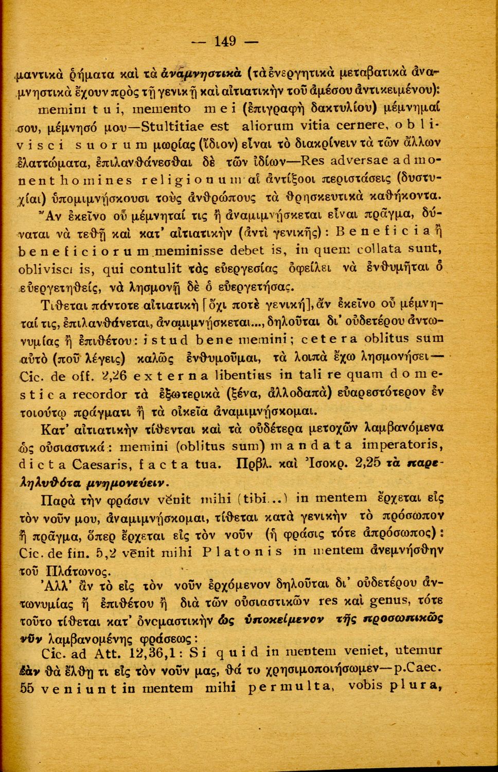 Σχολικό εγχειρίδιο Λατινικών Α΄, Β΄, Γ' Γυμνασίου που περιλαμβάνει γραμματική και συντακτικό και είναι χωρισμένο σε φθογγολογικό, τυπολογικό και ετυμολογικό μέρος.