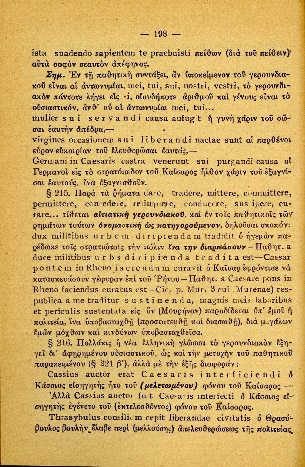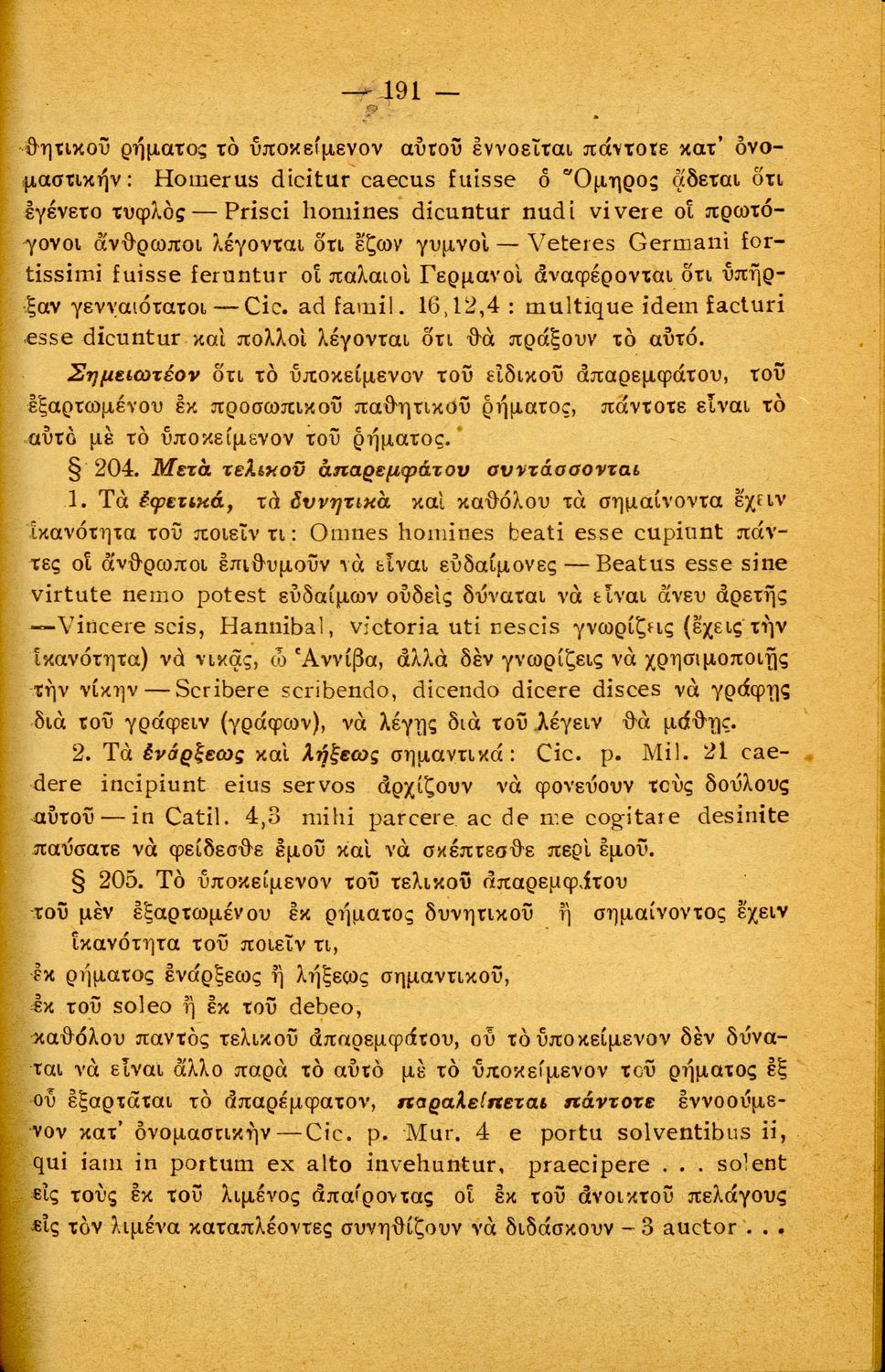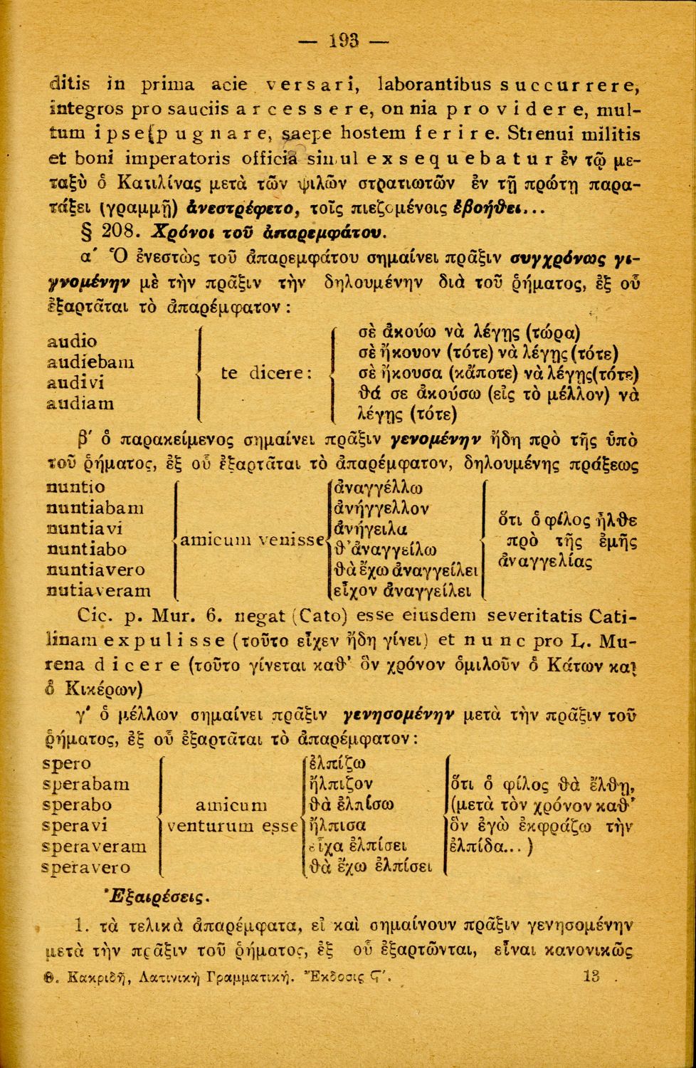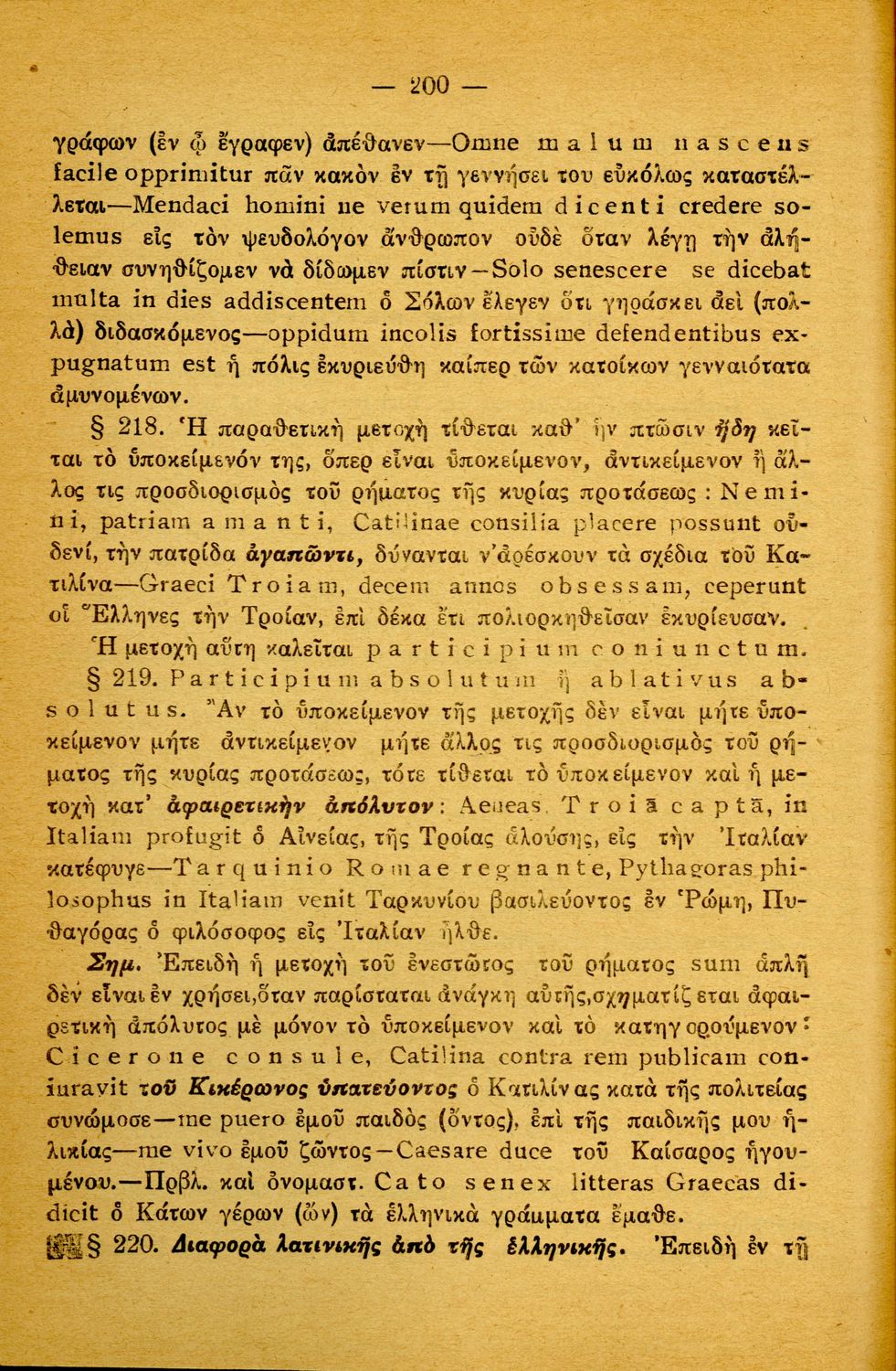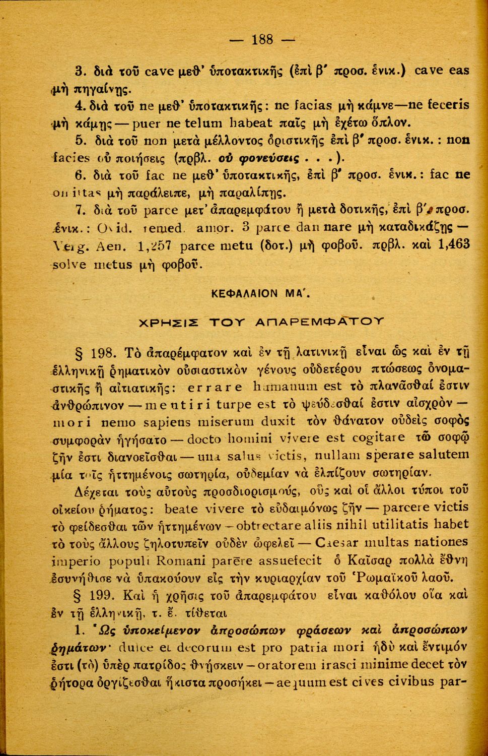 Σχολικό εγχειρίδιο Λατινικών Α΄, Β΄, Γ' Γυμνασίου που περιλαμβάνει γραμματική και συντακτικό και είναι χωρισμένο σε φθογγολογικό, τυπολογικό και ετυμολογικό μέρος.