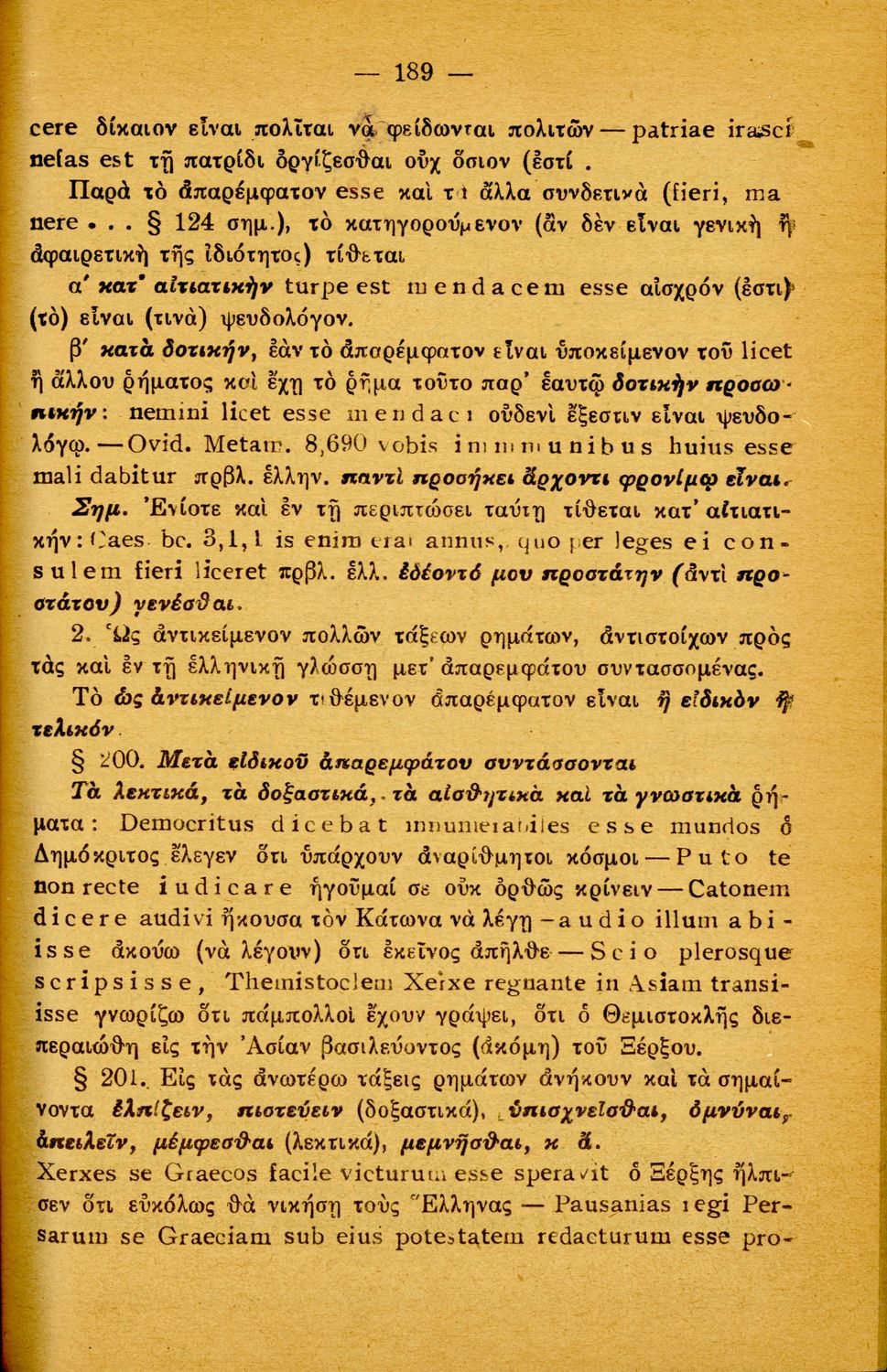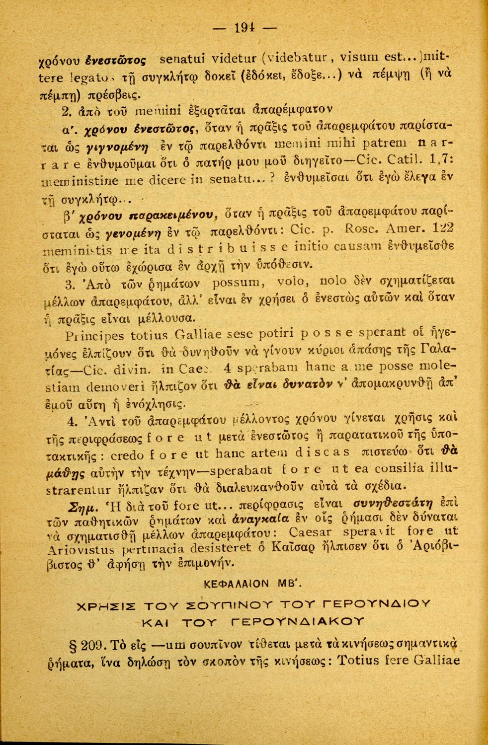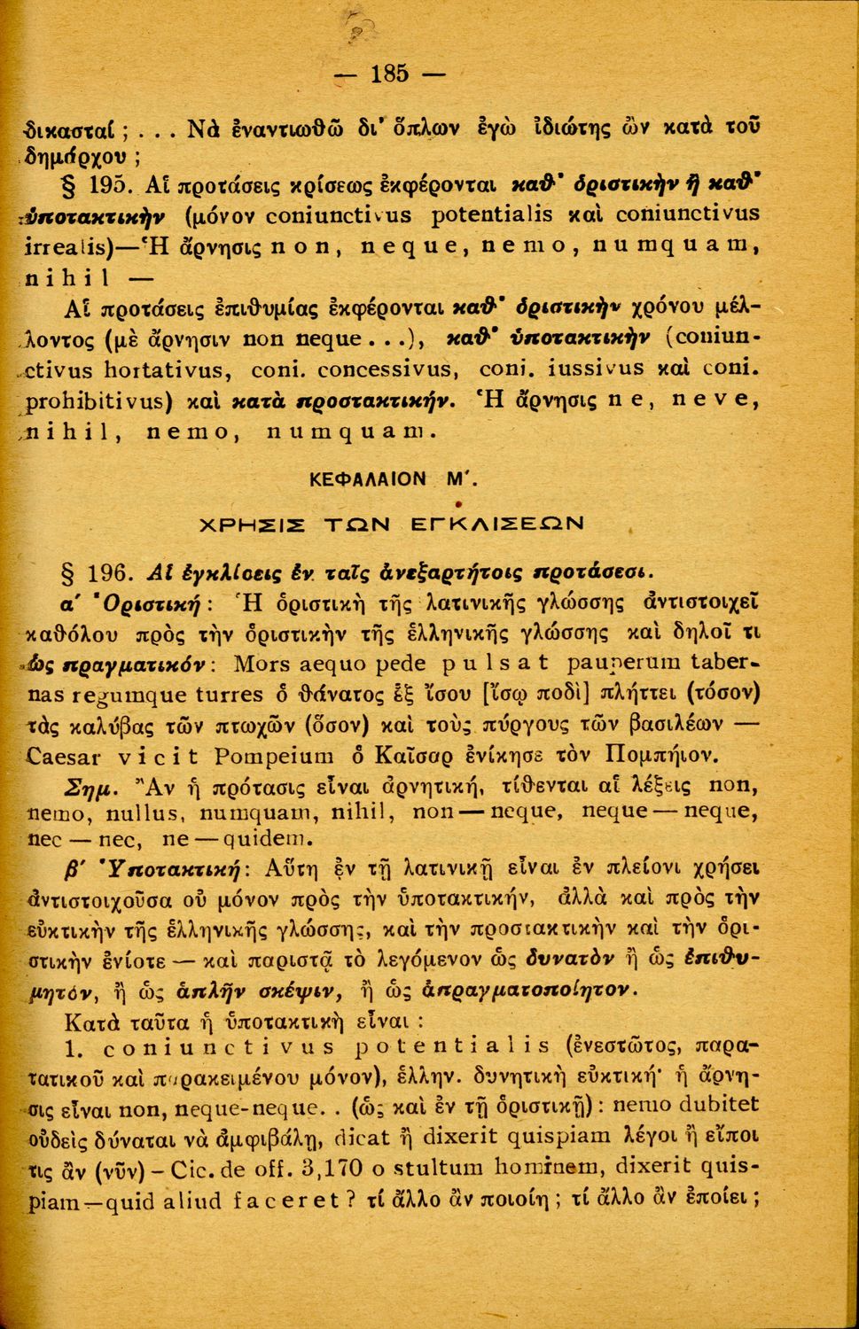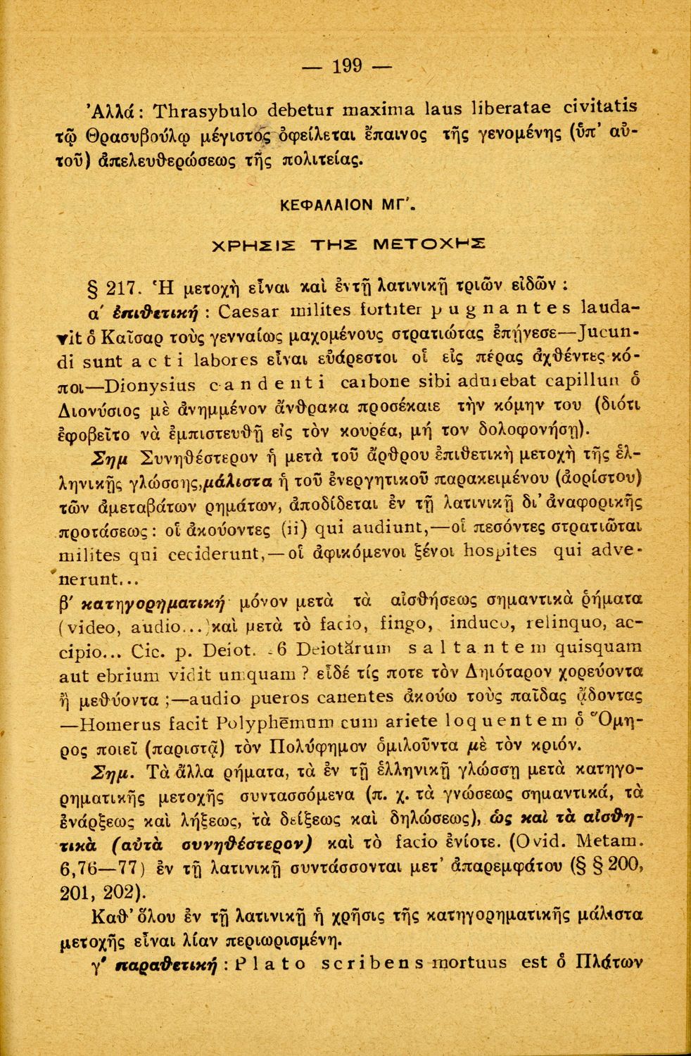 Σχολικό εγχειρίδιο Λατινικών Α΄, Β΄, Γ' Γυμνασίου που περιλαμβάνει γραμματική και συντακτικό και είναι χωρισμένο σε φθογγολογικό, τυπολογικό και ετυμολογικό μέρος.