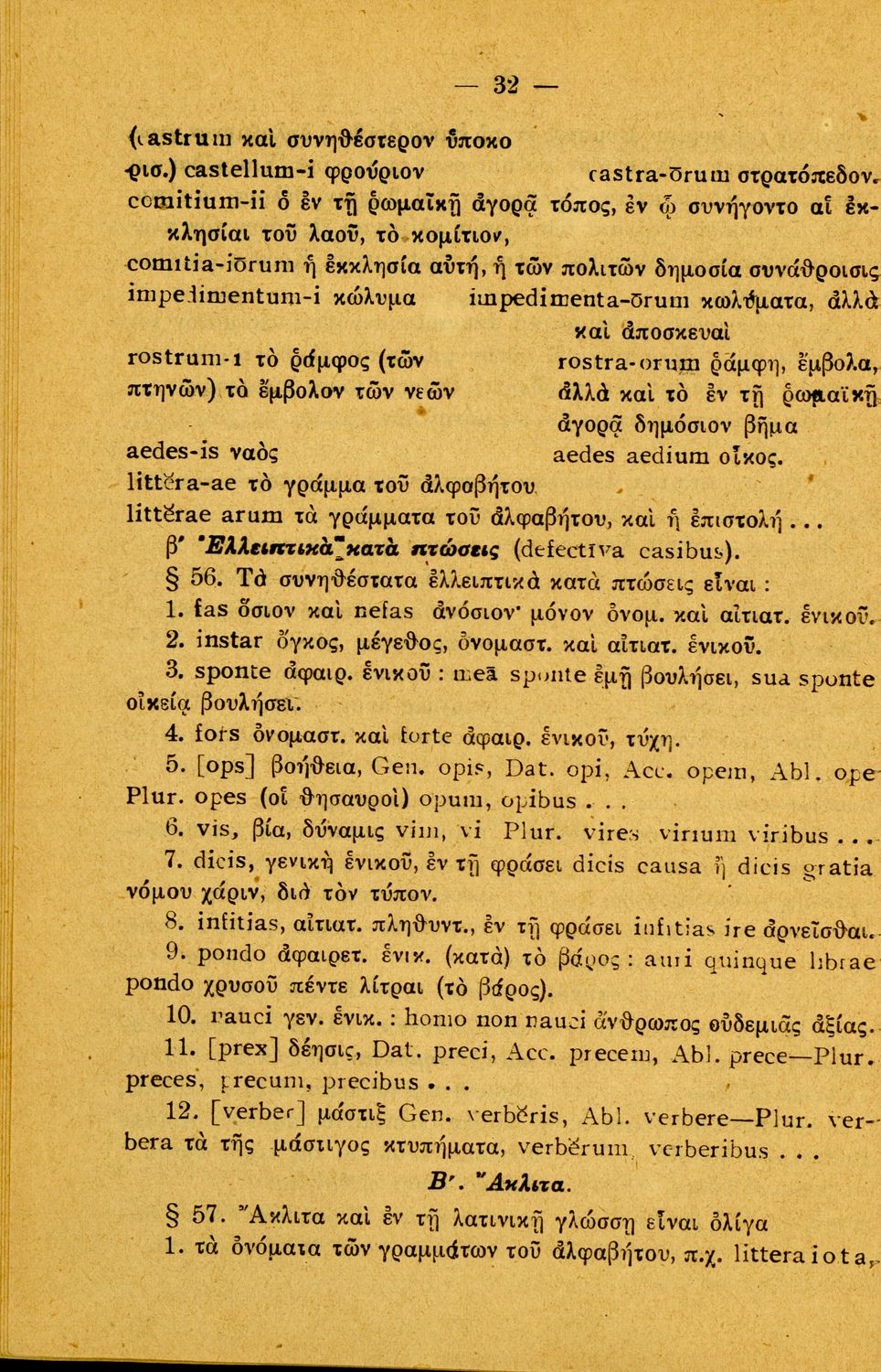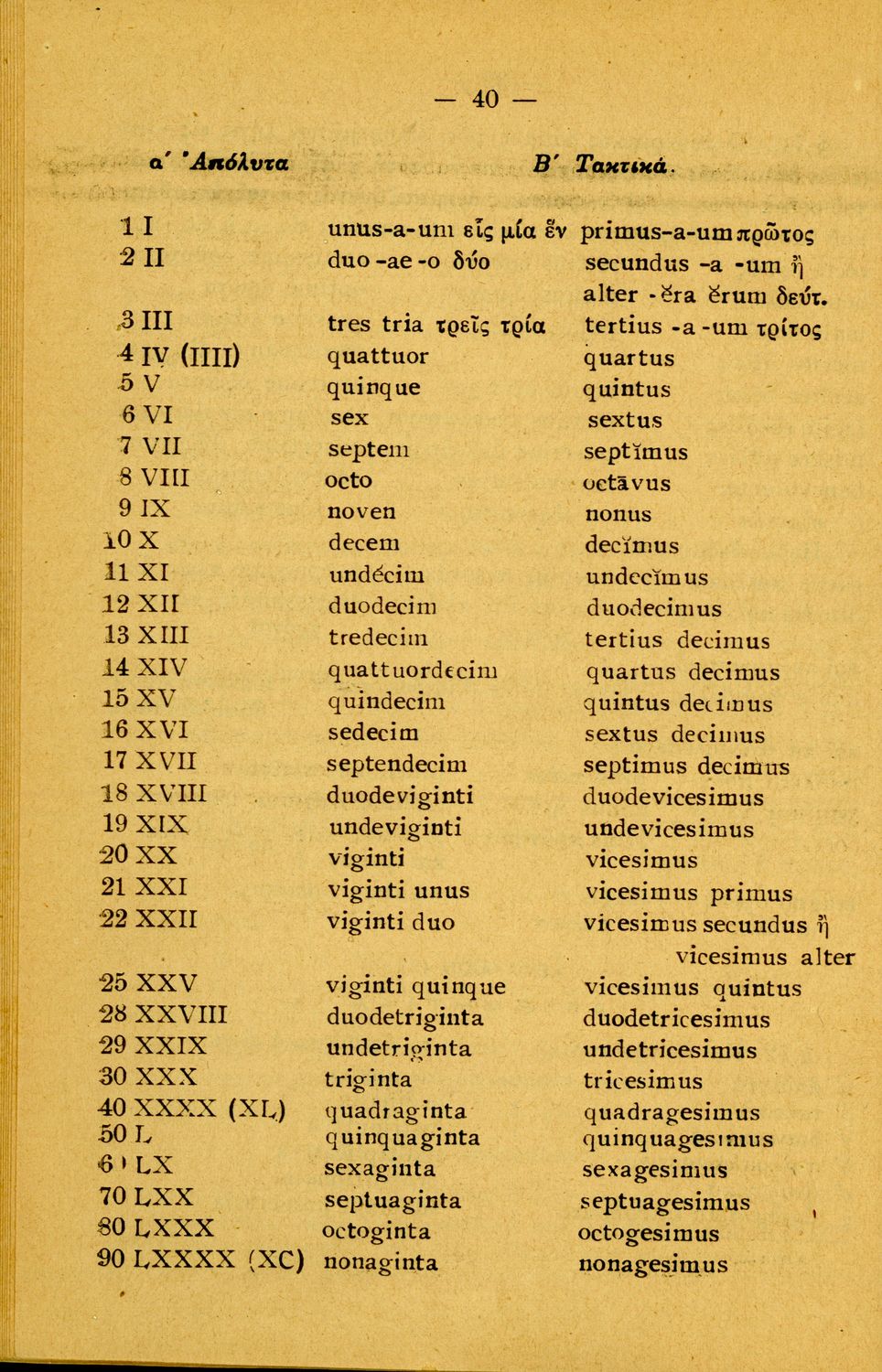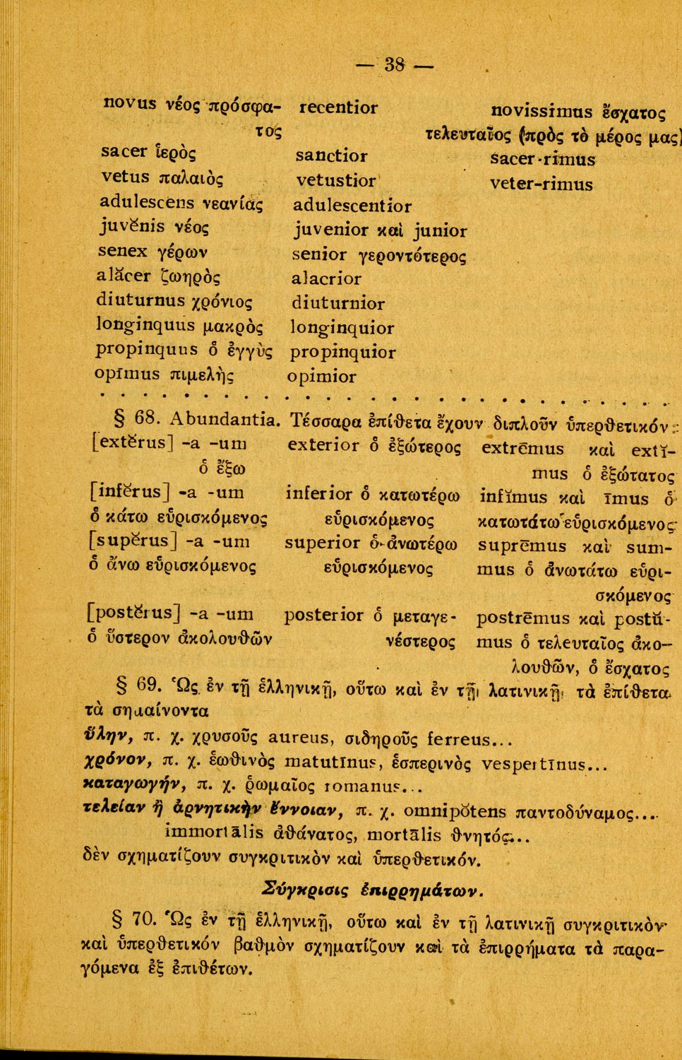 Σχολικό εγχειρίδιο Λατινικών Α΄, Β΄, Γ' Γυμνασίου που περιλαμβάνει γραμματική και συντακτικό και είναι χωρισμένο σε φθογγολογικό, τυπολογικό και ετυμολογικό μέρος.
