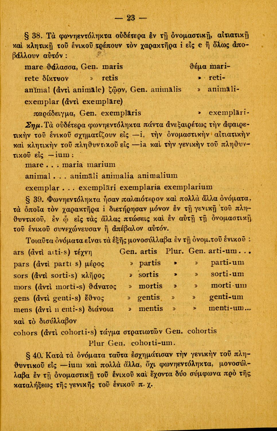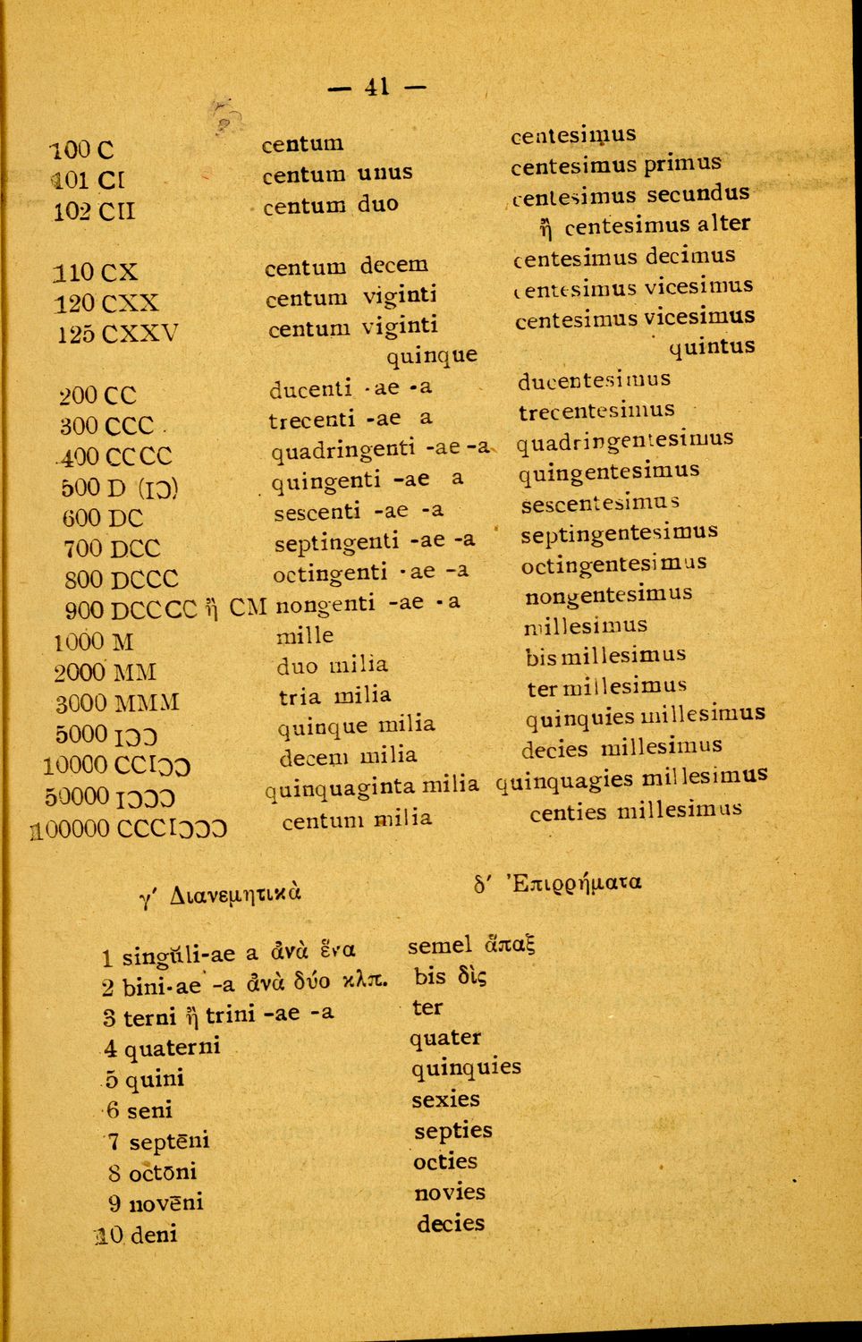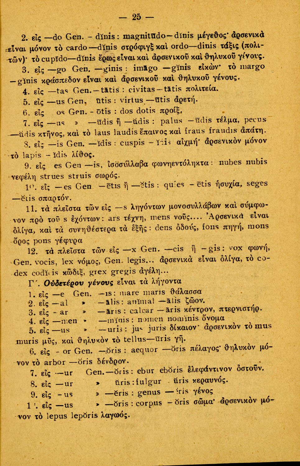 Σχολικό εγχειρίδιο Λατινικών Α΄, Β΄, Γ' Γυμνασίου που περιλαμβάνει γραμματική και συντακτικό και είναι χωρισμένο σε φθογγολογικό, τυπολογικό και ετυμολογικό μέρος.