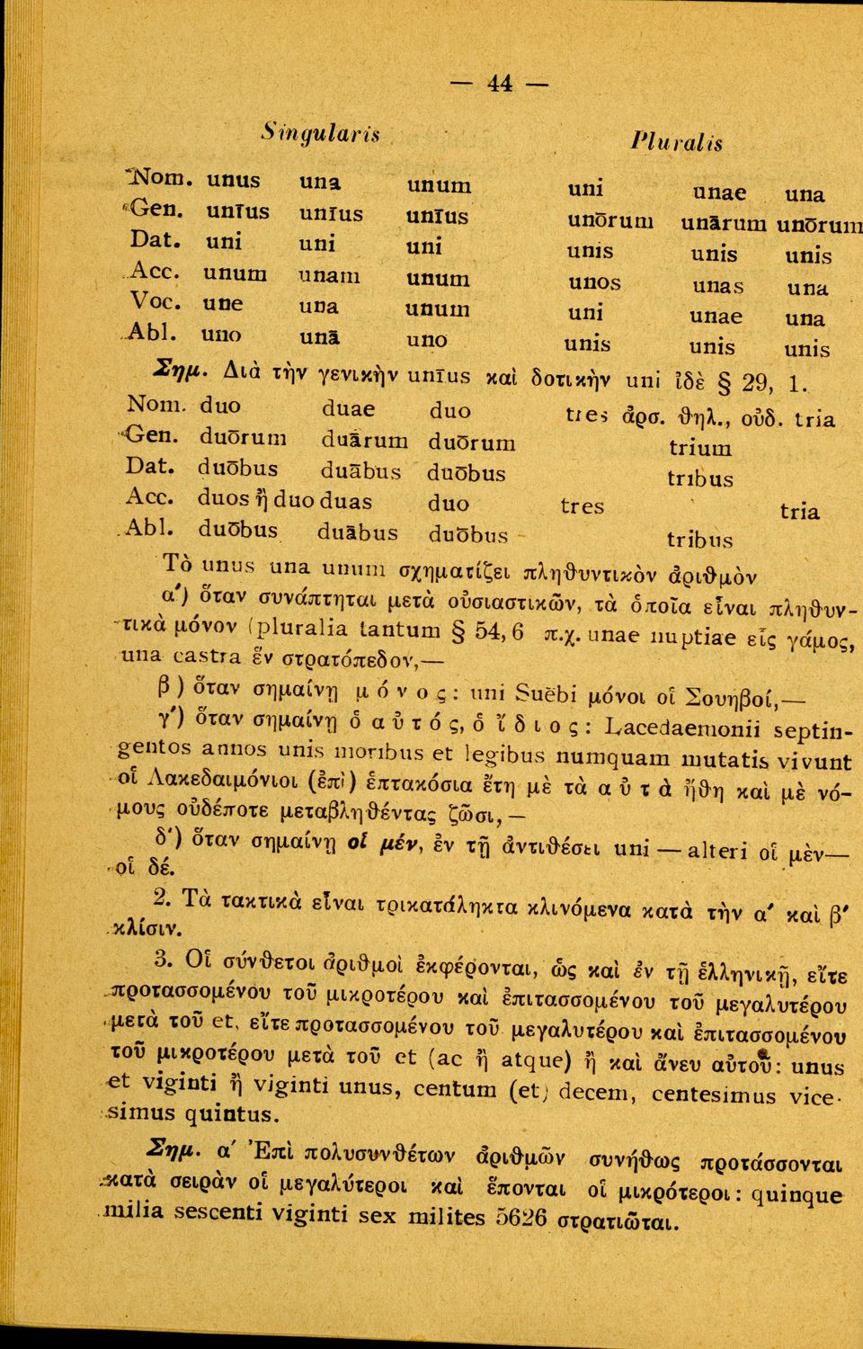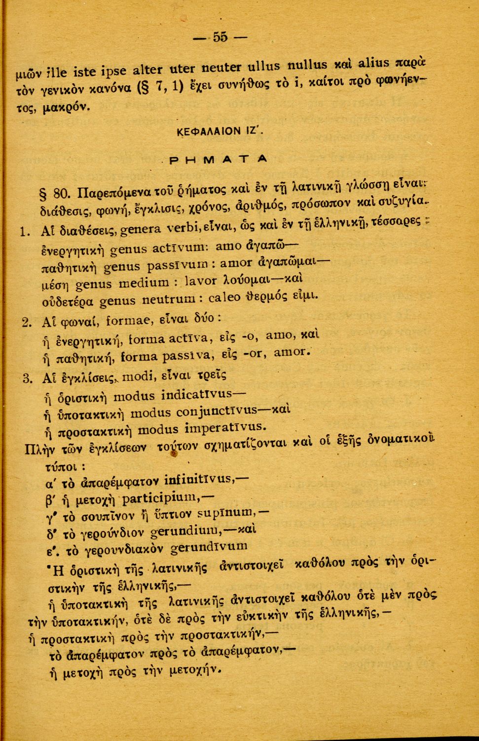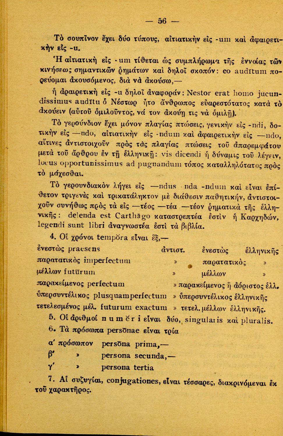 520 ## _aΣχολικό εγχειρίδιο Λατινικών Α΄, Β΄, Γ' Γυμνασίου που περιλαμβάνει γραμματική και συντακτικό και είναι χωρισμένο σε φθογγολογικό, τυπολογικό και ετυμολογικό μέρος.