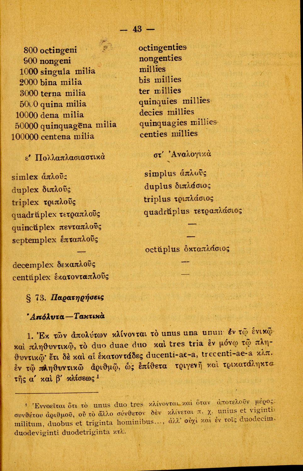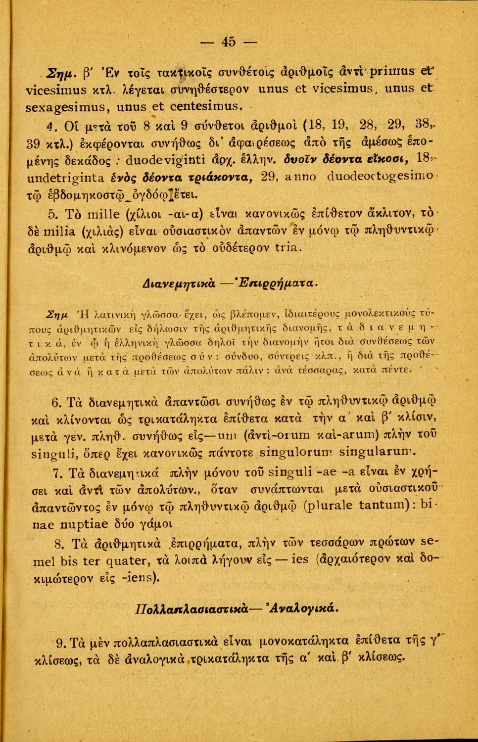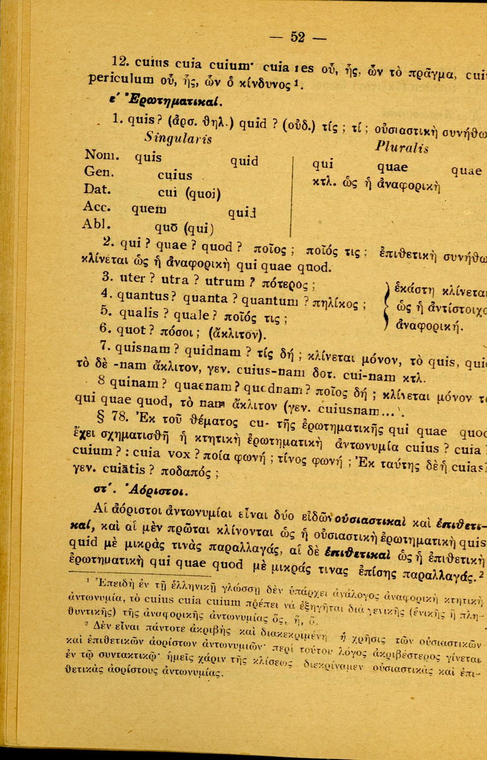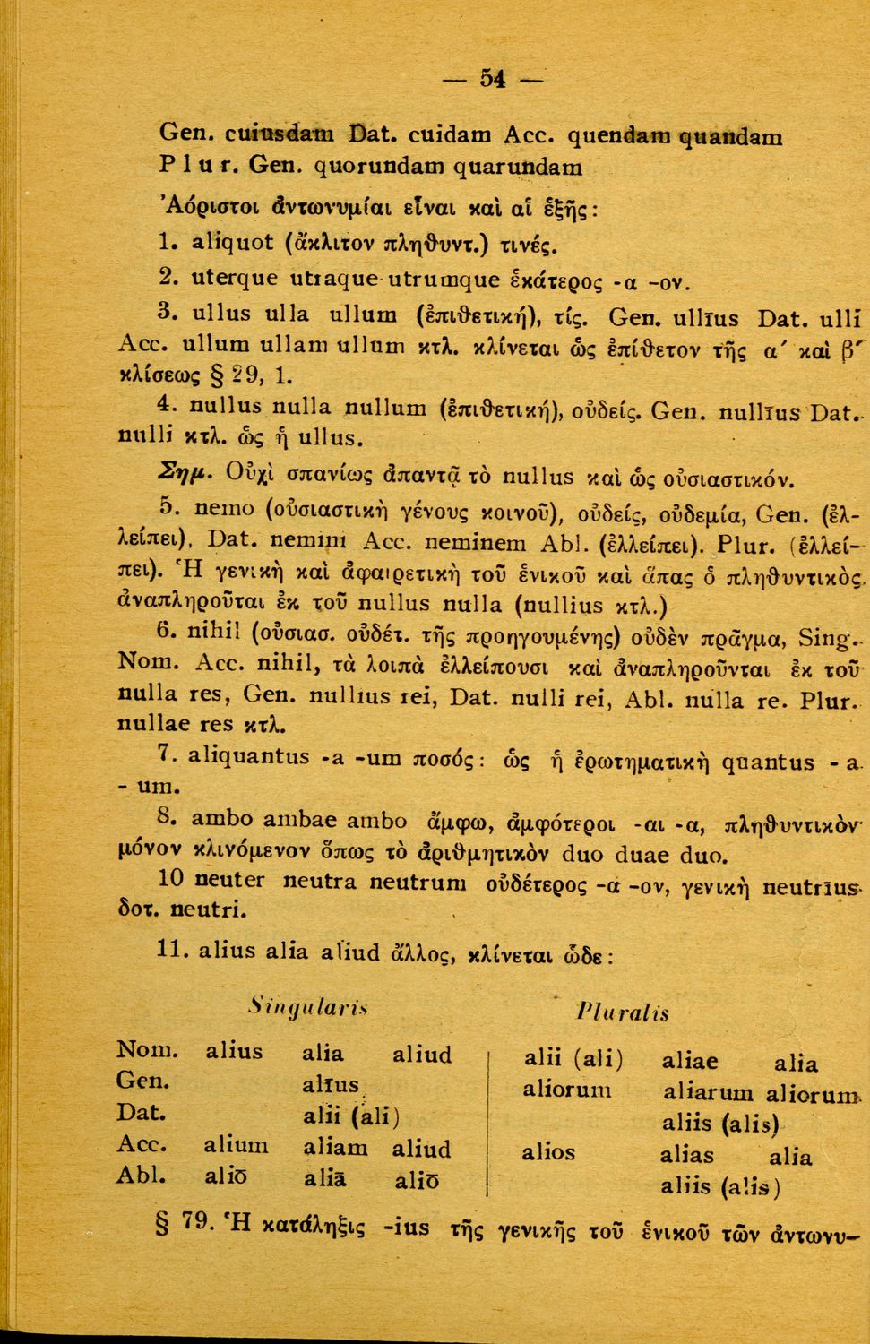 520 ## _aΣχολικό εγχειρίδιο Λατινικών Α΄, Β΄, Γ' Γυμνασίου που περιλαμβάνει γραμματική και συντακτικό και είναι χωρισμένο σε φθογγολογικό, τυπολογικό και ετυμολογικό μέρος.