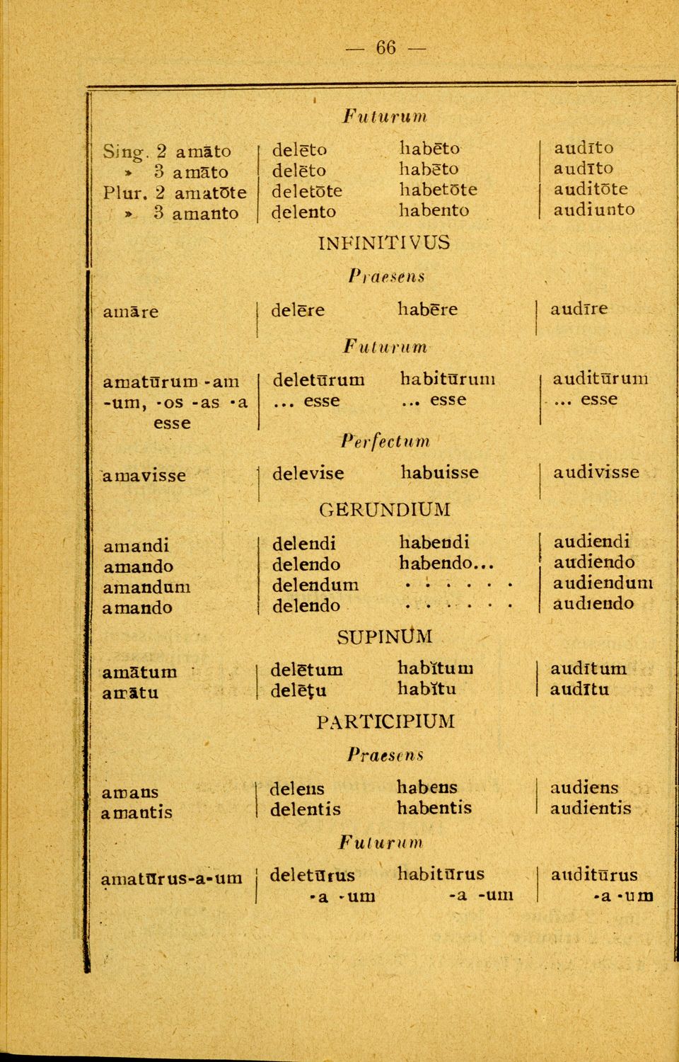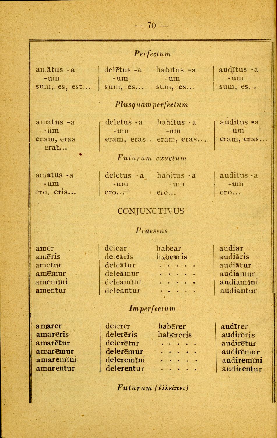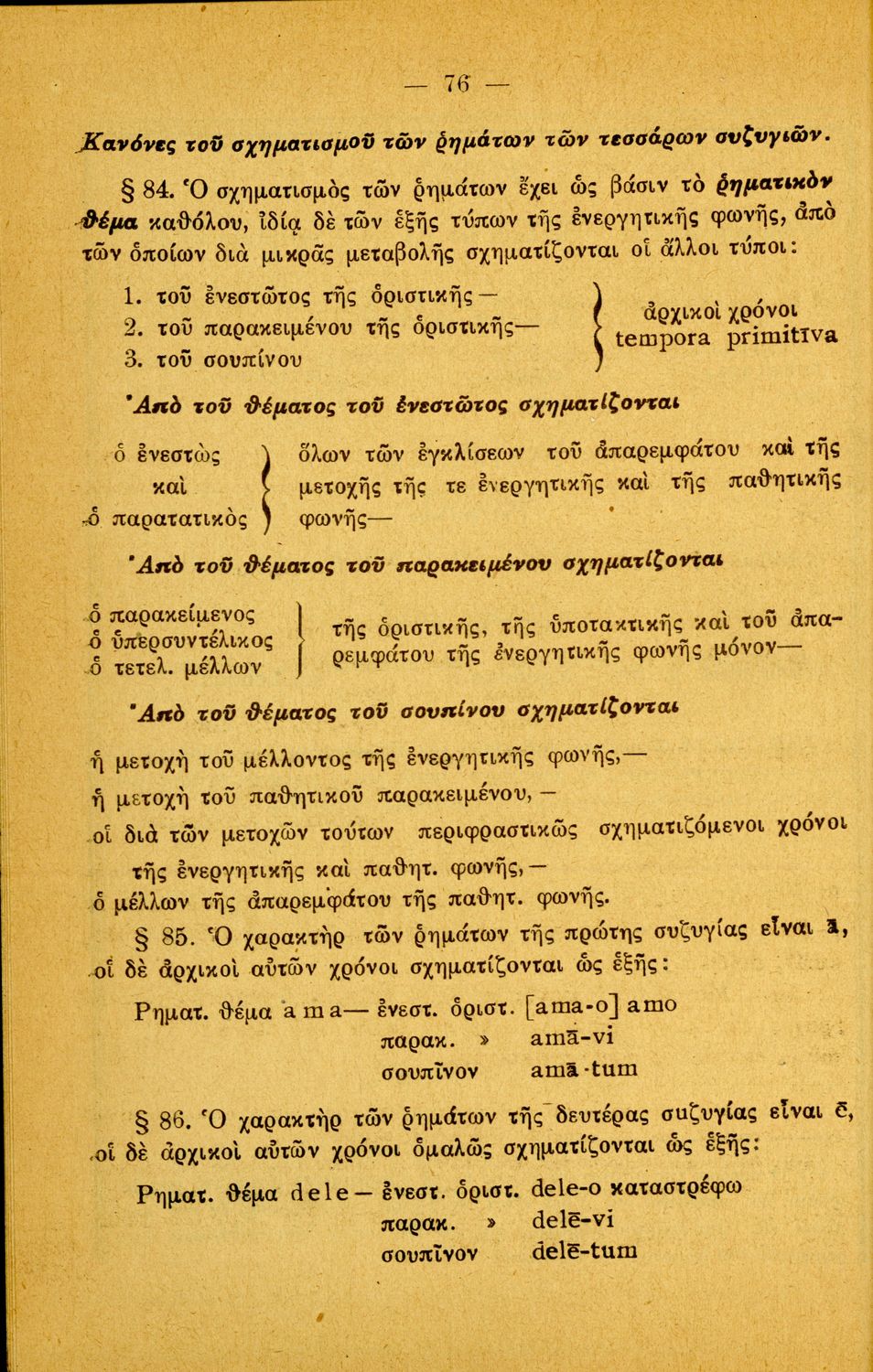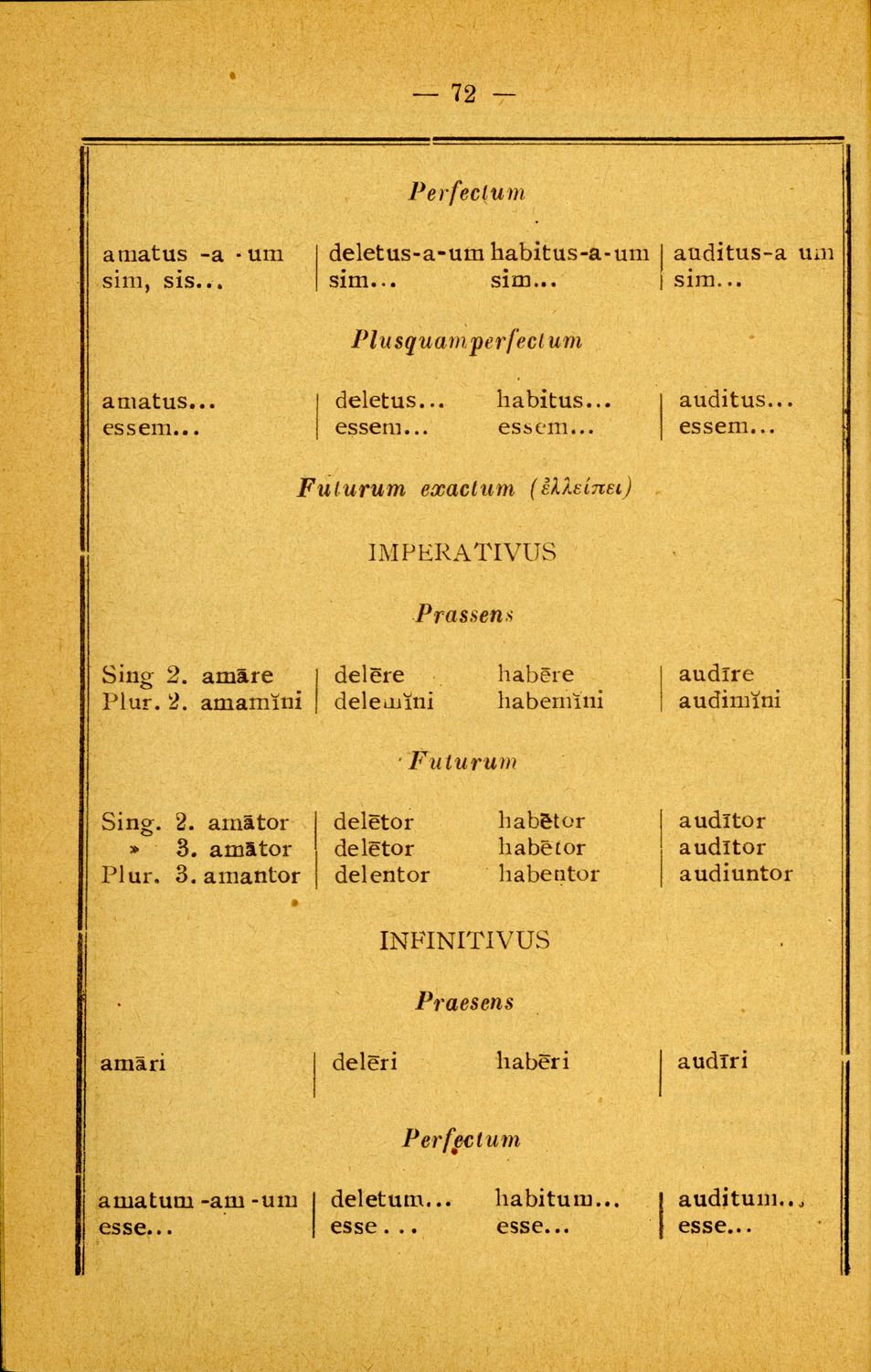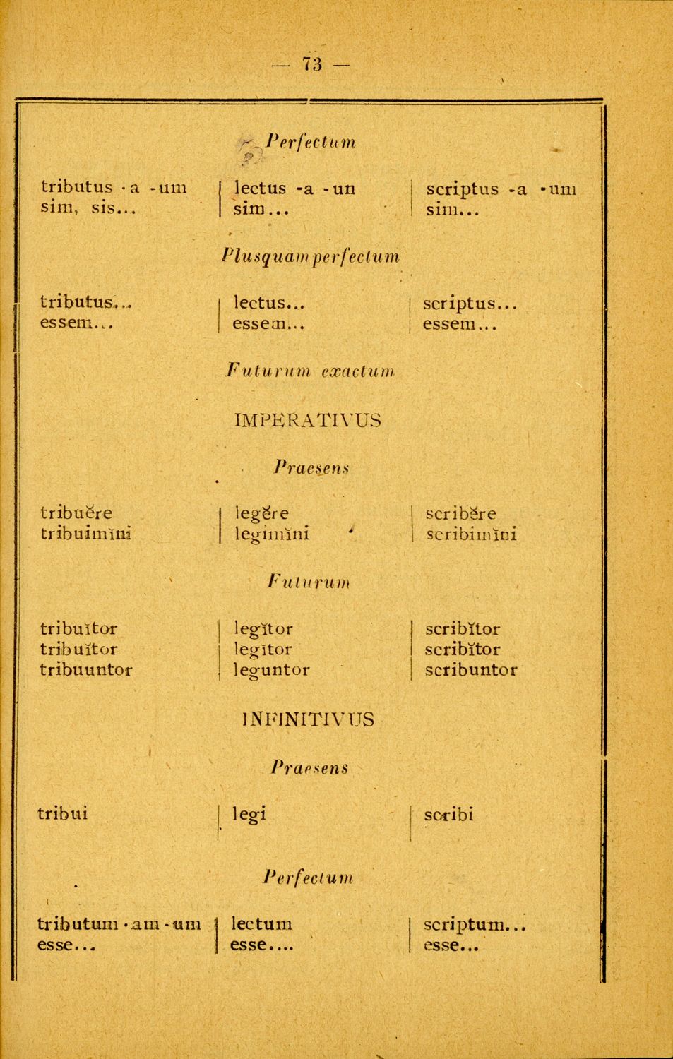 Σχολικό εγχειρίδιο Λατινικών Α΄, Β΄, Γ' Γυμνασίου που περιλαμβάνει γραμματική και συντακτικό και είναι χωρισμένο σε φθογγολογικό, τυπολογικό και ετυμολογικό μέρος.