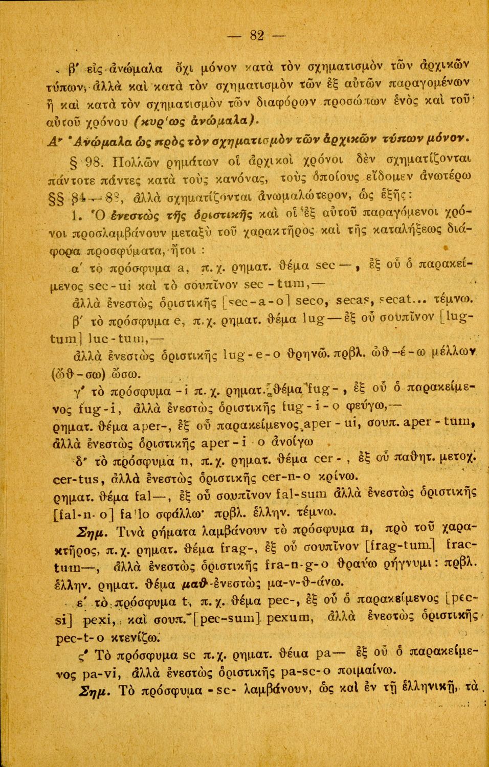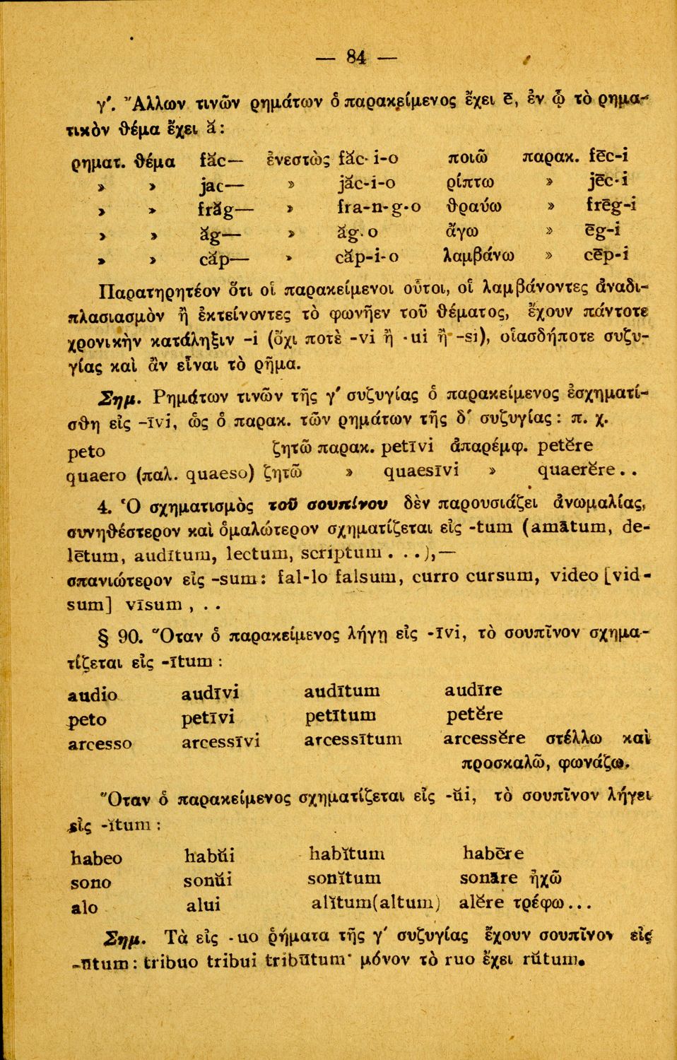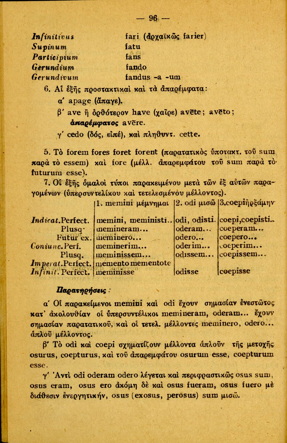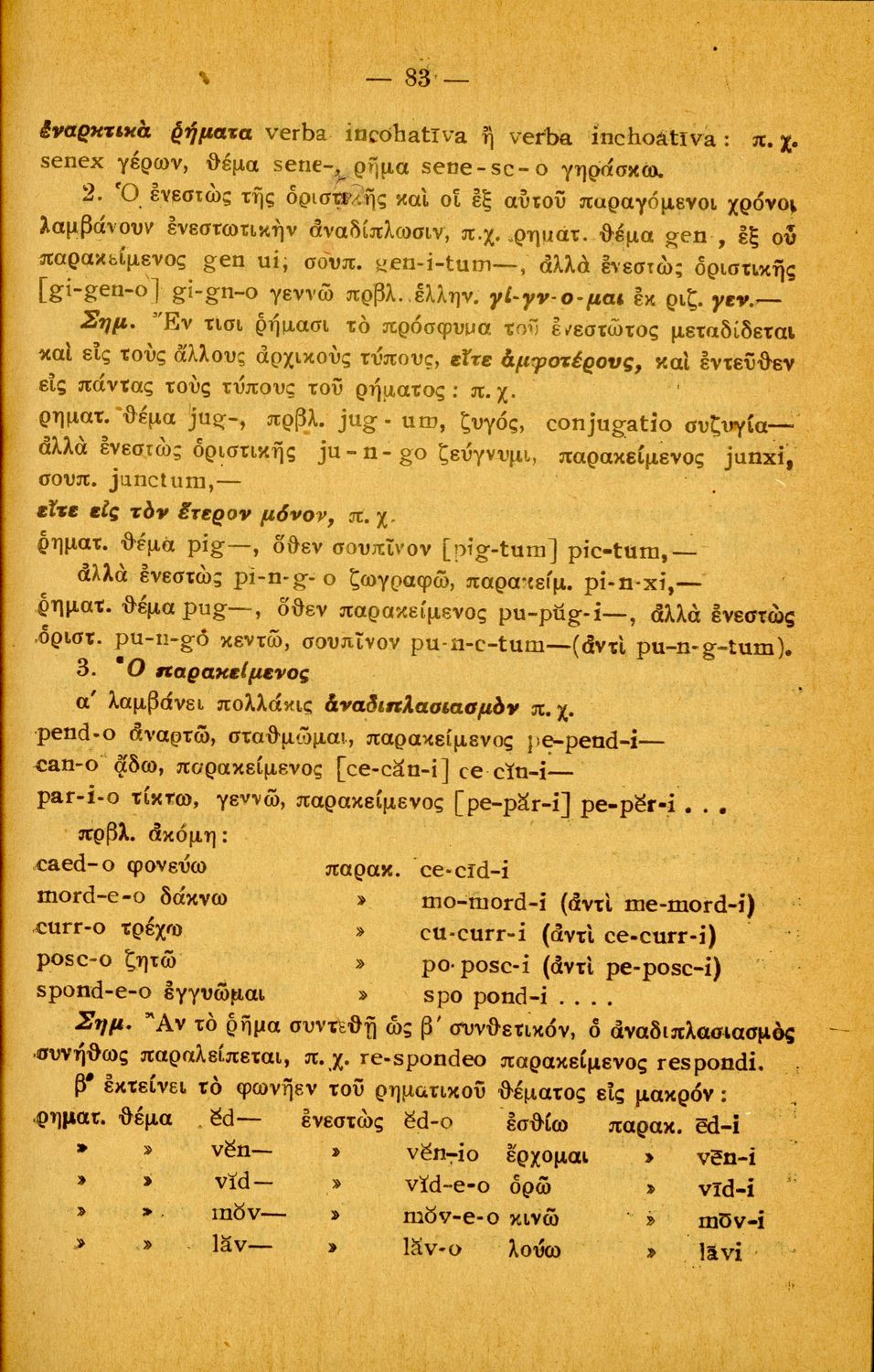 Σχολικό εγχειρίδιο Λατινικών Α΄, Β΄, Γ' Γυμνασίου που περιλαμβάνει γραμματική και συντακτικό και είναι χωρισμένο σε φθογγολογικό, τυπολογικό και ετυμολογικό μέρος.