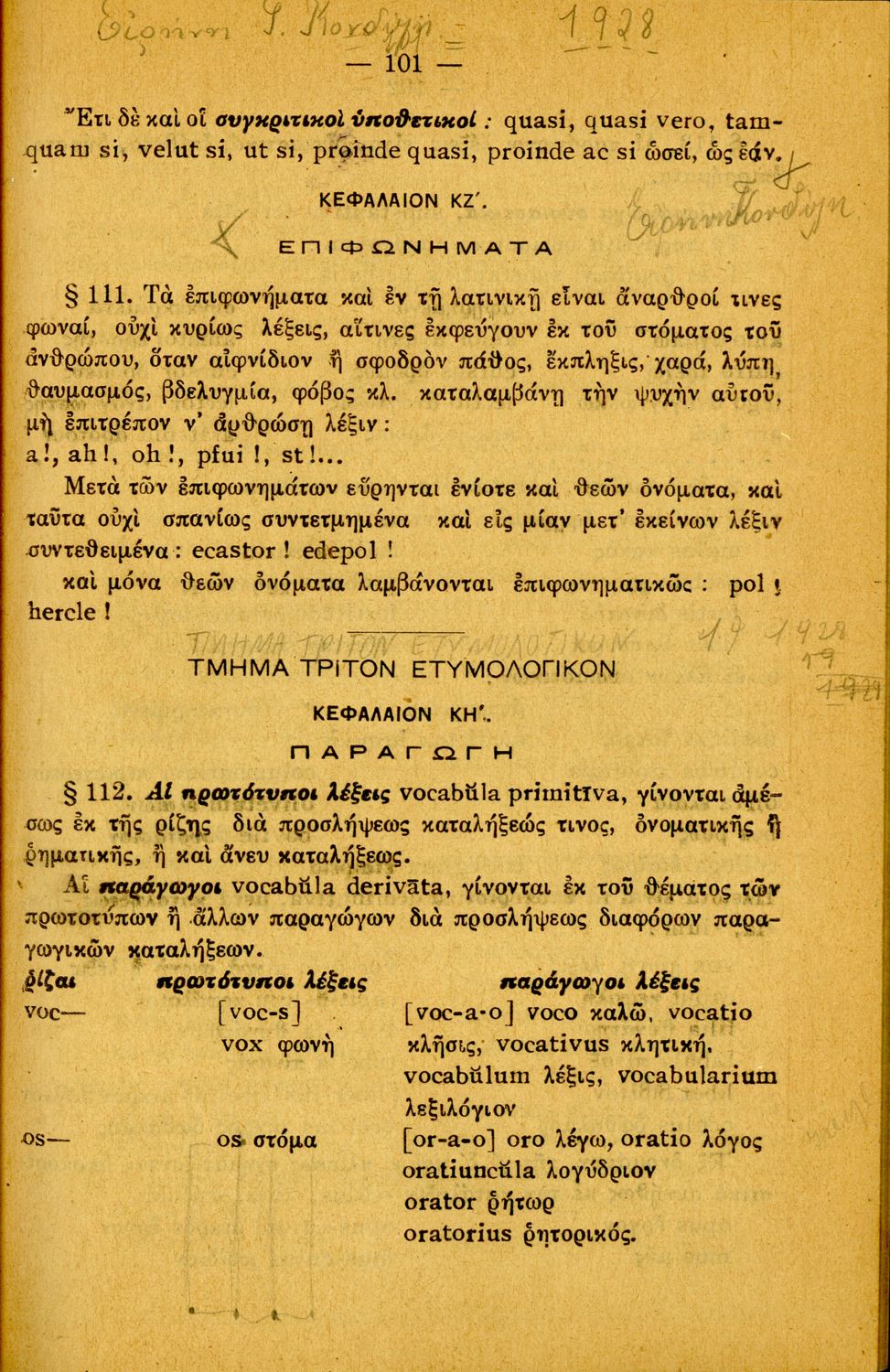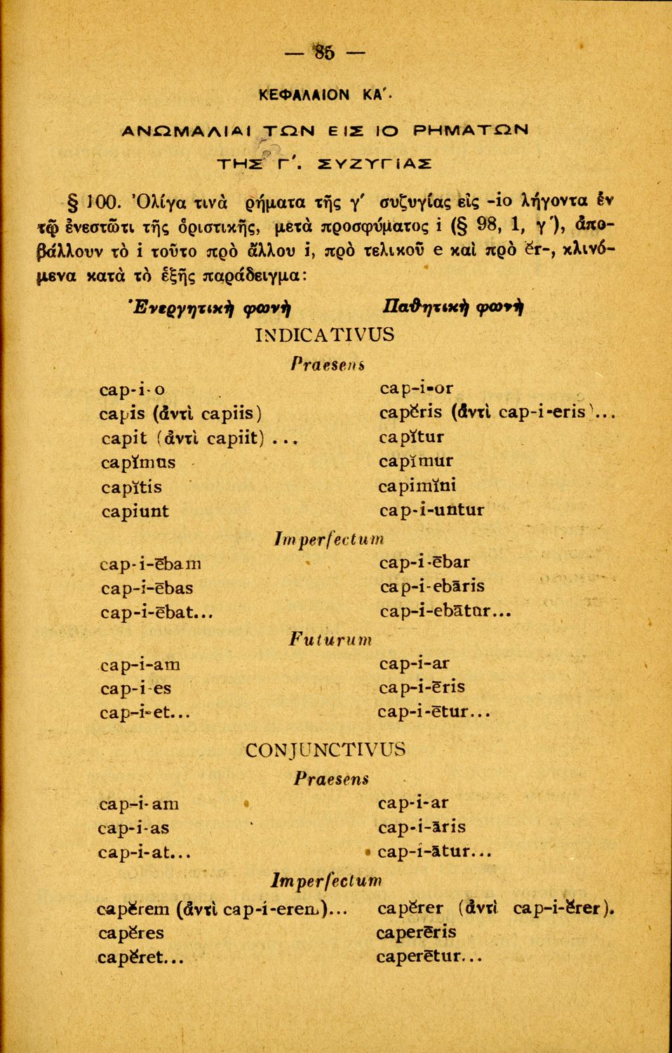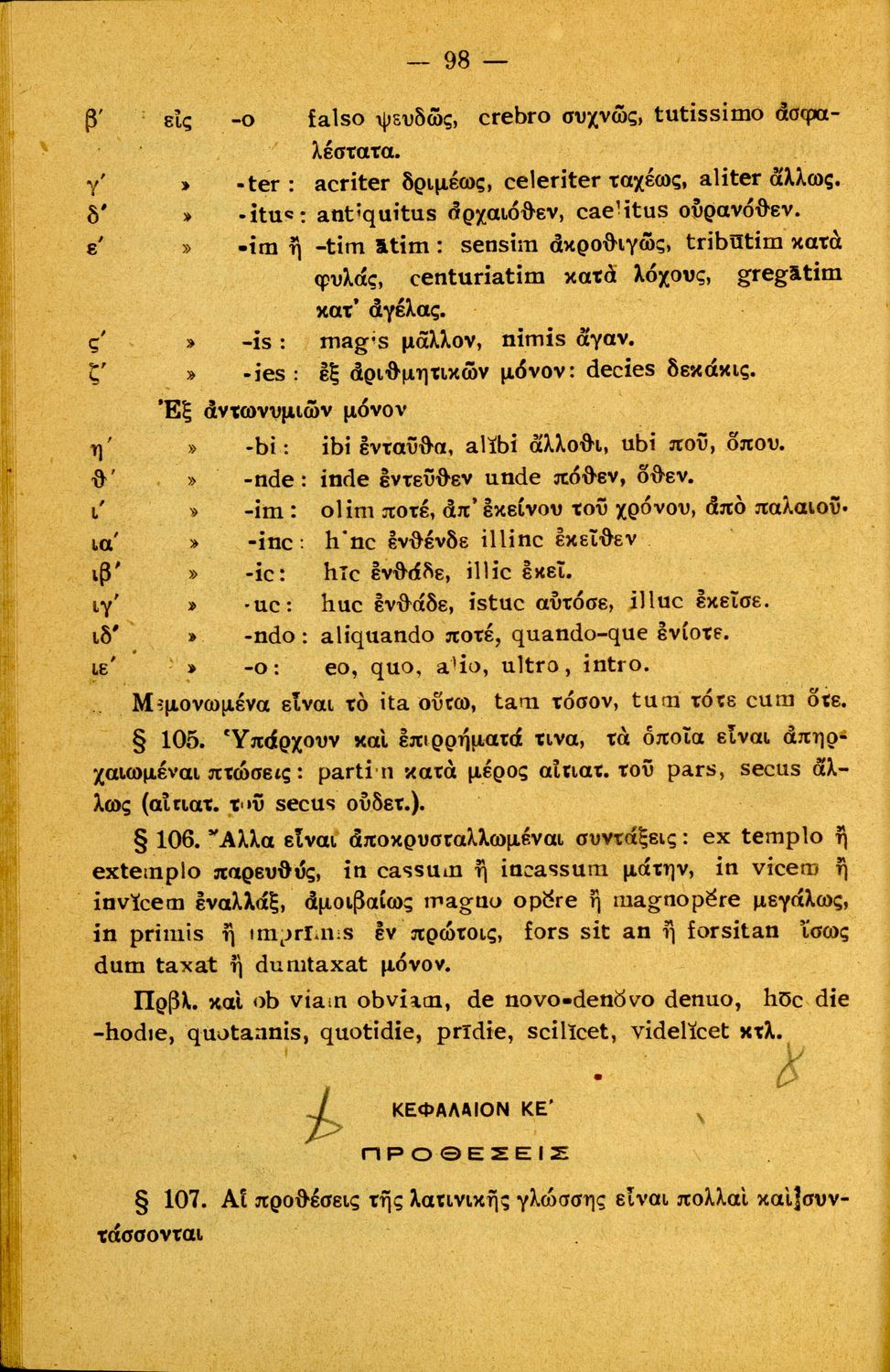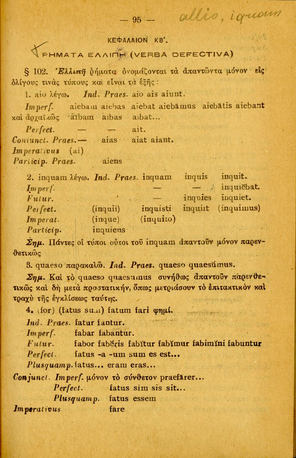 Σχολικό εγχειρίδιο Λατινικών Α΄, Β΄, Γ' Γυμνασίου που περιλαμβάνει γραμματική και συντακτικό και είναι χωρισμένο σε φθογγολογικό, τυπολογικό και ετυμολογικό μέρος.