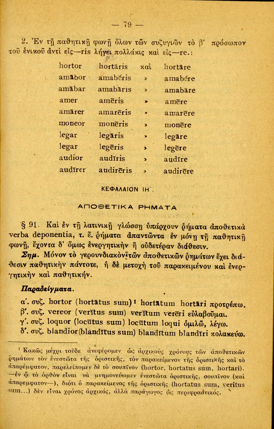 LDR 01368 2200205 4500 035 ## _a20-05391 040 ## _aΚΕΝΕΚ - Εταιρεία Σπουδών Νεοελληνικού Πολιτισμού και Παιδείας 041 ## _ael 100 ## _aΘεοφάνης Α. Κακριδής 110 ## _a5391 245 0# _aΓραμματική της λατινικής γλώσσης προς χρήσιν των μαθητών της Α΄, Β΄ και Γ΄ τάξεως των Γυμνασίων 250 ## _a7η Έκδοση 260 ## _aΑθήνα _bΙωάννης Δ. Κολλάρος, Βιβλιοπωλείο της "Εστίας" _c1926 300 ## _a292 _c19 520 ## _aΣχολικό εγχειρίδιο Λατινικών Α΄, Β΄, Γ' Γυμνασίου που περιλαμβάνει γραμματική και συντακτικό και είναι χωρισμένο σε φθογγολογικό, τυπολογικό και ετυμολογικό μέρος. 521 ## _aΑ' Γυμνασίου / Β' Γυμνασίου / Γ' Γυμνασίου 522 ## _aΕλλάδα 546 ## _aΚαθαρεύουσα 563 ## _aΜαλακό Εξώφυλλο 650 #4 _aΑνώμαλα ρήματα _aΕνεργητική και παθητική φωνή _aΜέρη του λόγου _aΠροθέσεις _aΣυζυγίες _aΥποθετικοί λόγοι