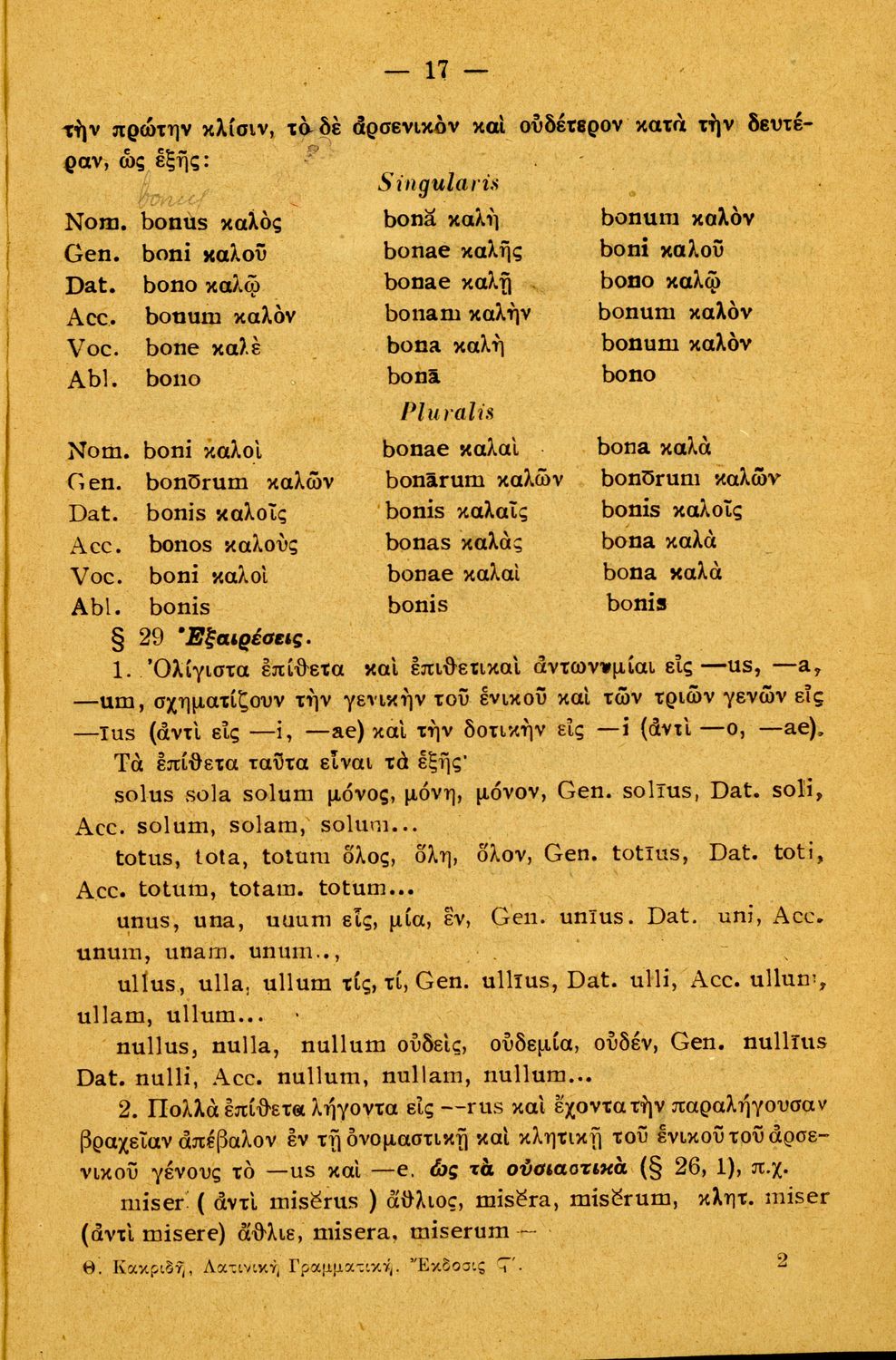 Γραμματική της λατινικής γλώσσης προς χρήσιν των μαθητών της Α΄, Β΄ και Γ΄ τάξεως των Γυμνασίων