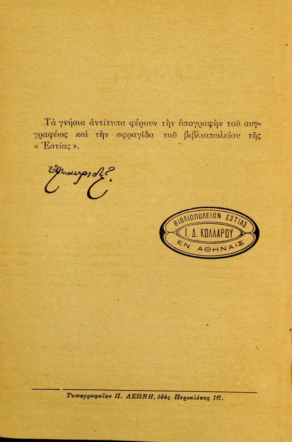 Εκδότης: Ιωάννης Δ. Κολλάρος, Βιβλιοπωλείο της "Εστίας"