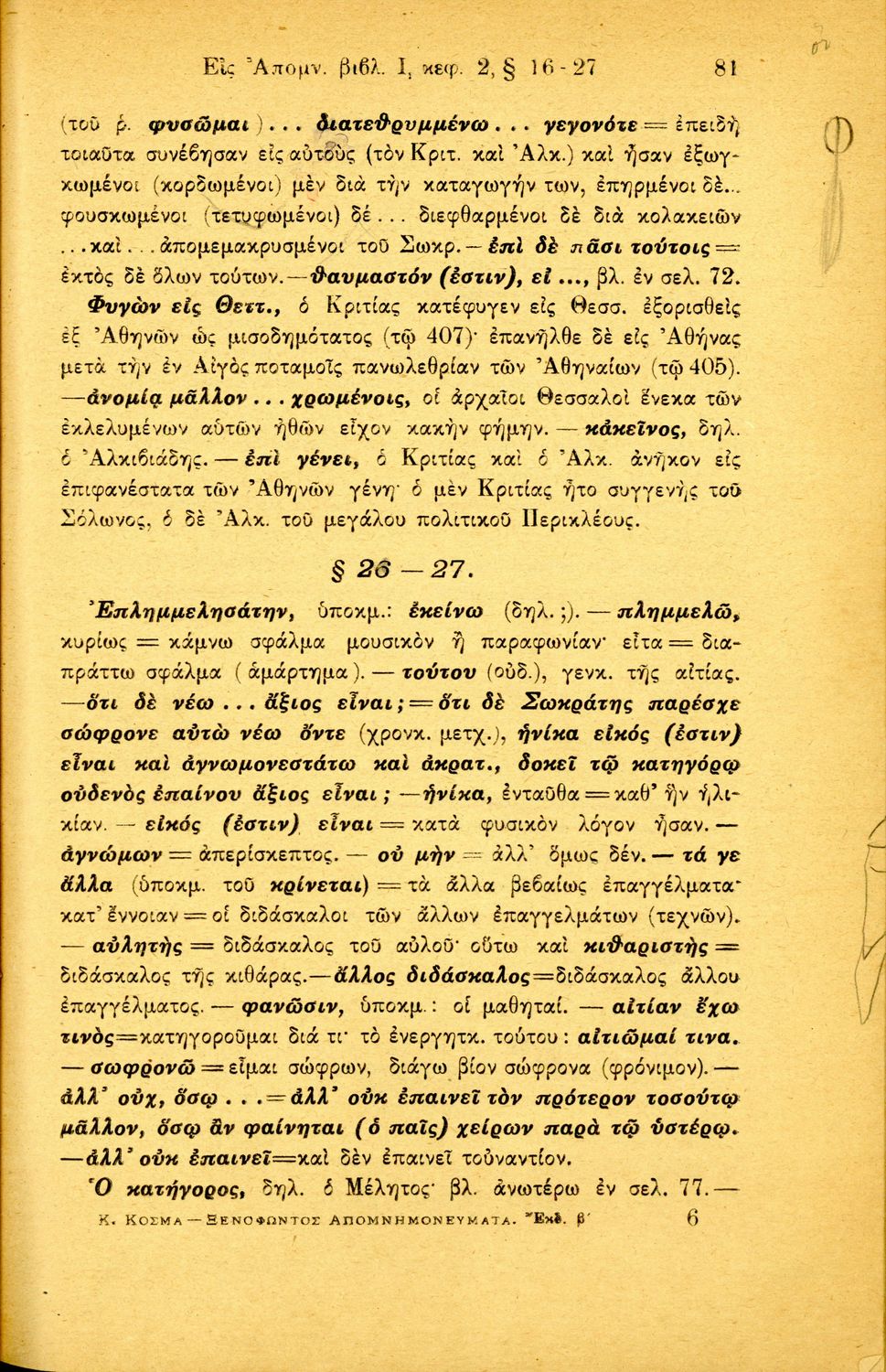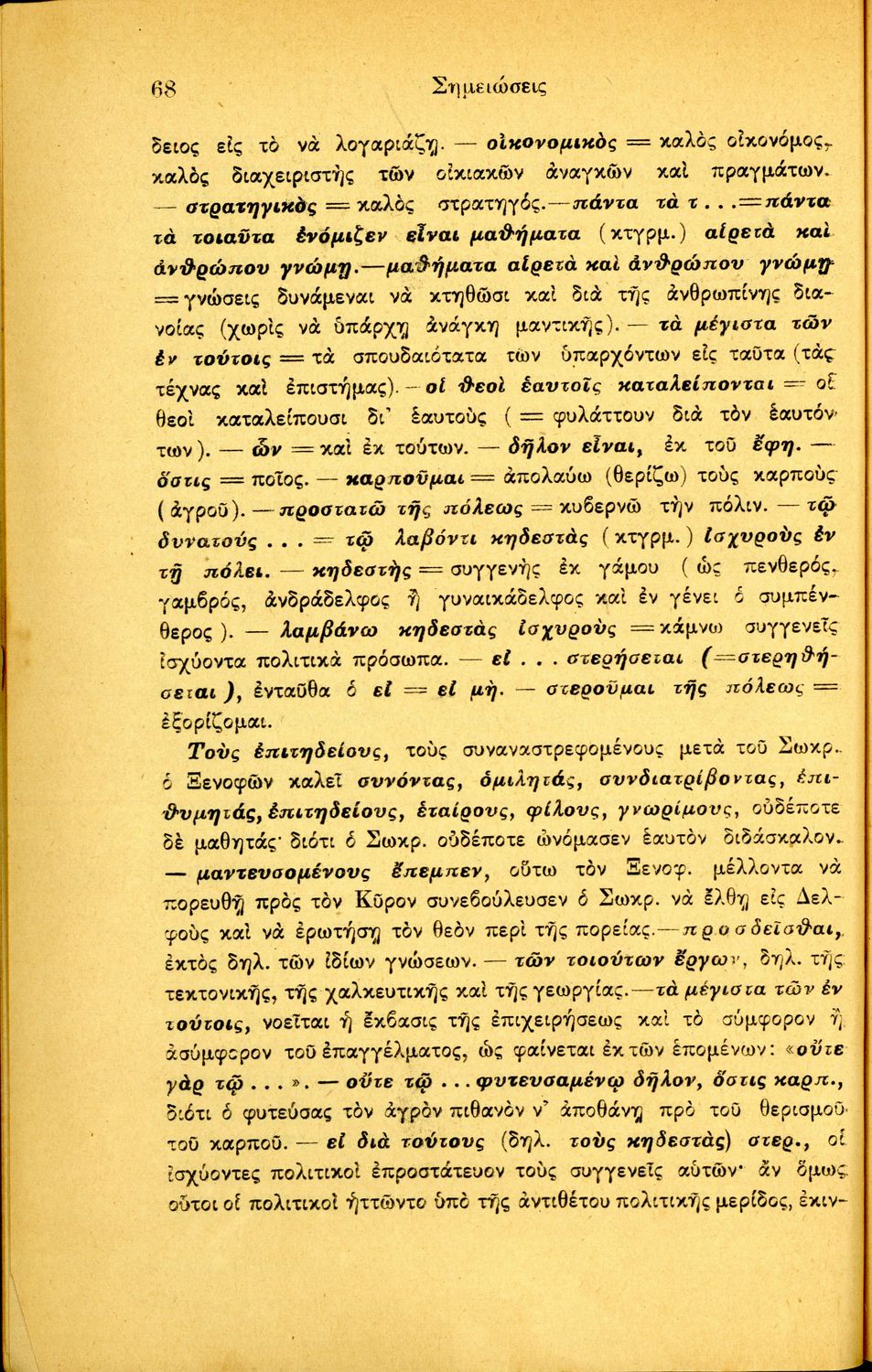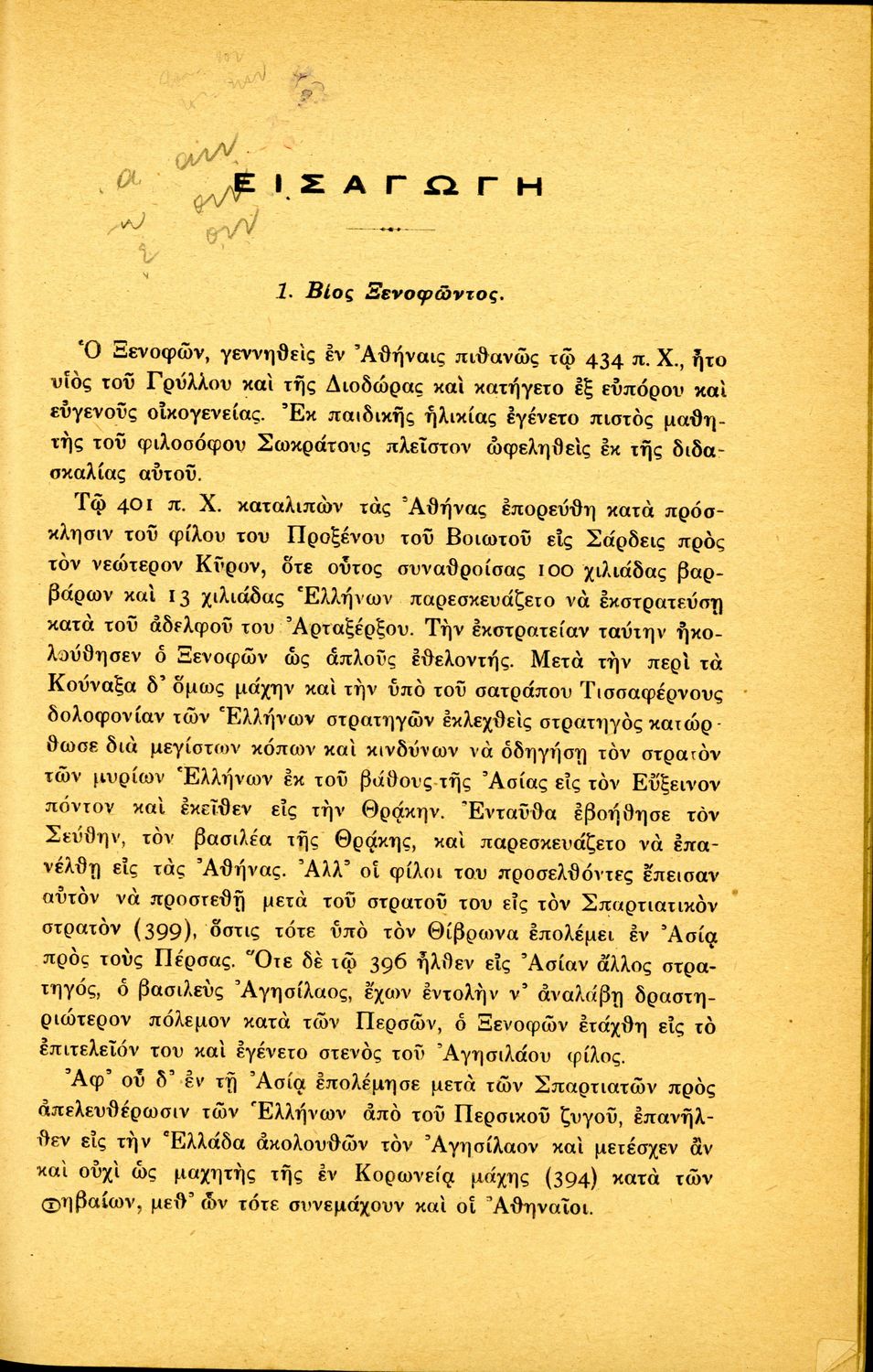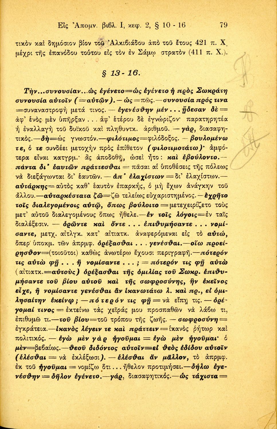 Σχολικό εγχειρίδιο Αρχαίων Ελληνικών Β΄ Γυμνασίου που περιλαμβάνει αποσπάσματα από τα Απομνημονεύματα του Ξενοφώντα, εισαγωγικά σχόλια για στη ζωή και το έργο του, ερμηνευτικές σημειώσεις και πραγματολογικά και γραμματικά σχόλια.