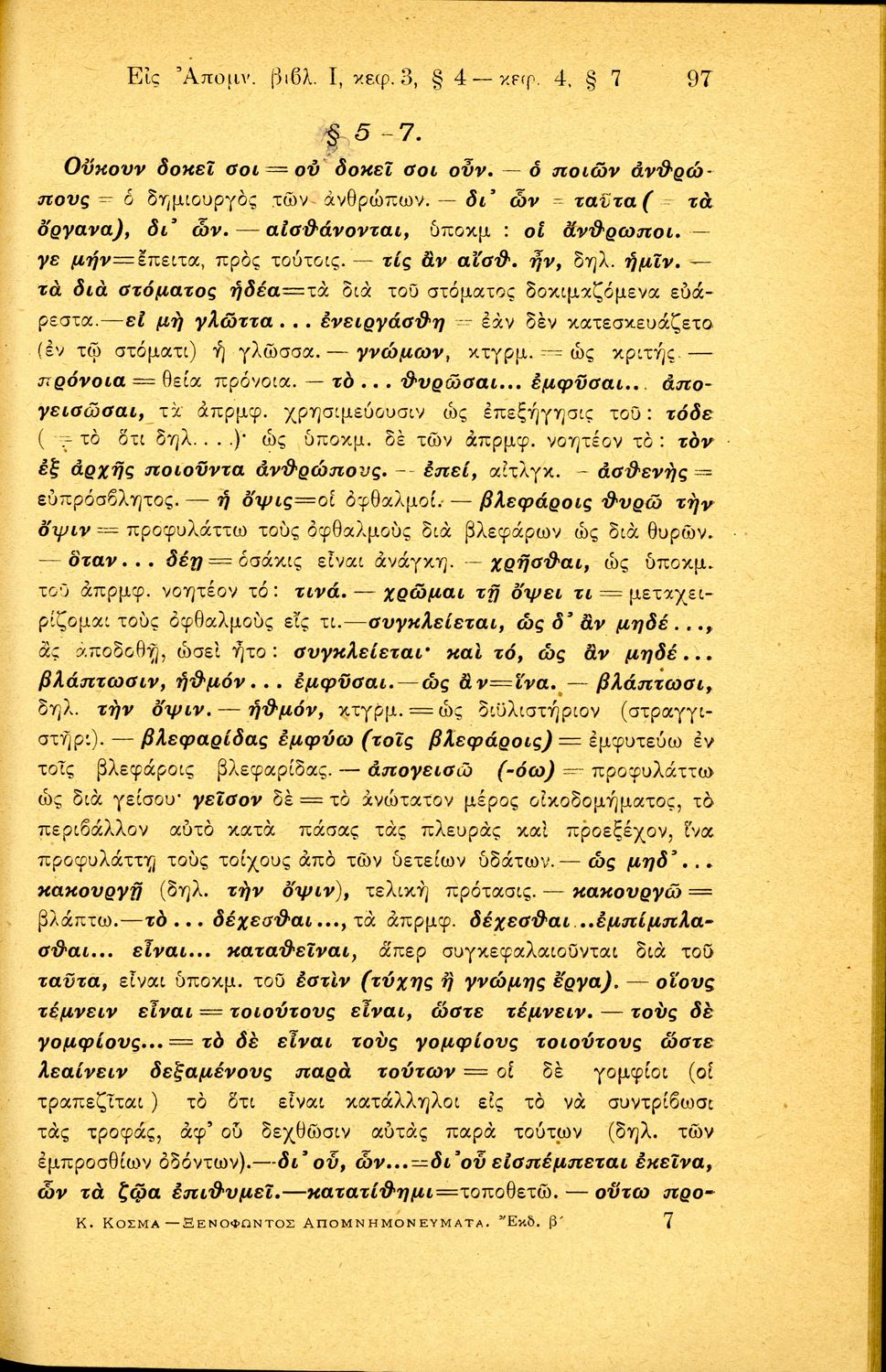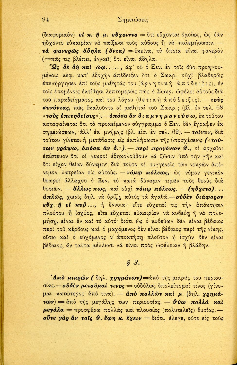 Σχολικό εγχειρίδιο Αρχαίων Ελληνικών Β΄ Γυμνασίου που περιλαμβάνει αποσπάσματα από τα Απομνημονεύματα του Ξενοφώντα, εισαγωγικά σχόλια για στη ζωή και το έργο του, ερμηνευτικές σημειώσεις και πραγματολογικά και γραμματικά σχόλια.