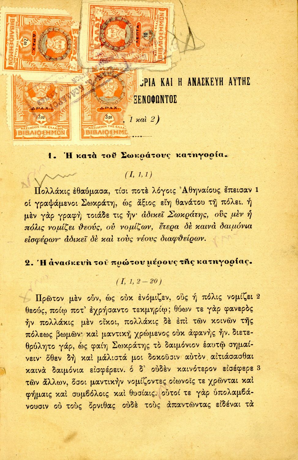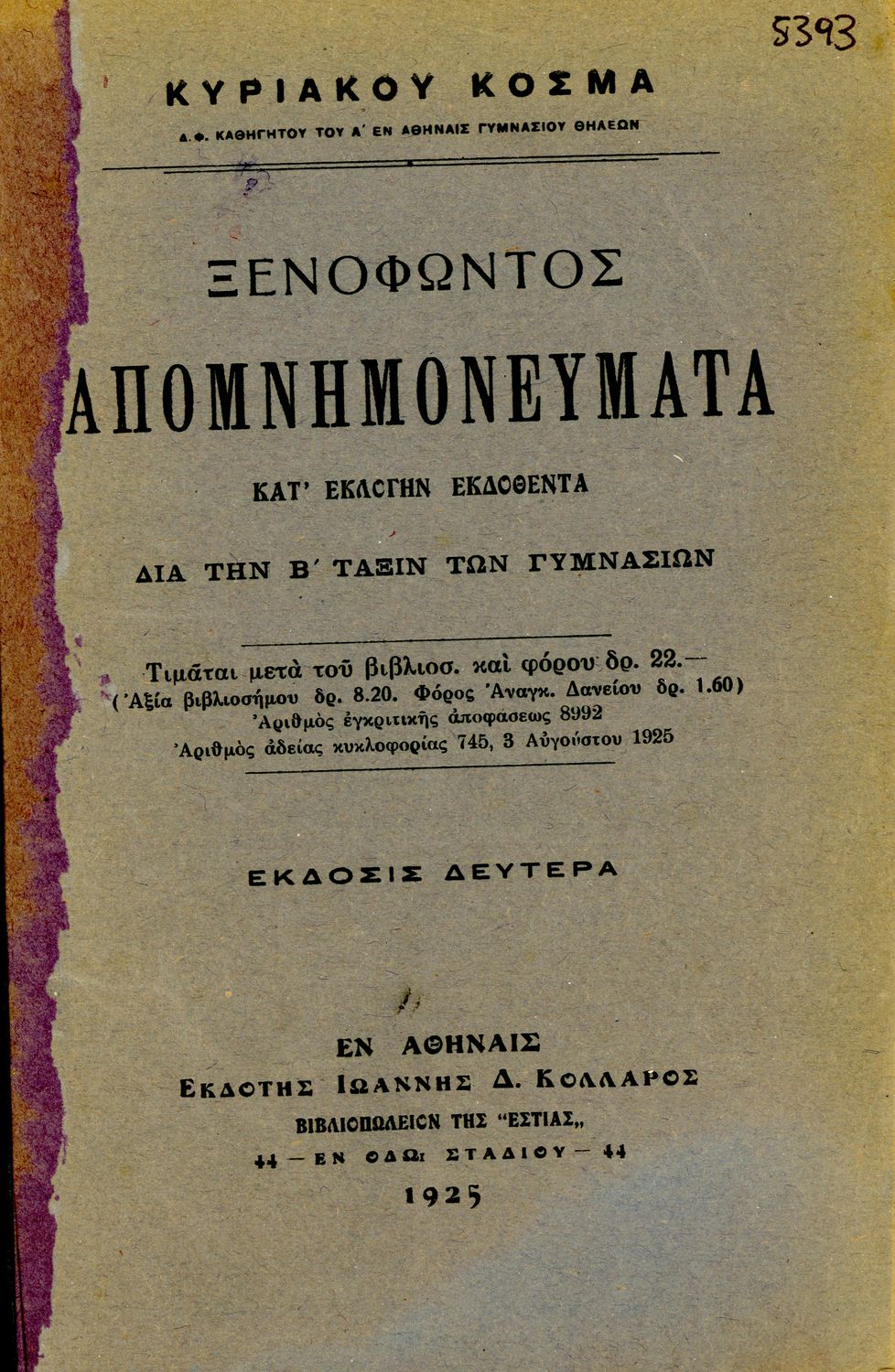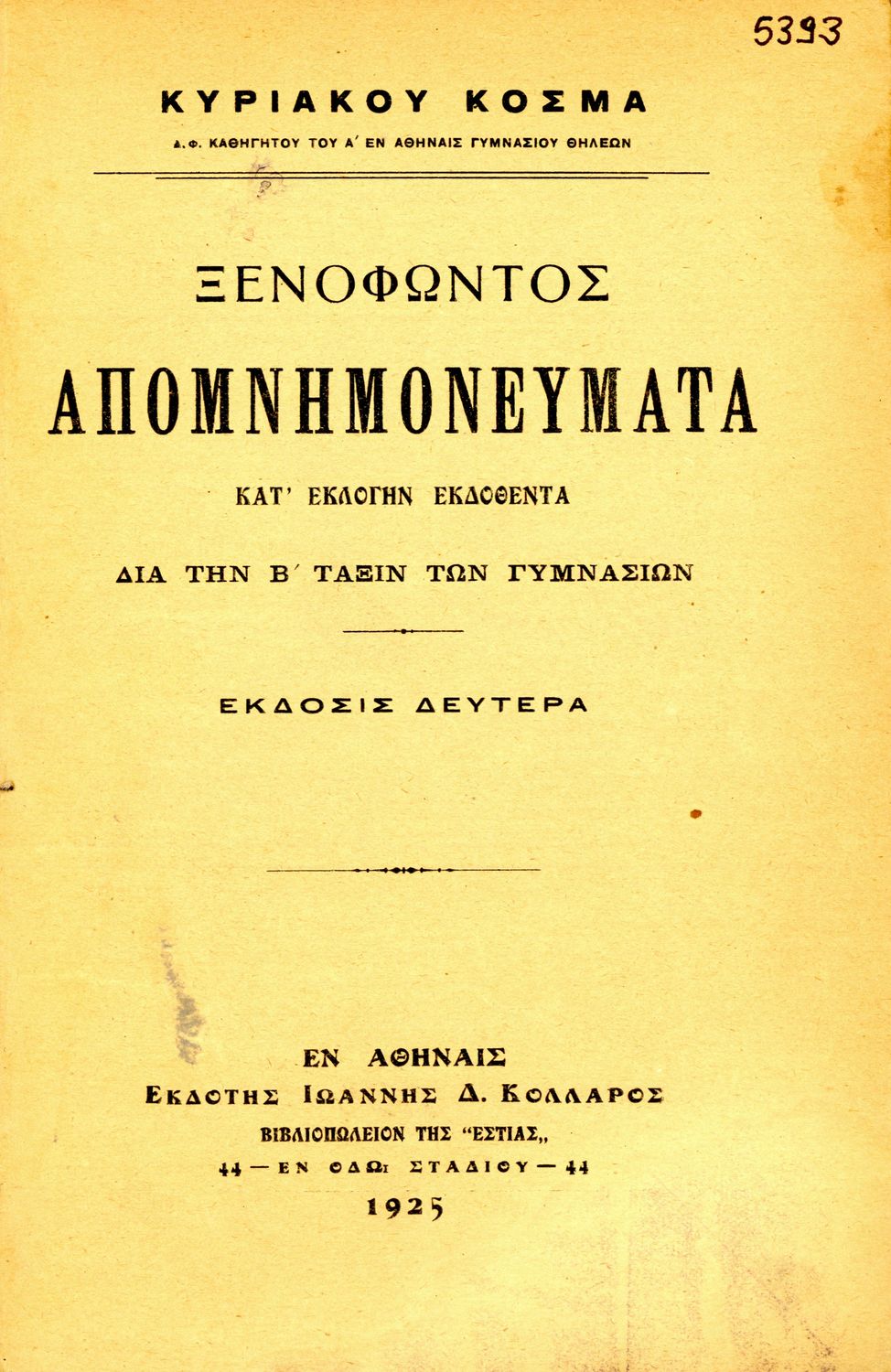 Τίτλος: Ξενοφώντος Απομνημονεύματα κατ' εκλογήν εκδοθέντα διά την Β΄ τάξιν των Γυμνασίων