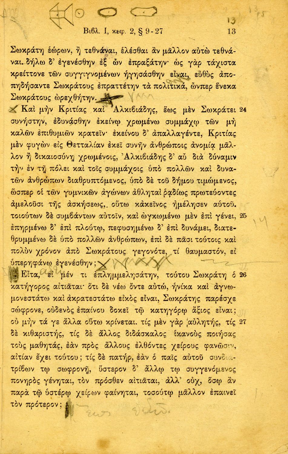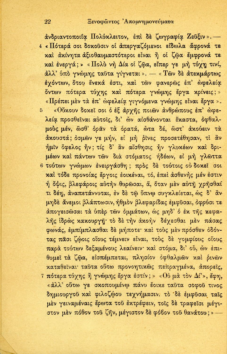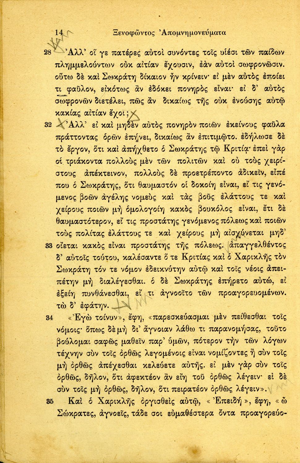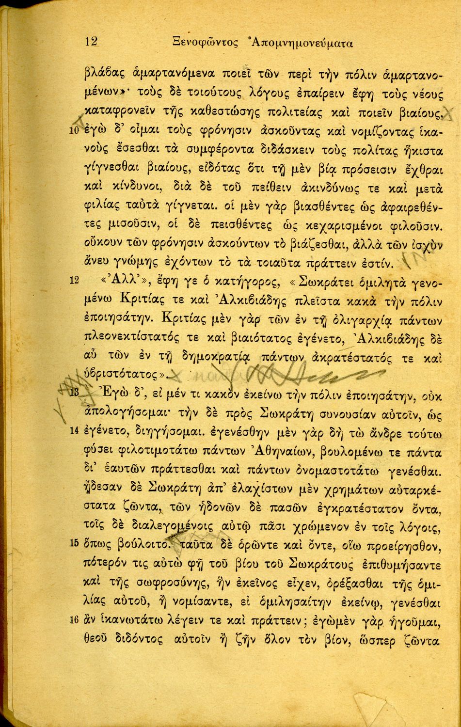 Σχολικό εγχειρίδιο Αρχαίων Ελληνικών Β΄ Γυμνασίου που περιλαμβάνει αποσπάσματα από τα Απομνημονεύματα του Ξενοφώντα, εισαγωγικά σχόλια για στη ζωή και το έργο του, ερμηνευτικές σημειώσεις και πραγματολογικά και γραμματικά σχόλια.