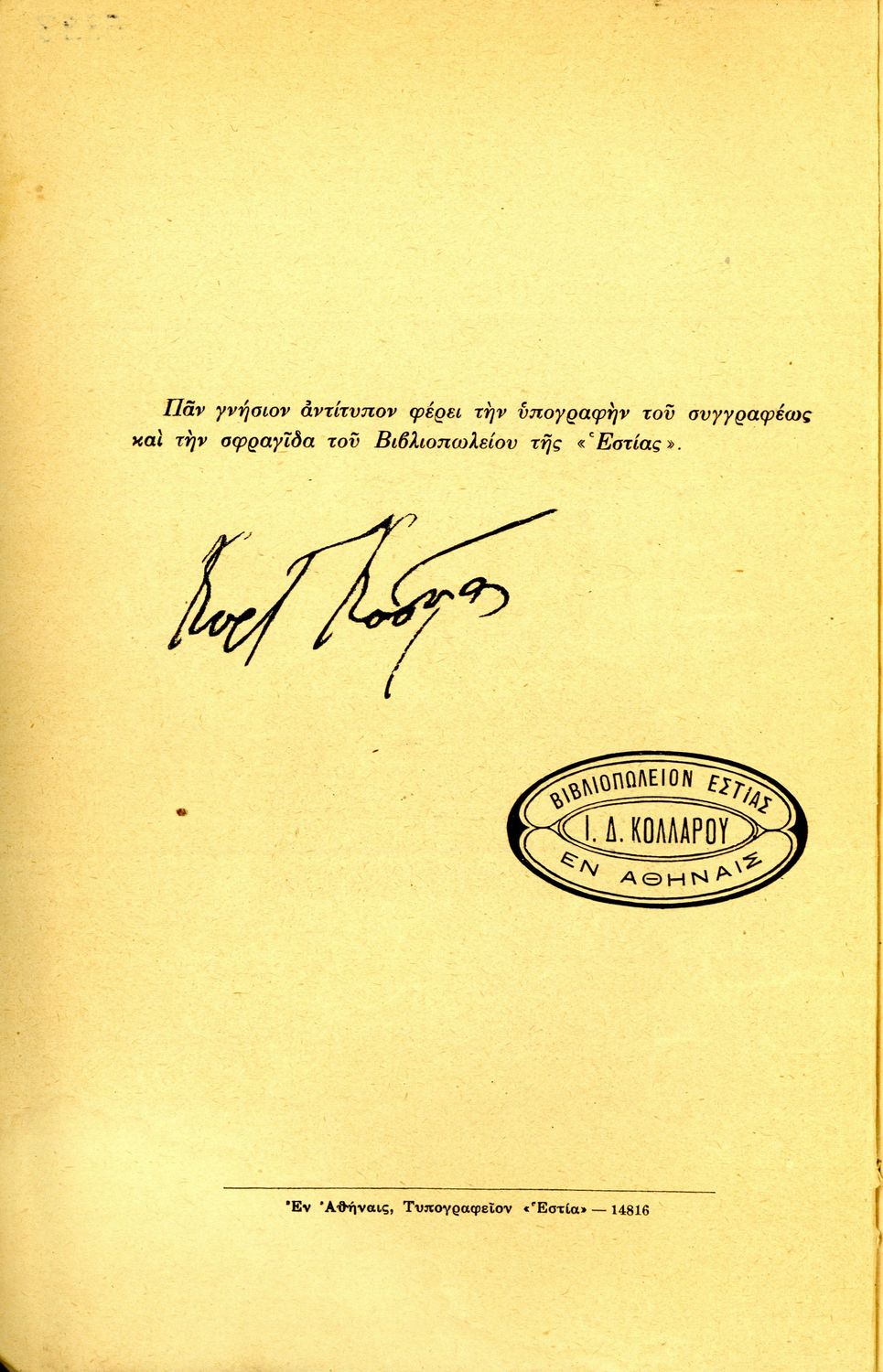 Εκδότης: Ιωάννης Δ. Κολλάρος, Βιβλιοπωλείο της "Εστίας"