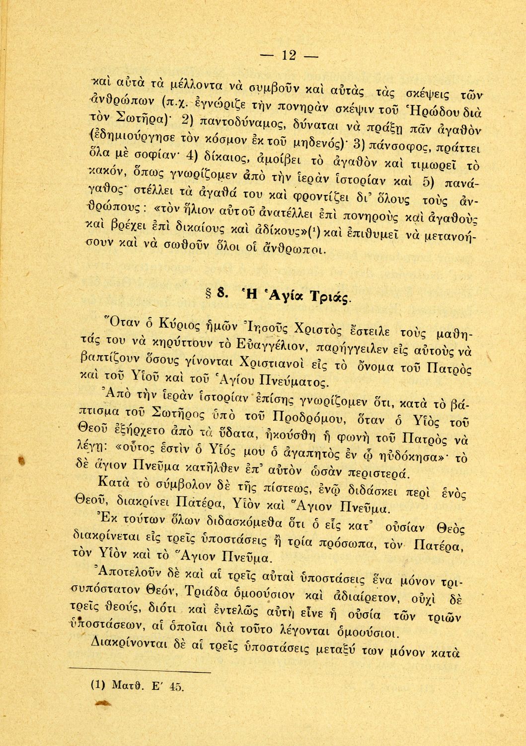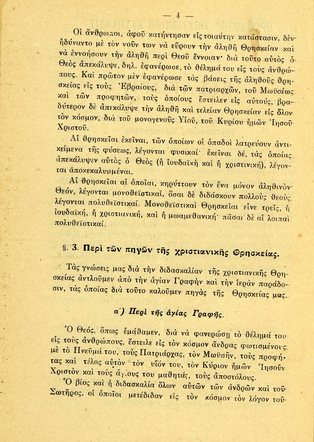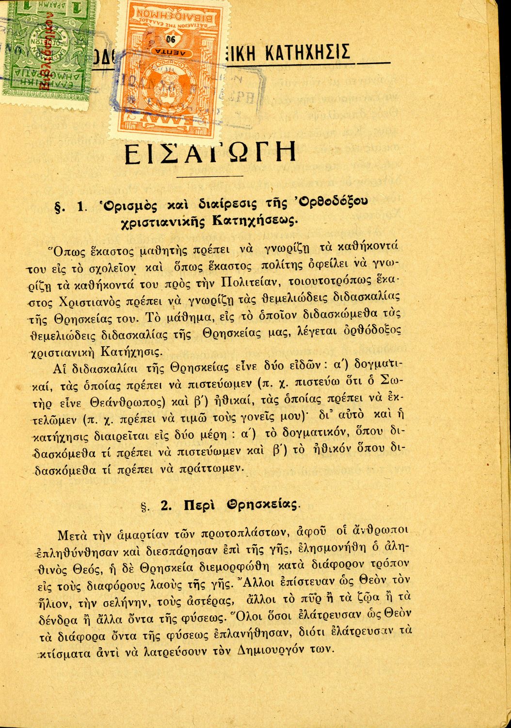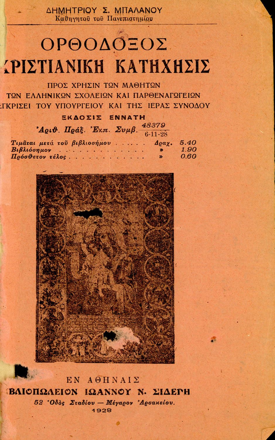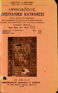 Σχολικό εγχειρίδιο Θρησκευτικών για τα Ελληνικά Σχολεία και Παρθεναγωγεία που εστιάζει σε θέματα χριστιανικής ηθικής και σε δογματικά και ηθικά ζητήματα της ορθόδοξης κατήχησης.