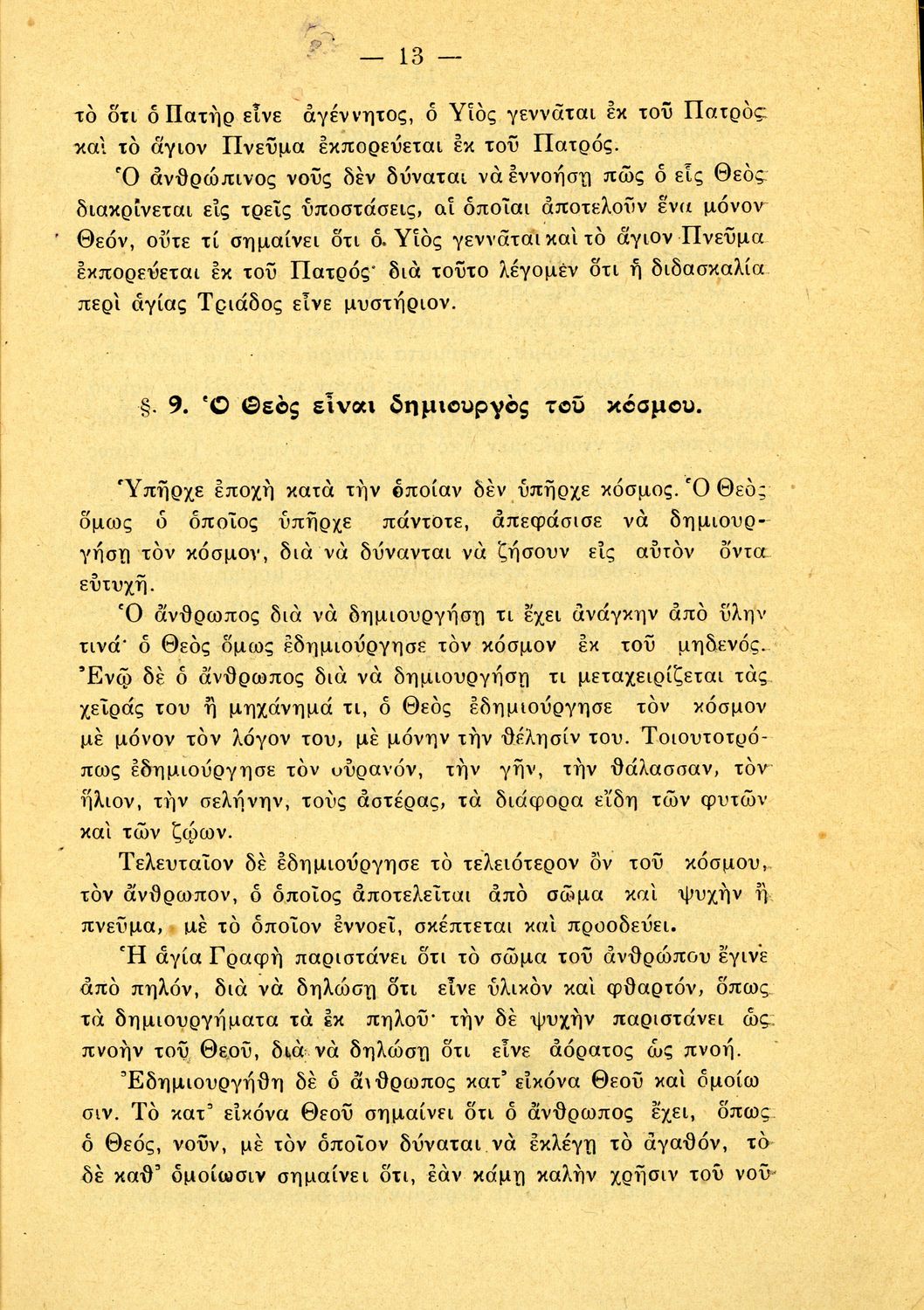 Σχολικό εγχειρίδιο Θρησκευτικών Γ' Ελληνικού Σχολείου που περιλαμβάνει εισαγωγή στη χριστιανική κατήχηση και τα δόγματά της και πραγματεύεται δογματικά και ηθικά ζητήματα της ορθόδοξης παράδοσης.