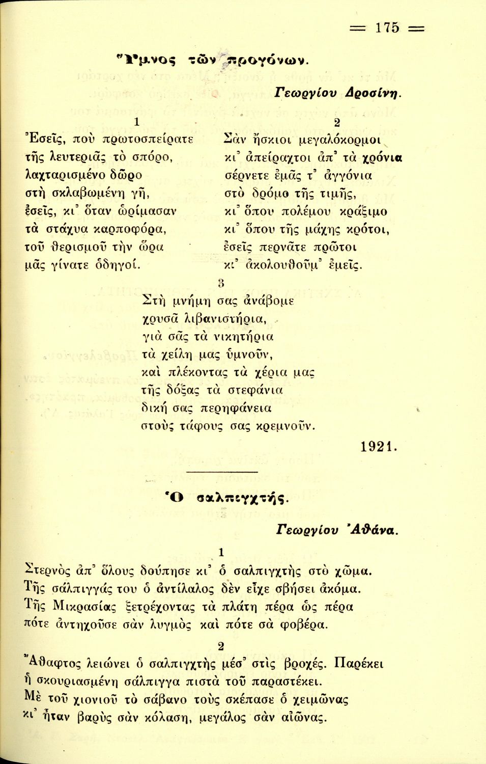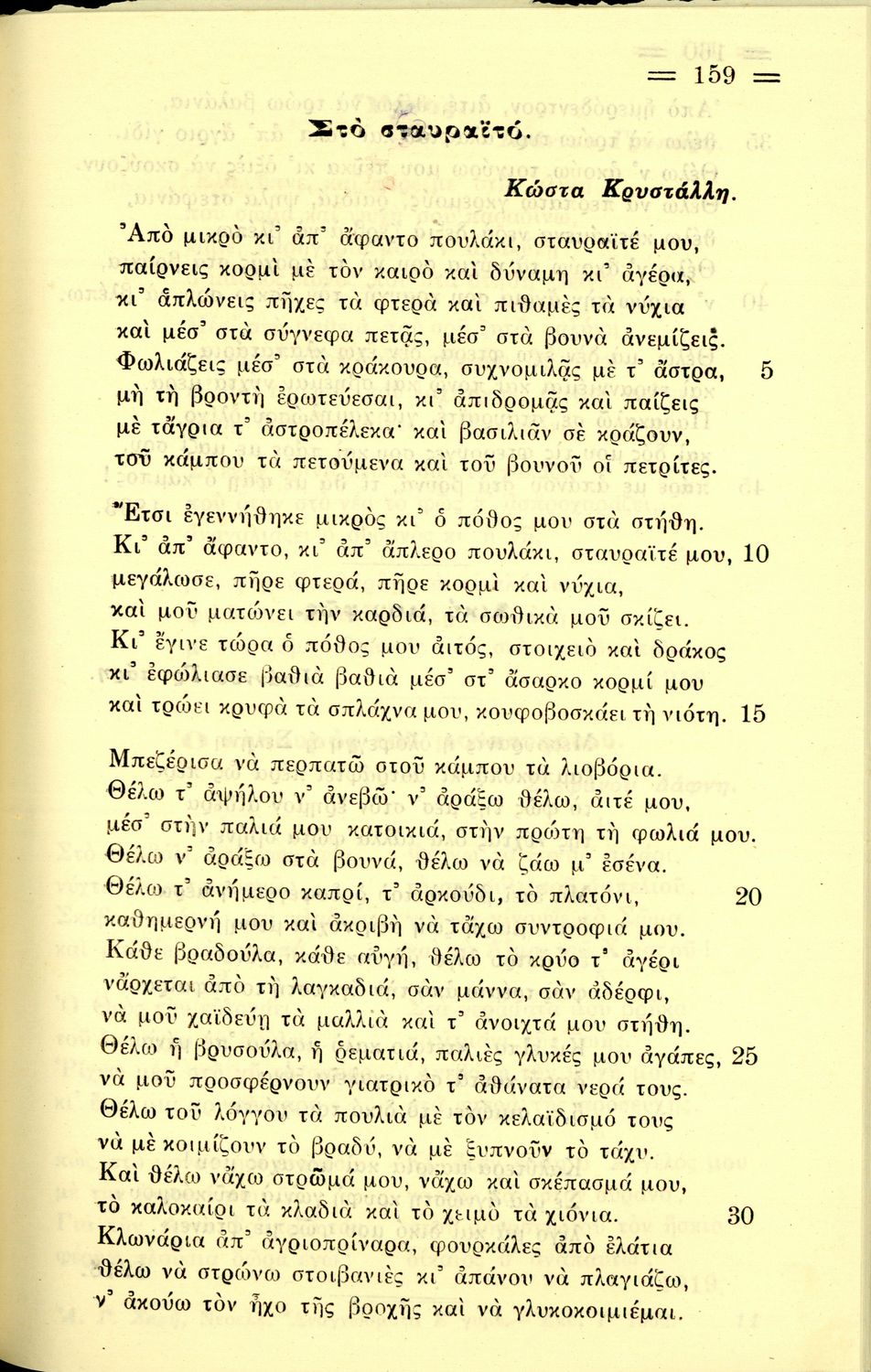Σχετιζόμενοι όροι:  Κρυστάλλης, Παλαμάς, Σολωμός, Δροσίνης