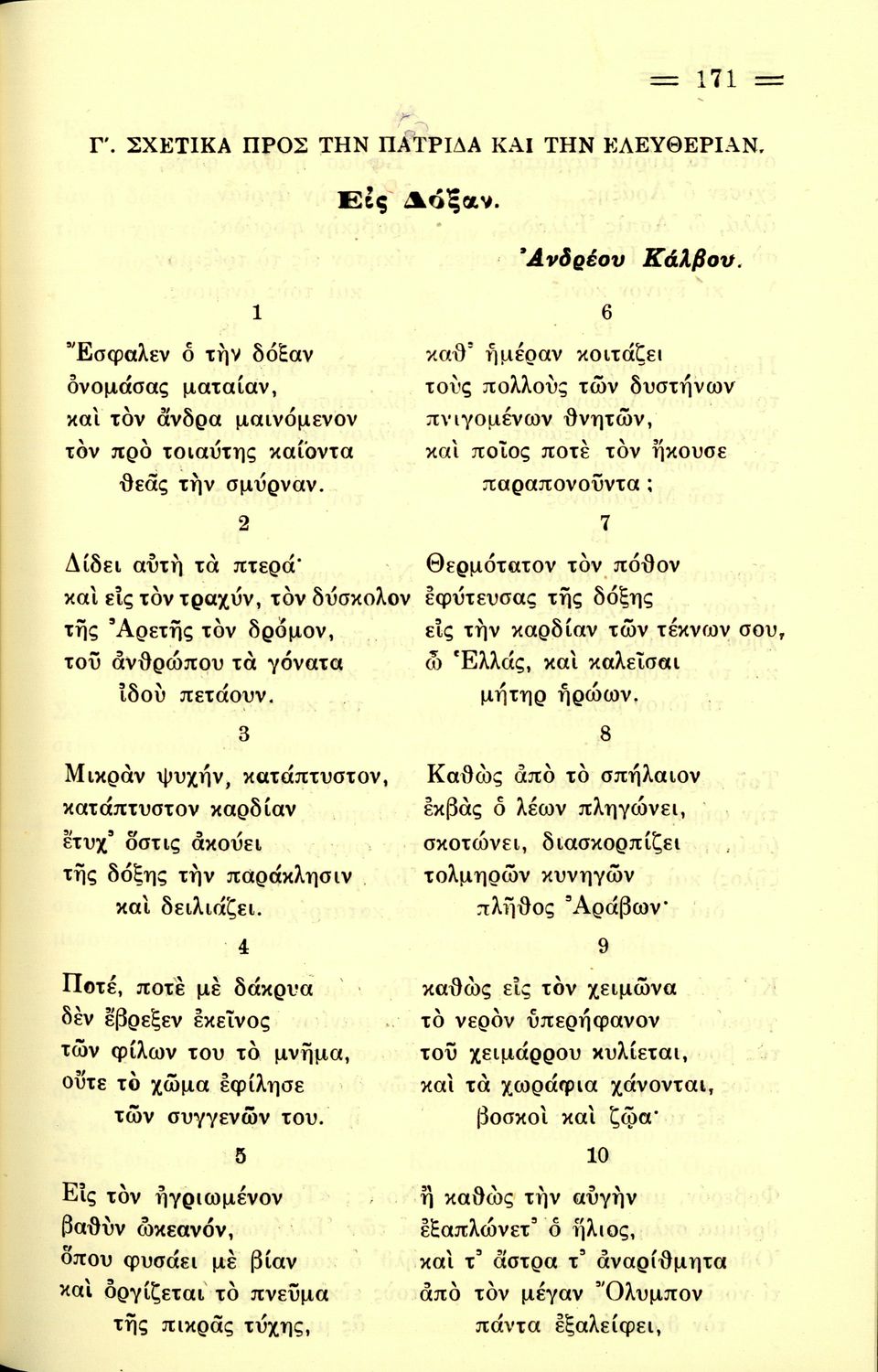 Σχετιζόμενοι όροι:  Κορνάρος, Κάλβος, Κοραής, Παλαμάς