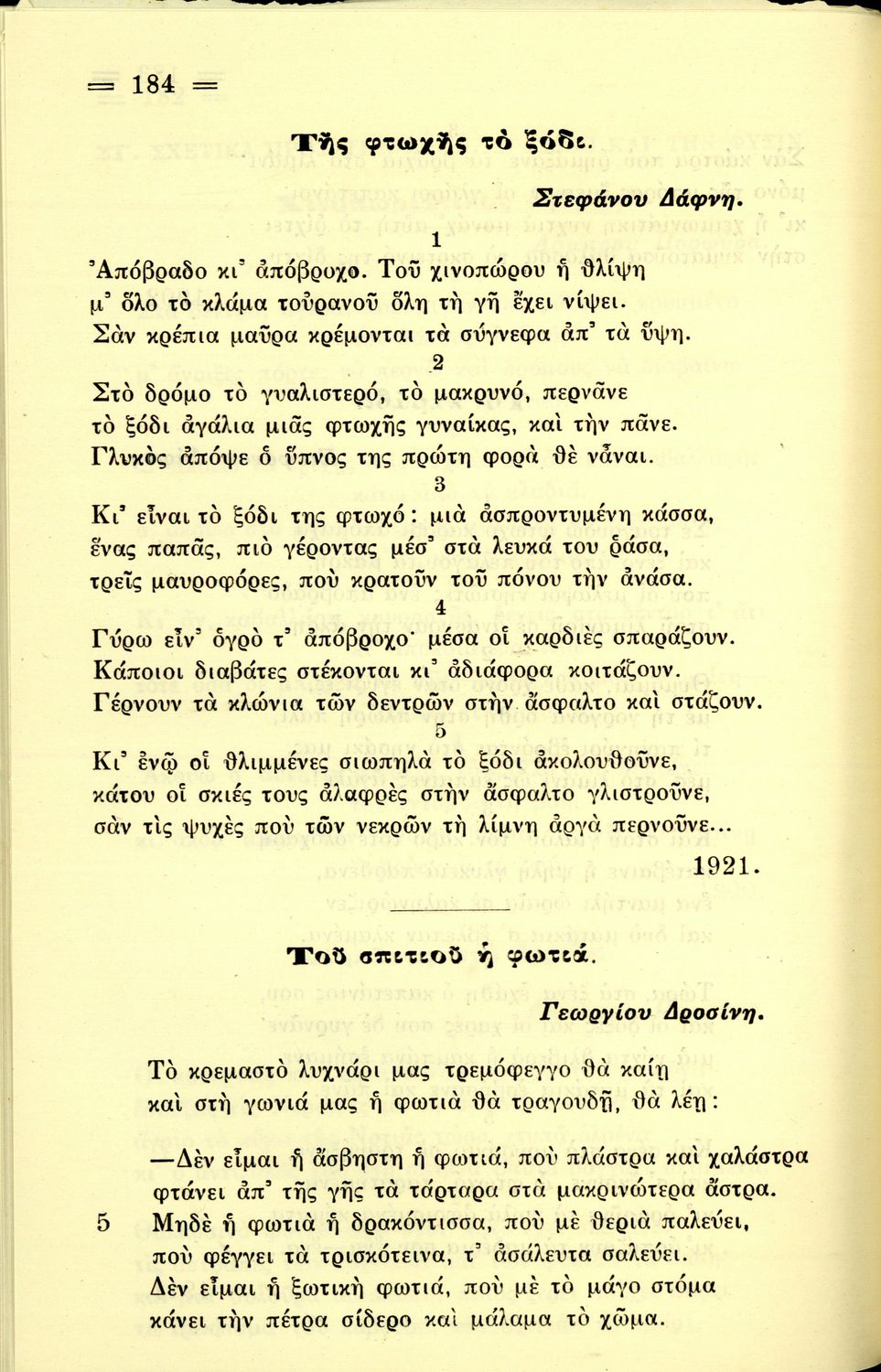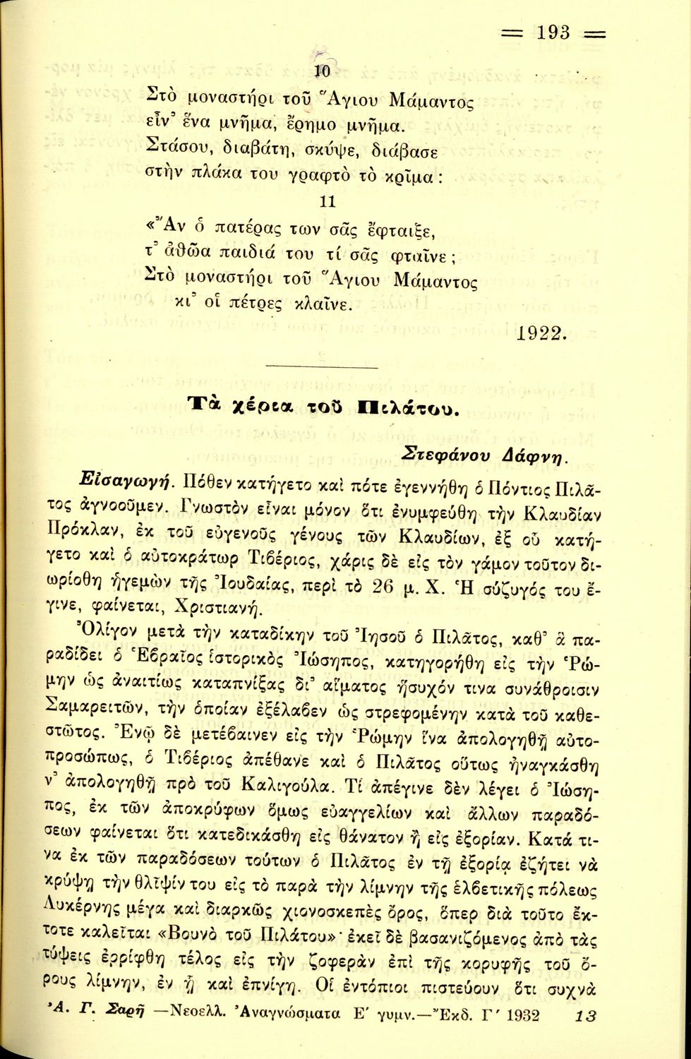 Σχολικό εγχειρίδιο Νέων Ελληνικών για την Ε΄ Εξαταξίου Γυμνασίου που περιλαμβάνει ποιήματα και πεζά Ελλήνων συγγραφέων εμπνευσμένα από την σύγχρονη ελληνική ιστορία, την ελληνική μυθολογία, τη βυζαντινή ιστορία, και τις ανθρώπινες αξίες και ελαττώματα. Περιέχει και παράρτημα με βιογραφίες των συγγραφέων και λεξιλόγιο.