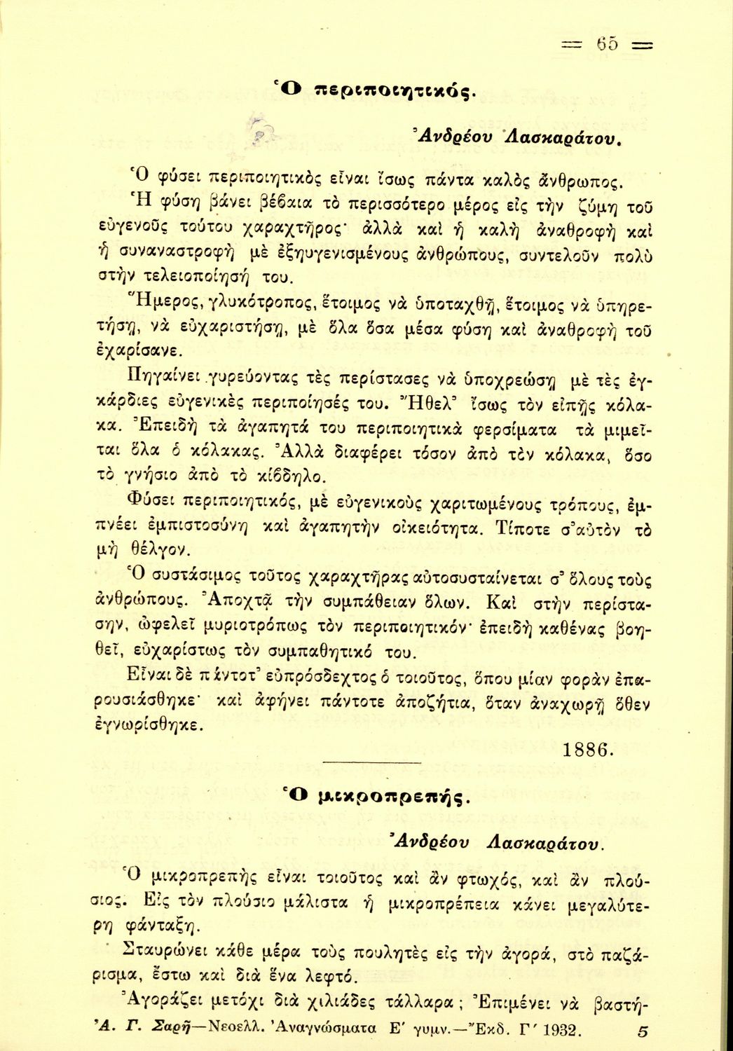 Νεοελληνικά αναγνώσματα διά τους μαθητάς της Ε΄ τάξεως των Γυμνασίων και Λυκείων