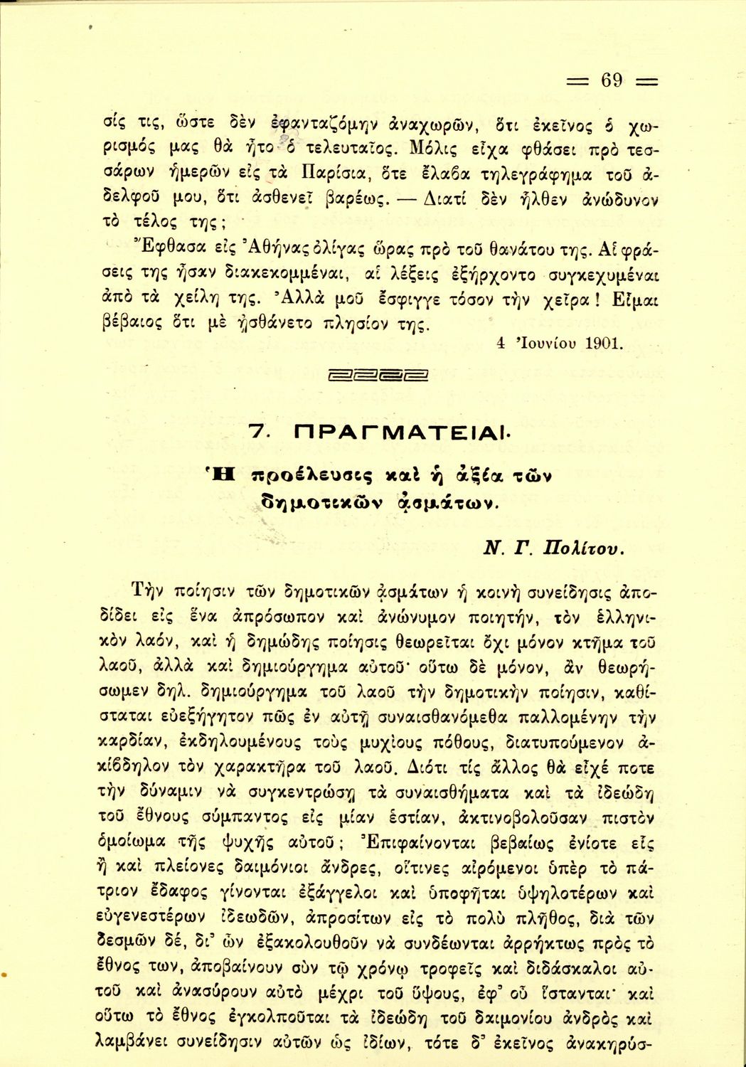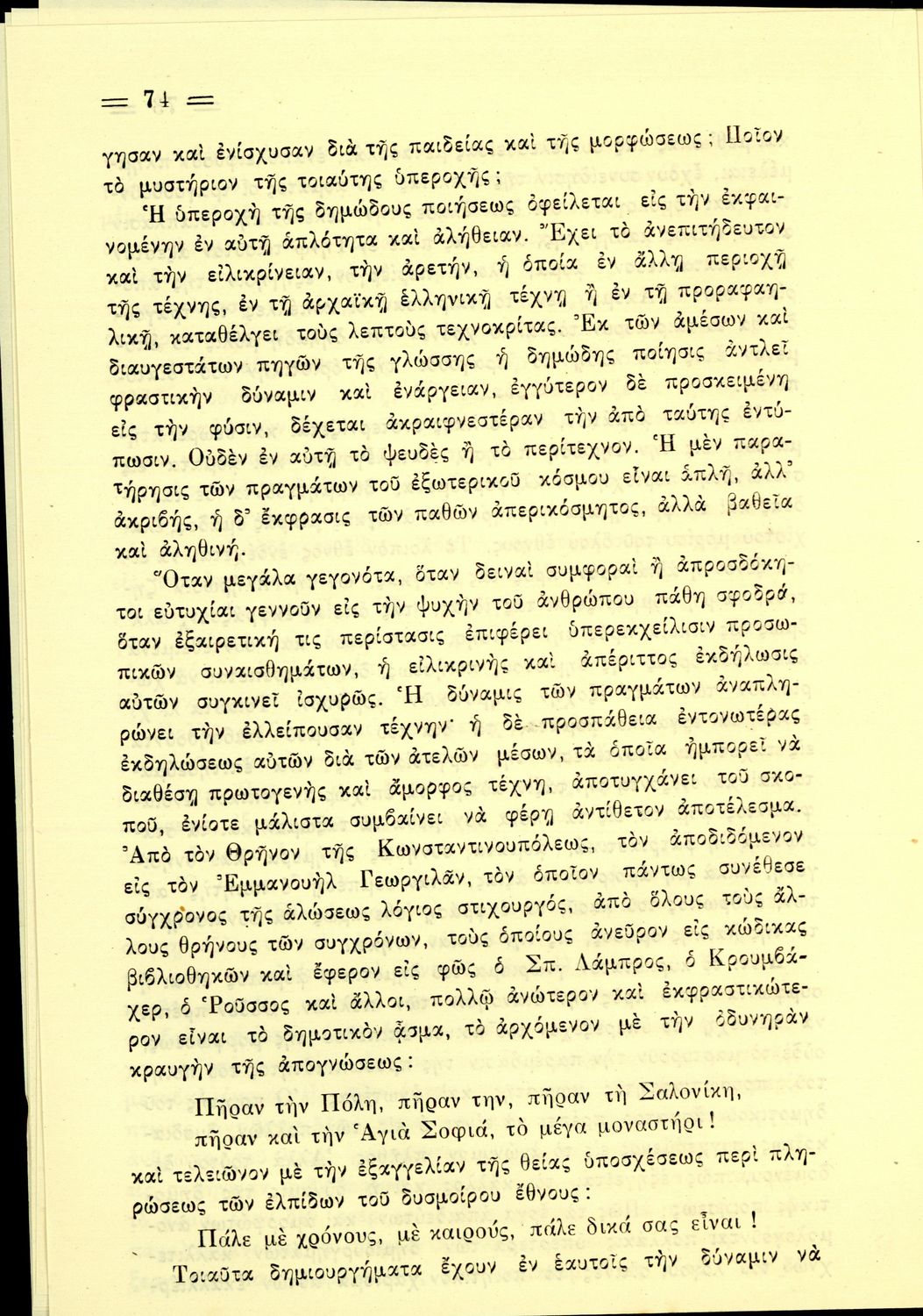 Σχετιζόμενοι όροι:  Κρυστάλλης, Παλαμάς, Σολωμός, Δροσίνης