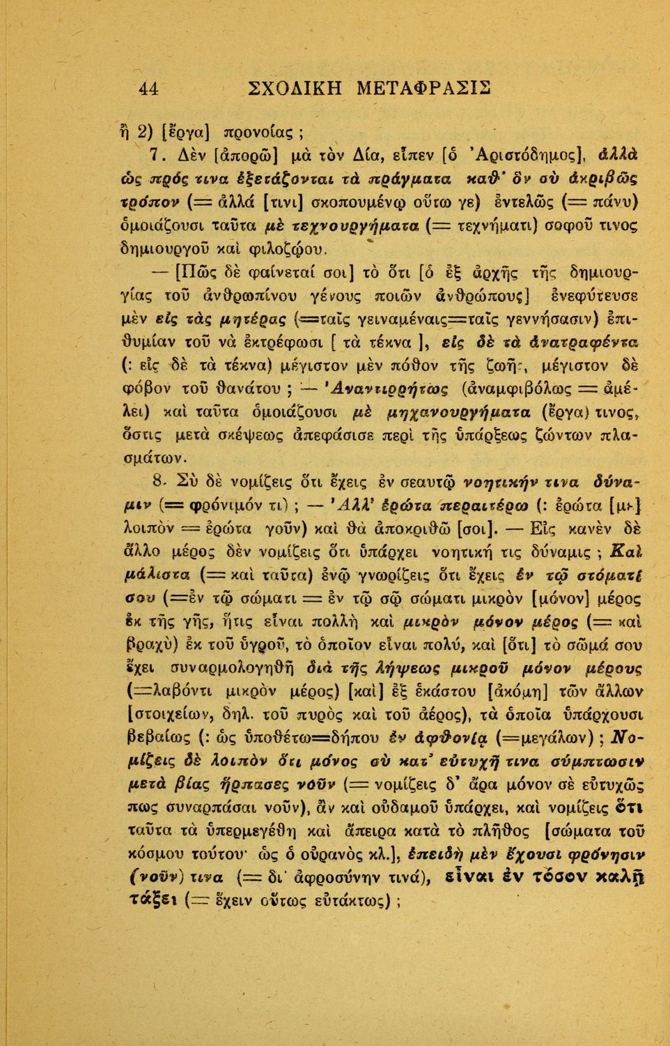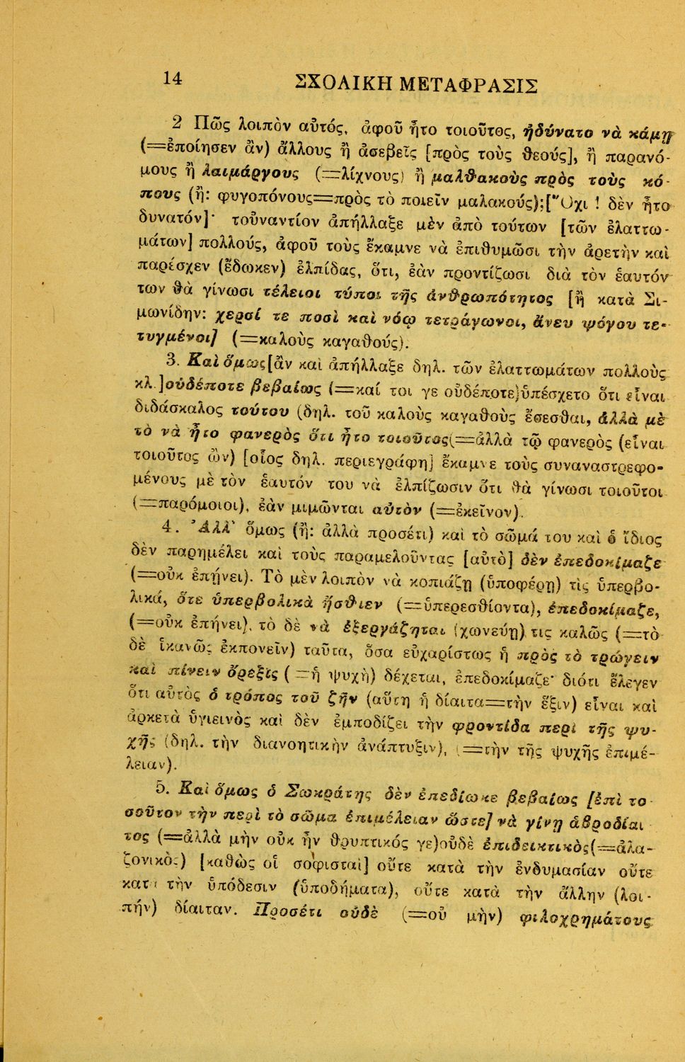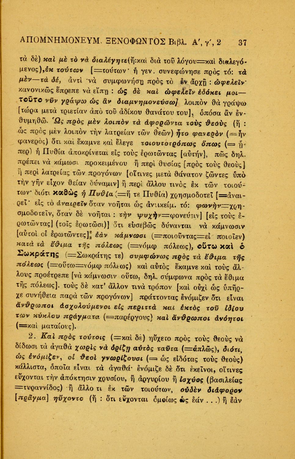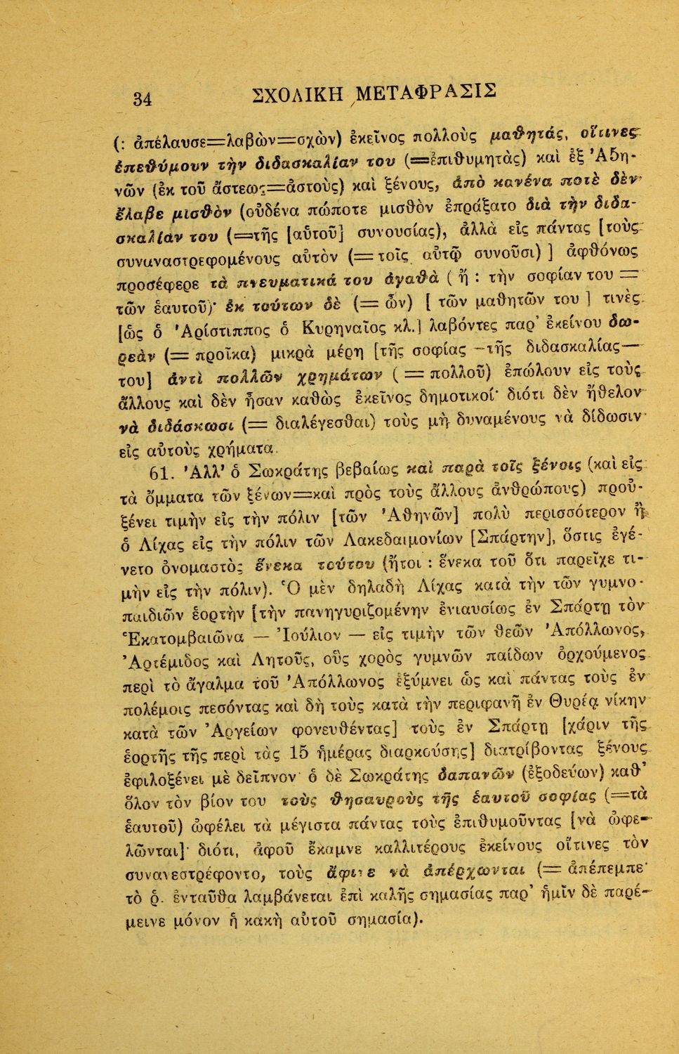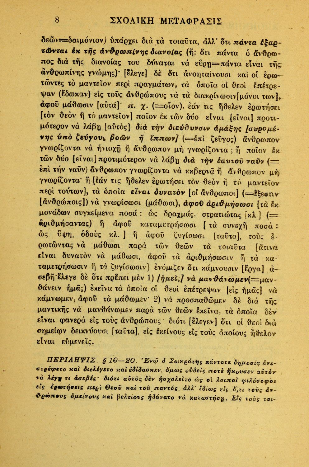 Μαθητικό βοήθημα Β΄ Τετραταξίου Γυμνασίου που περιλαμβάνει την μετάφραση αποσπασμάτων από το έργο του Ξενοφώντα Απομνημονεύματα και πραγματολογικά, γραμματικά και λεξιλογικά σχόλια.