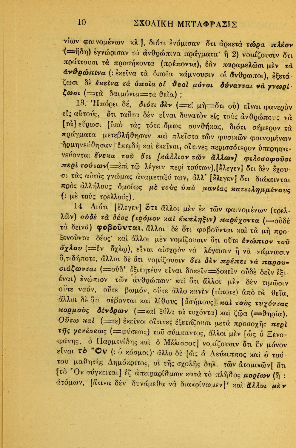 Μαθητικό βοήθημα Αρχαίων Ελληνικών της τρίτης τάξης των τετρατάξιων Γυμνασίων. Το βιβλίο περιέχει τα έργα του Δημοσθένη, Περί της ειρήνης και Α΄ Φιλιππικός από μετάφραση.