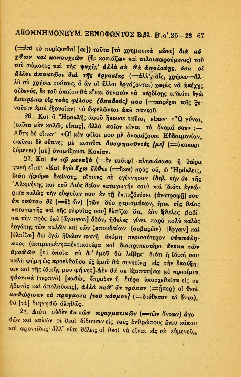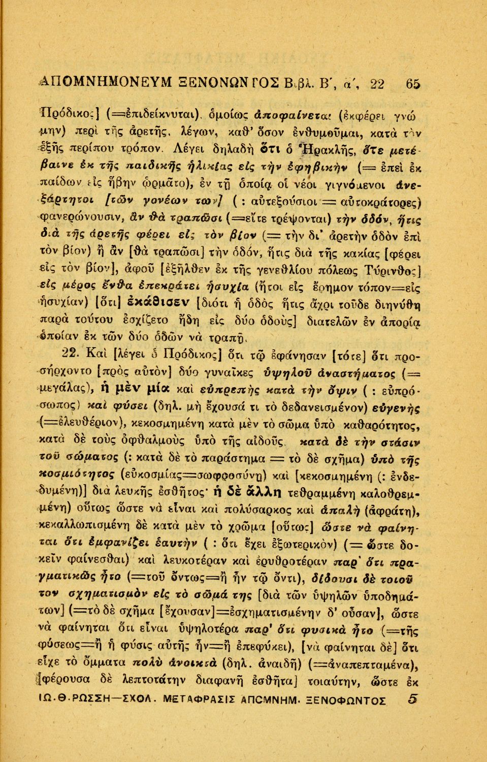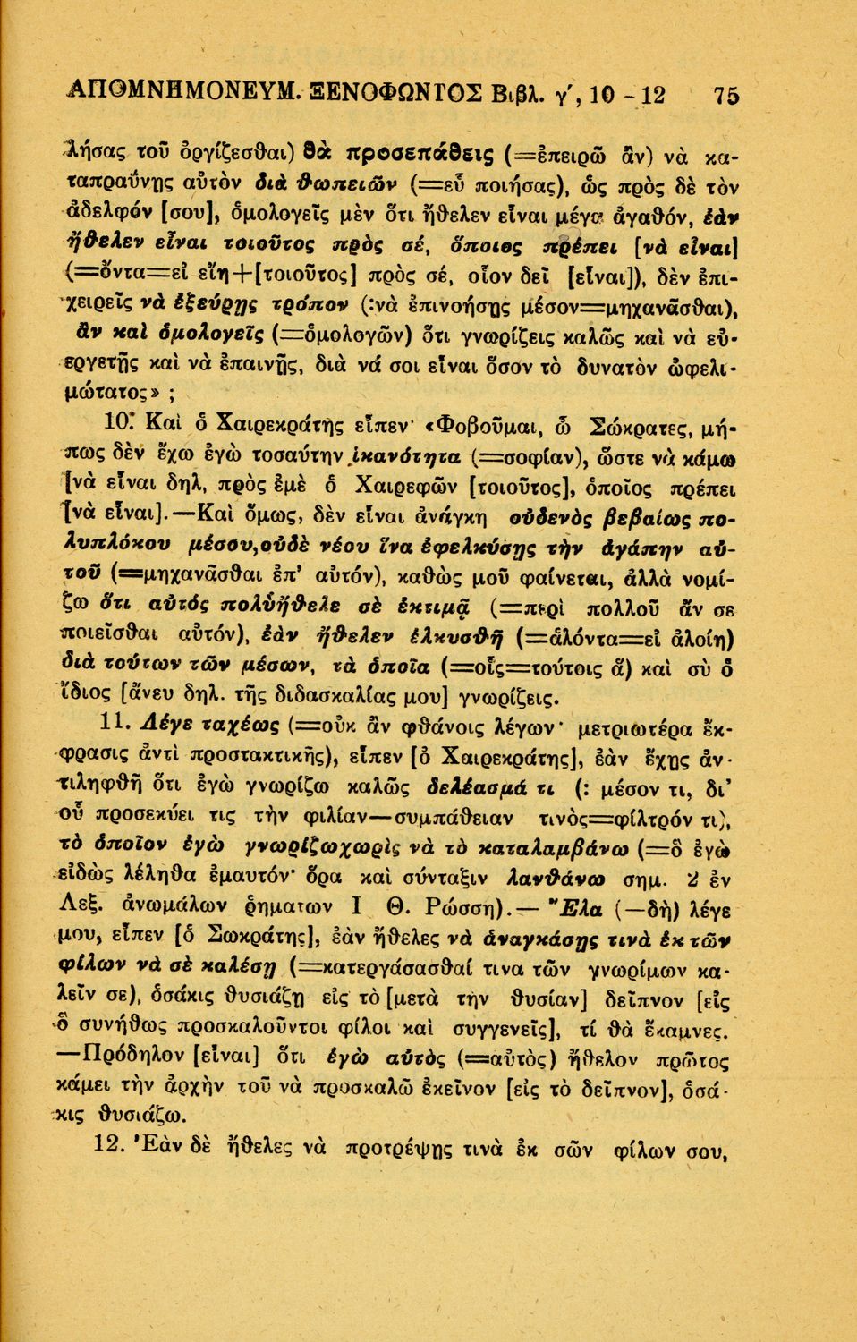 Μαθητικό βοήθημα Β΄ Τετραταξίου Γυμνασίου που περιλαμβάνει την μετάφραση αποσπασμάτων από το έργο του Ξενοφώντα Απομνημονεύματα και πραγματολογικά, γραμματικά και λεξιλογικά σχόλια.