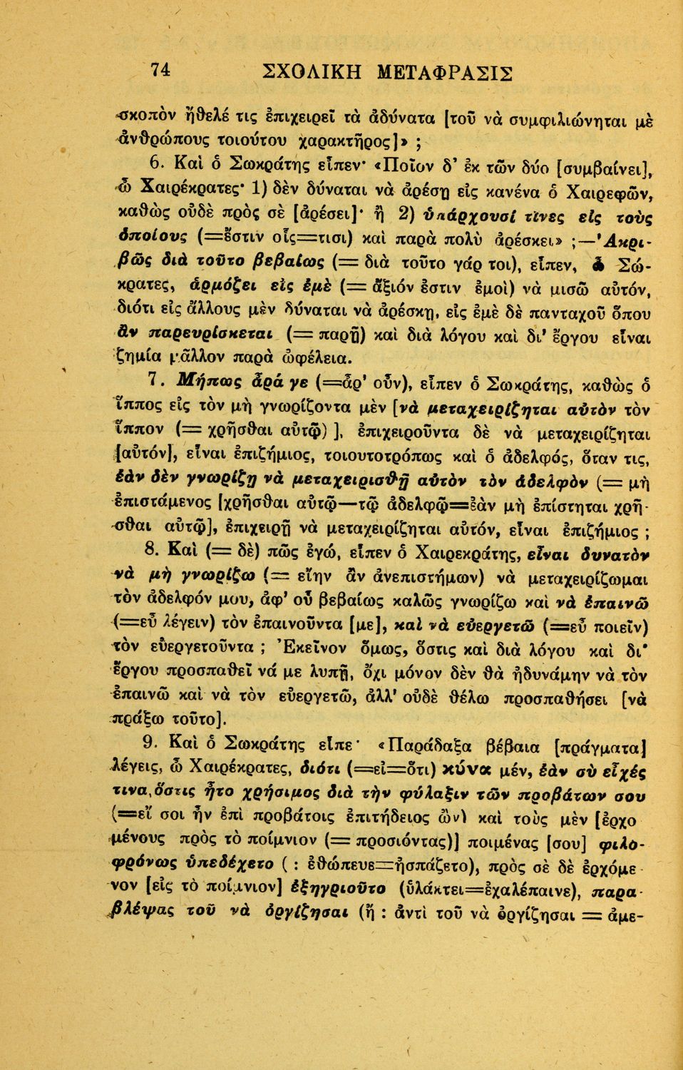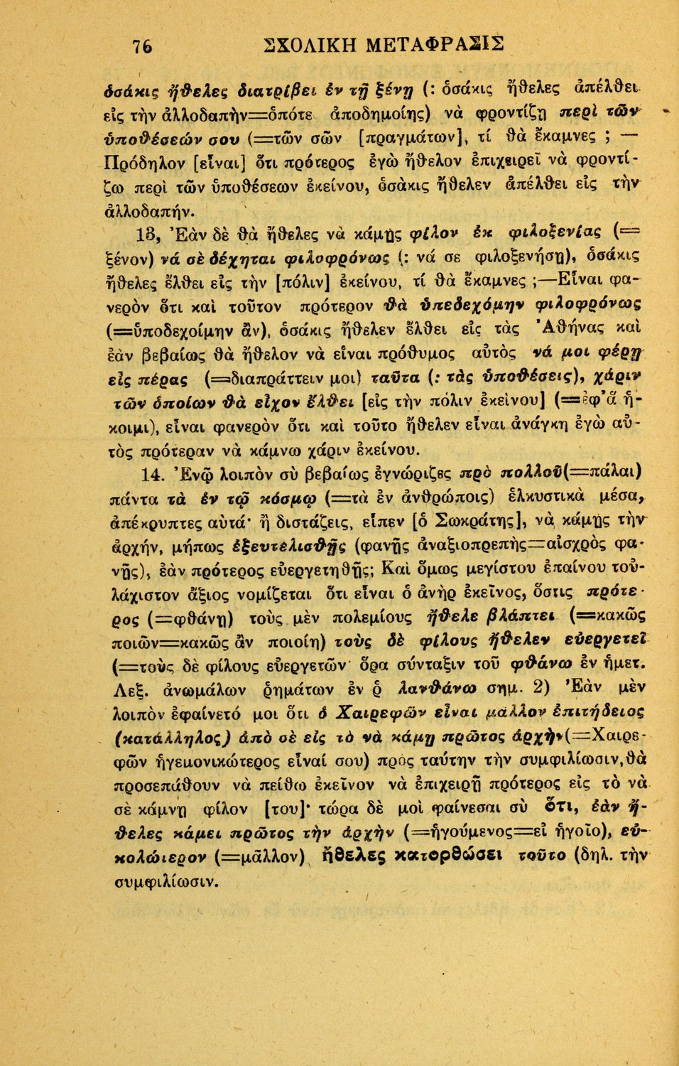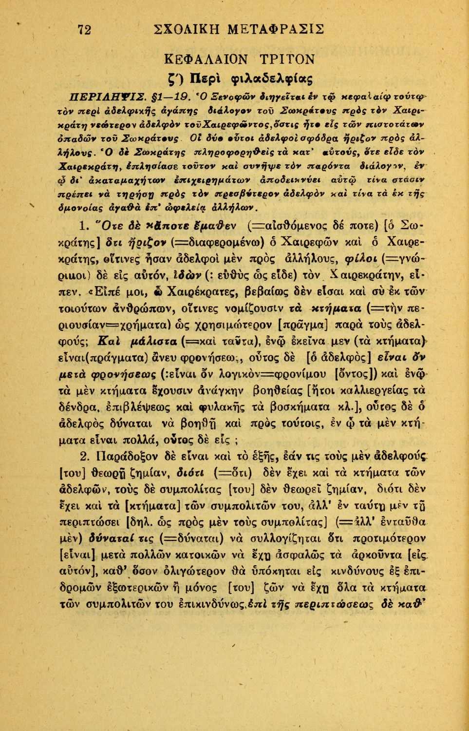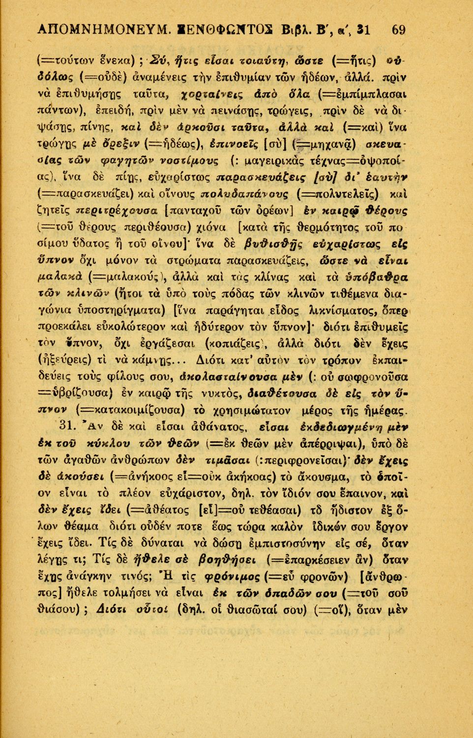 Μαθητικό βοήθημα Β΄ Τετραταξίου Γυμνασίου που περιλαμβάνει την μετάφραση αποσπασμάτων από το έργο του Ξενοφώντα Απομνημονεύματα και πραγματολογικά, γραμματικά και λεξιλογικά σχόλια.