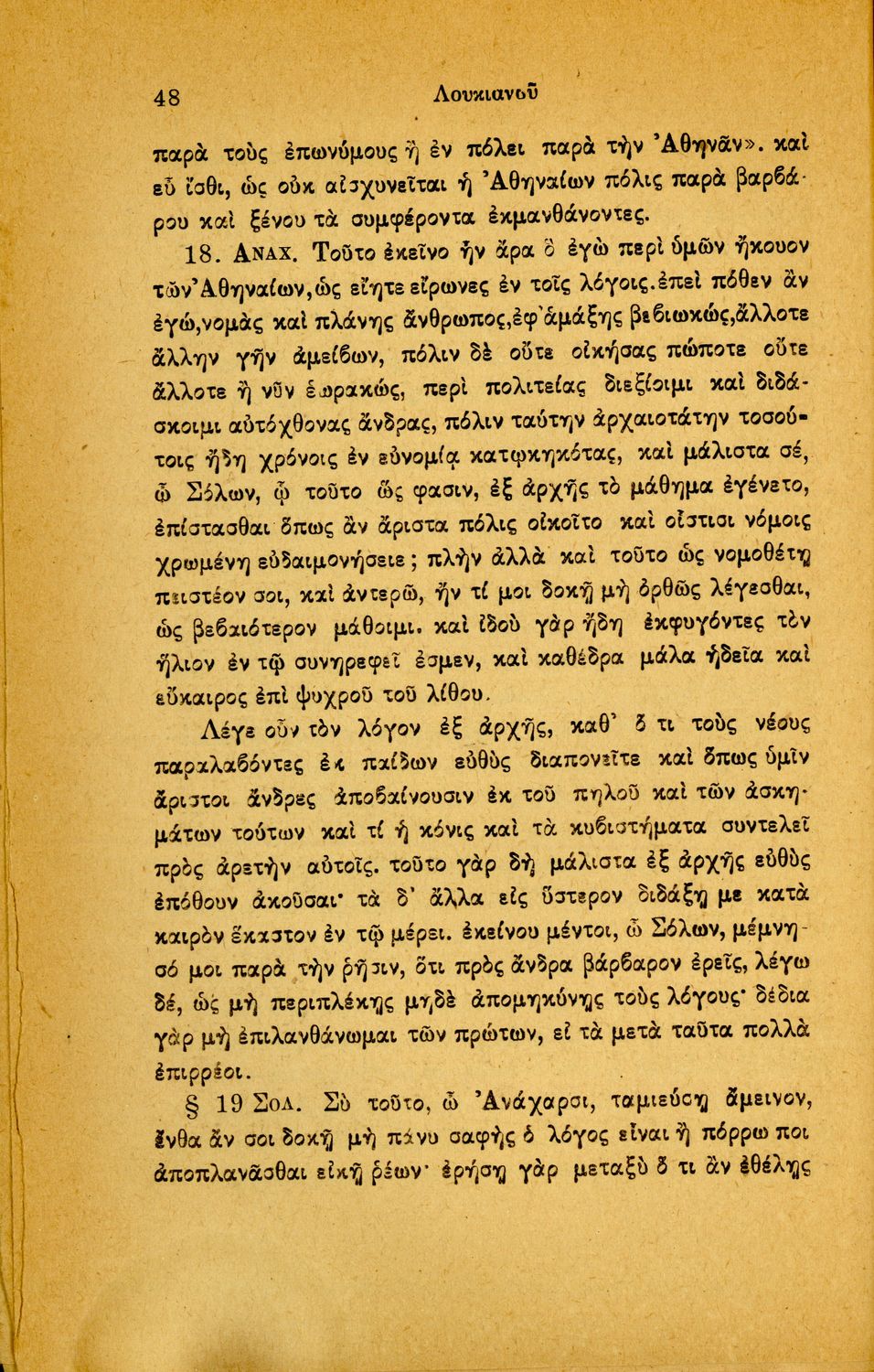 Σχολικό εγχειρίδιο Αρχαίων Ελληνικών Γ' Ελληνικού Σχολείου που περιλαμβάνει γραμματική της αρχαίας ελληνικής, αποσπάσματα από το έργο του Ξενοφώντα Ελληνικά και τα έργα του Λουκιανού Ενύπνιον και Ανάχαρσις, ...