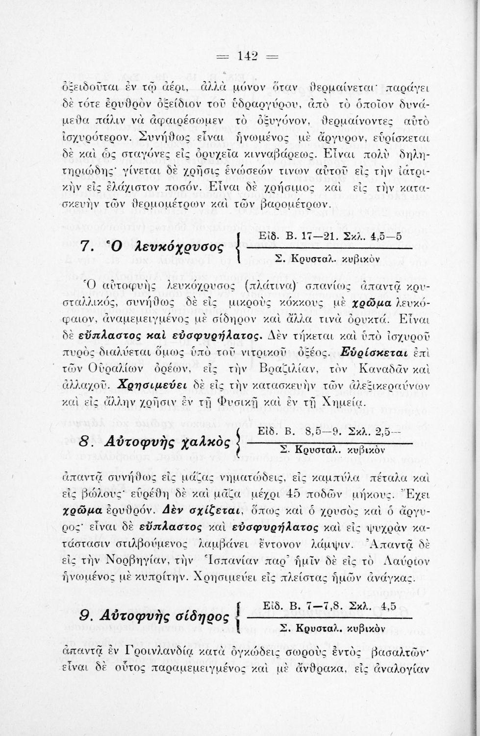Σχολικό εγχειρίδιο Γεωλογίας/Ορυκτολογίας για τη Β΄ Γυμνασίου που παρουσιάζει τα ορυκτά με βάση την κλάση στην οποία ανήκουν. Περιέχει και πίνακα των γεωλογικών περιόδων.