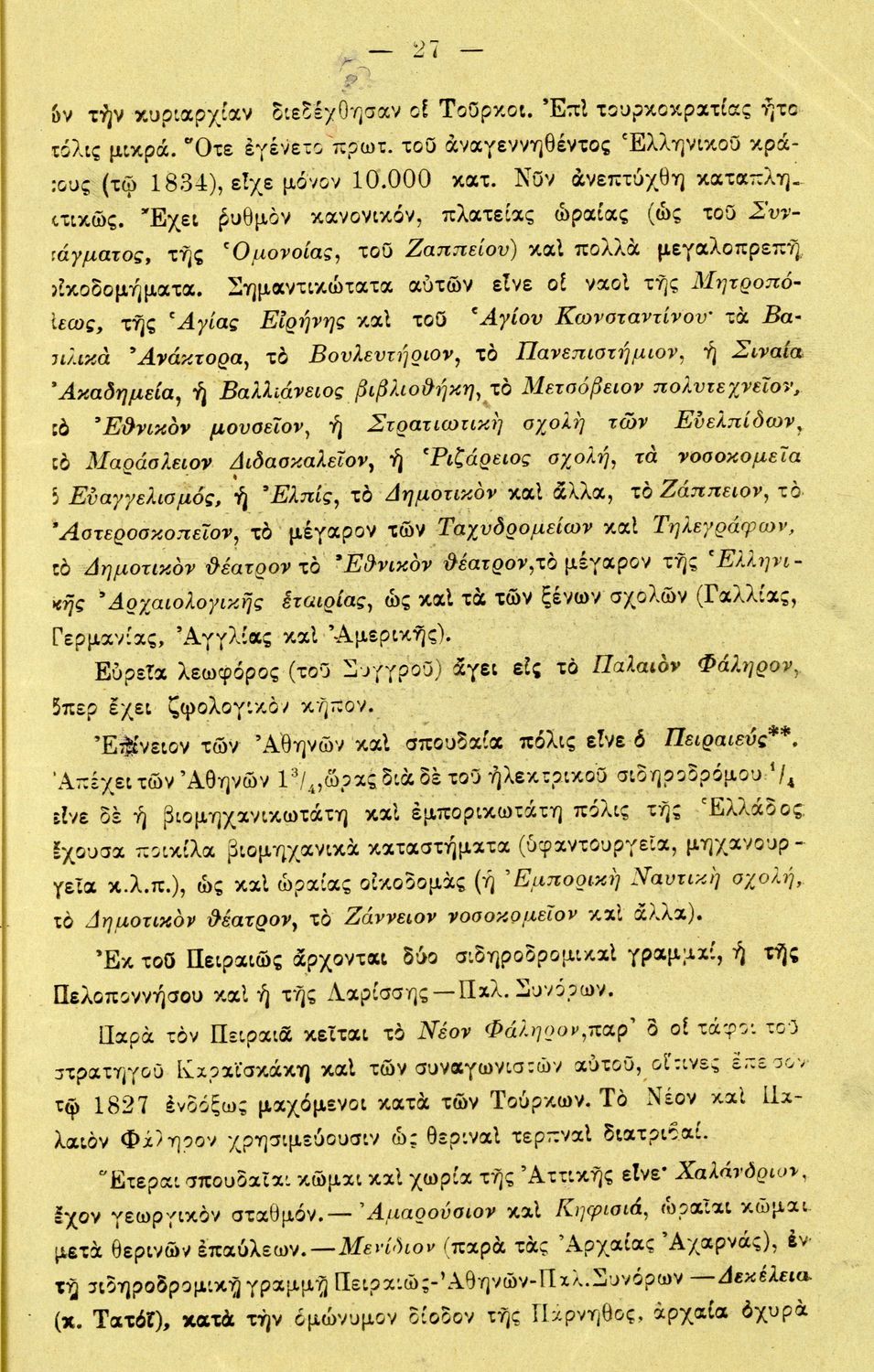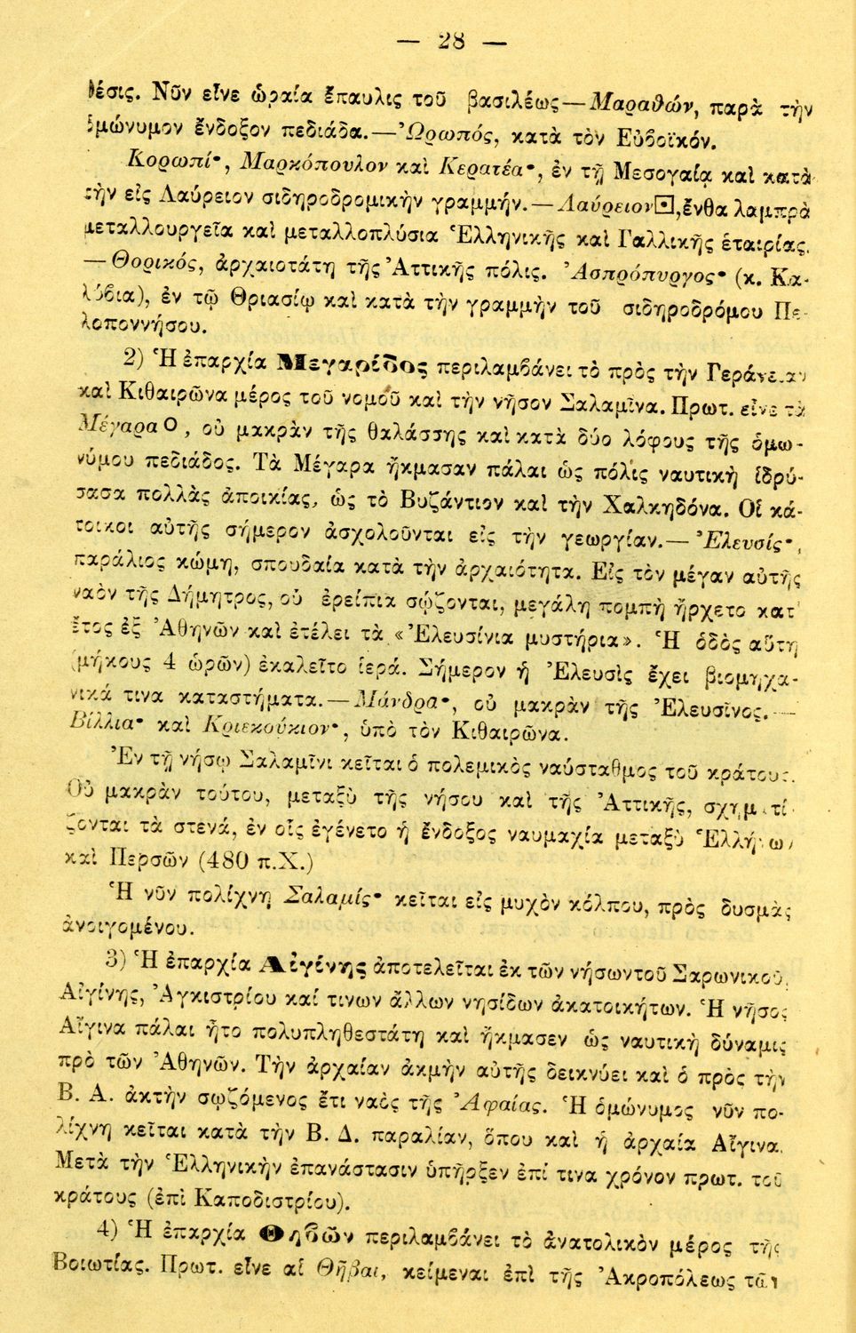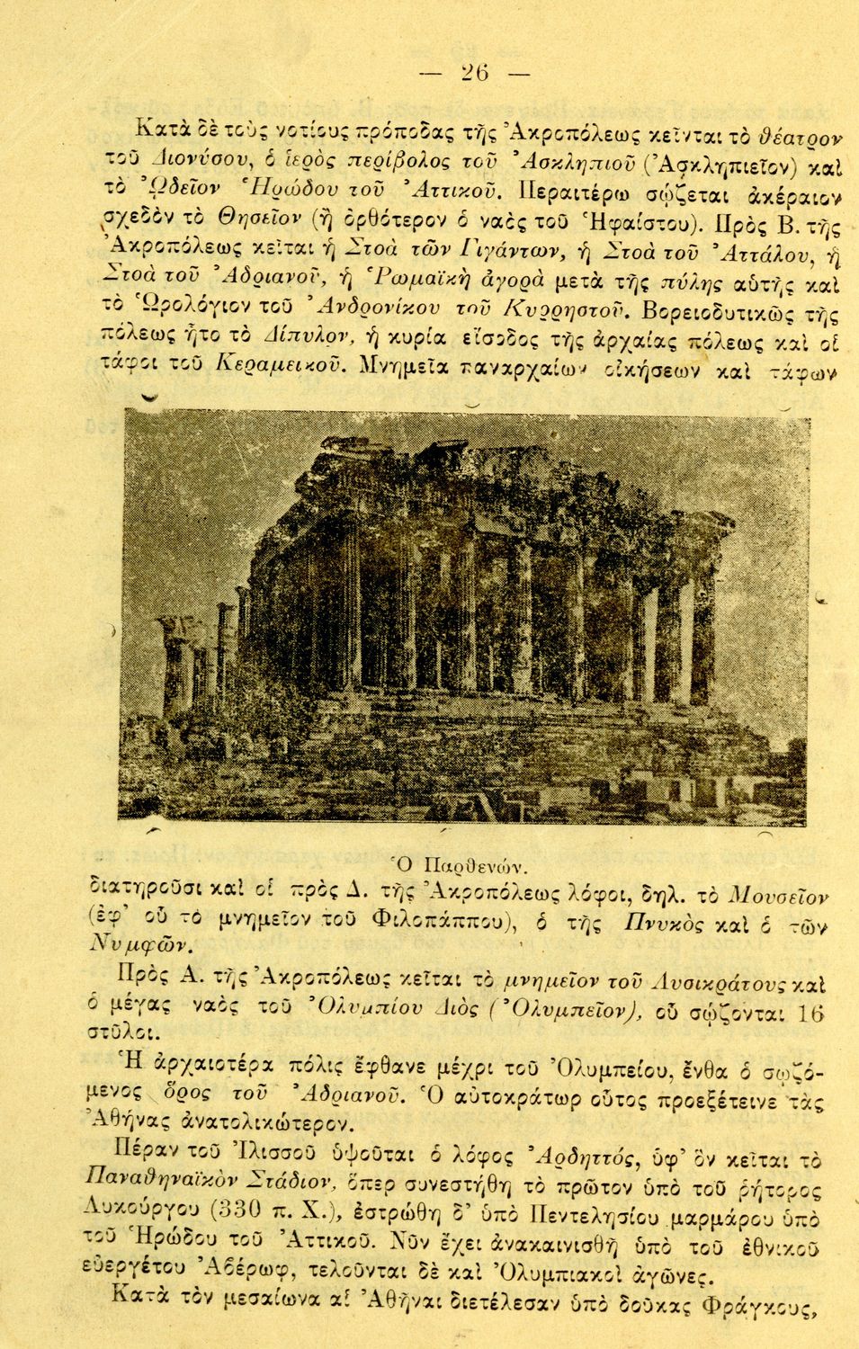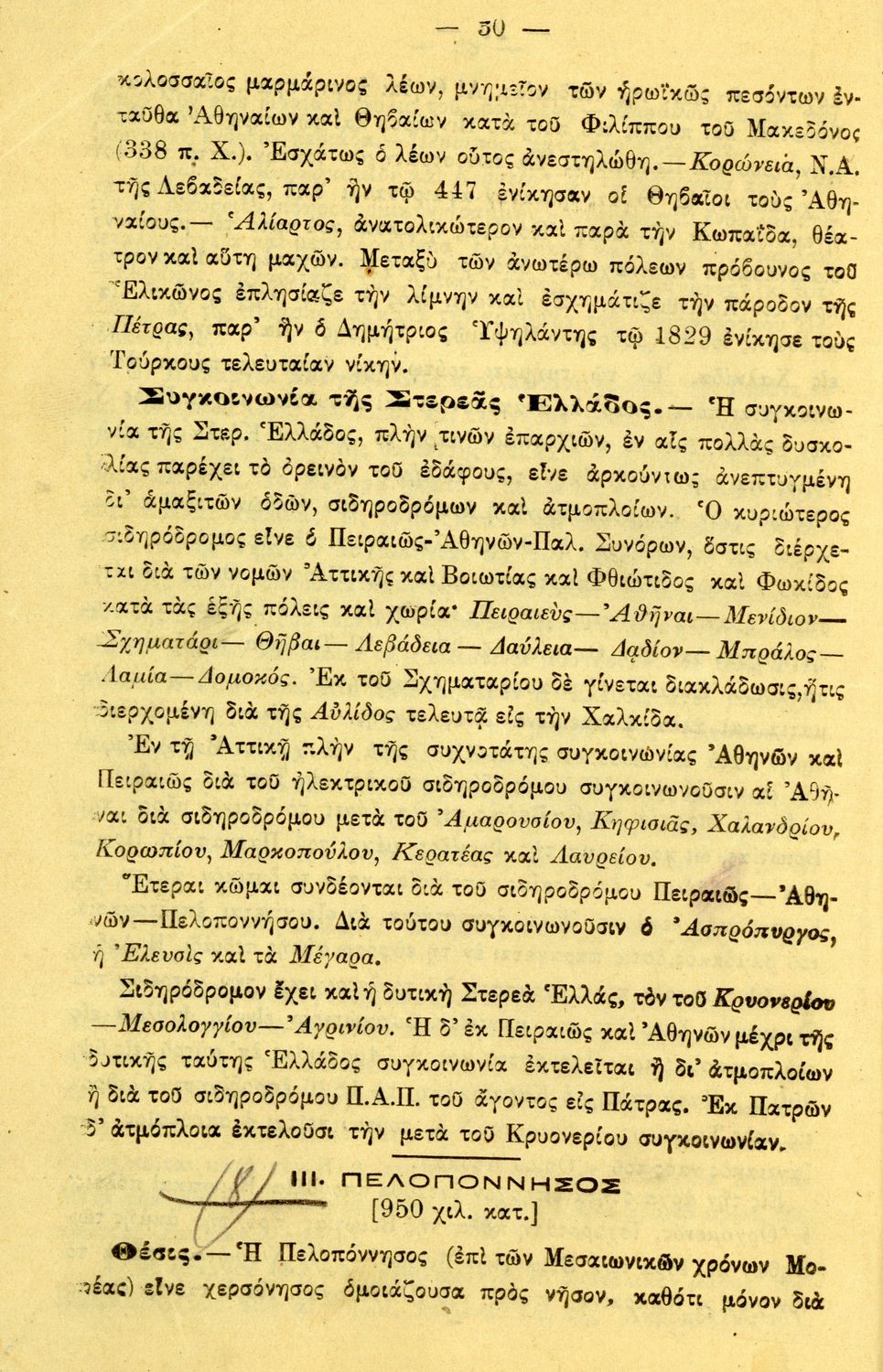 Σχολικό εγχειρίδιο Γεωγραφίας Γ΄ Ελληνικού Σχολείου που αποτελεί μια γενική επισκόπηση της Ελλάδας ανά διαμέρισμα και νομό. Περιέχει και ειδικό κεφάλαιο για τις "λοιπές ελληνικές χώρες" στις οποίες περιλαμβάνονται τα Δωδεκάνησα, η Τουρκική Θράκη, η Ανατολική Ρωμυλία, η Σερβική και Βουλγαρική Μακεδονία, η Μικρά Ασία, η Συρία, η Παλαιστίνη, και η Κύπρος.