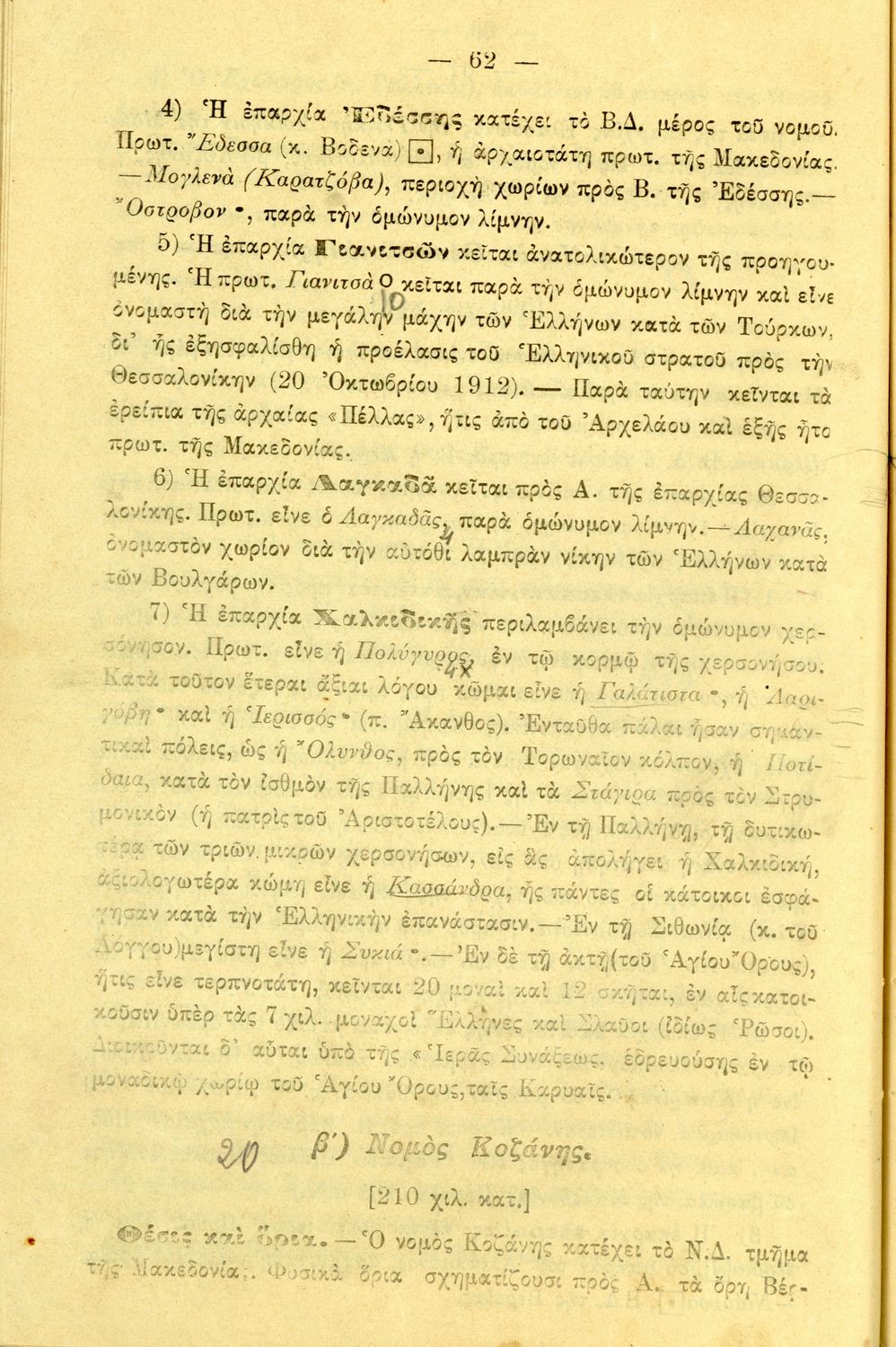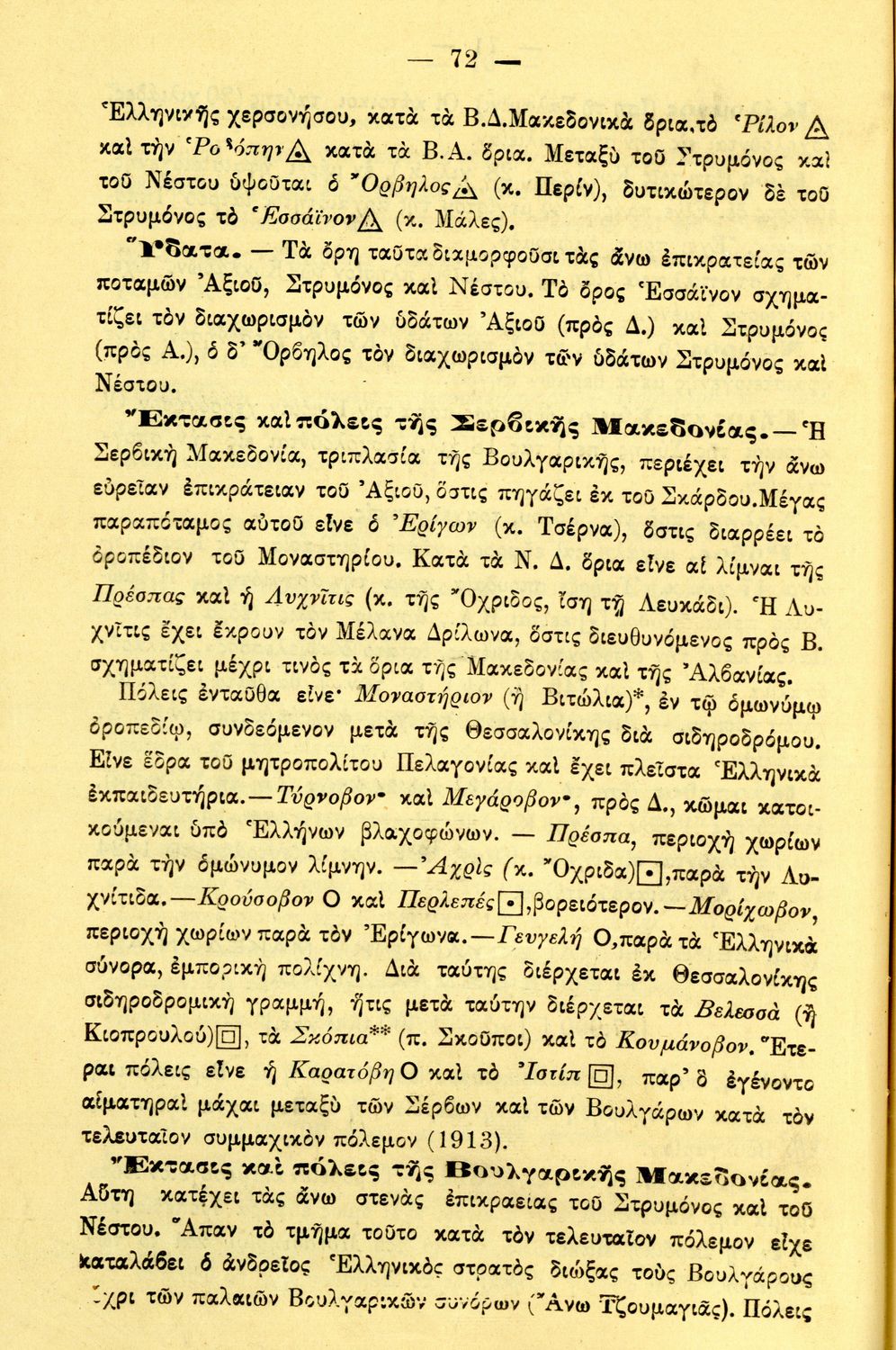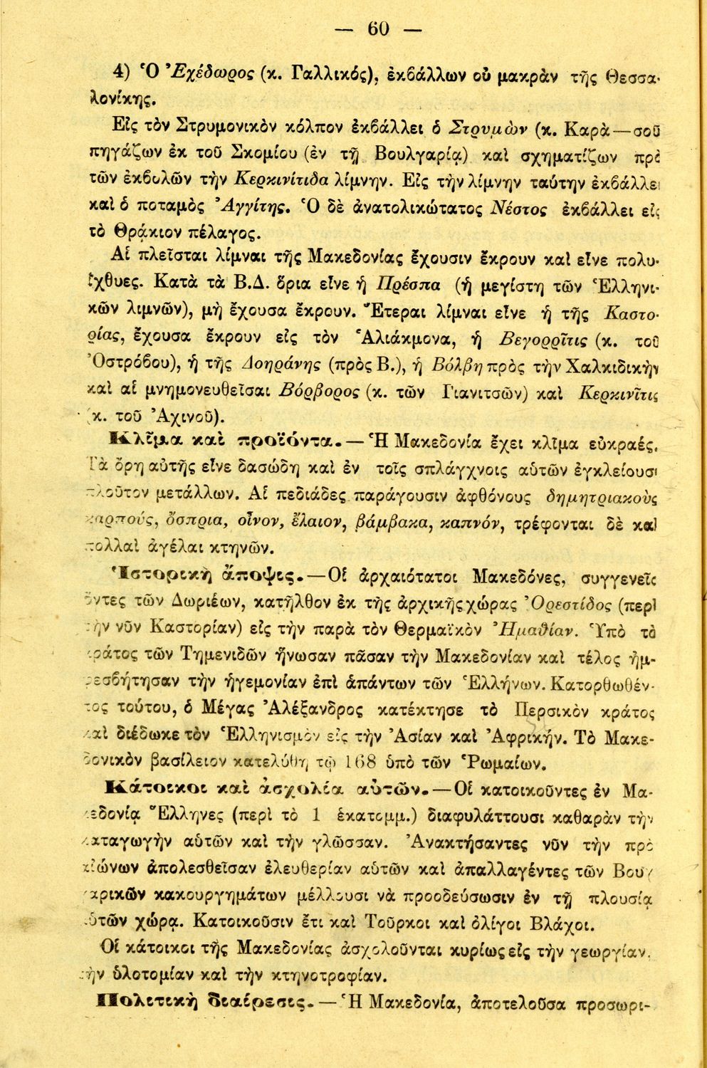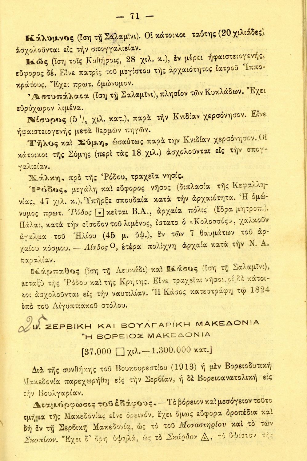 Σχολικό εγχειρίδιο Γεωγραφίας Γ΄ Ελληνικού Σχολείου που αποτελεί μια γενική επισκόπηση της Ελλάδας ανά διαμέρισμα και νομό. Περιέχει και ειδικό κεφάλαιο για τις "λοιπές ελληνικές χώρες" στις οποίες περιλαμβάνονται τα Δωδεκάνησα, η Τουρκική Θράκη, η Ανατολική Ρωμυλία, η Σερβική και Βουλγαρική Μακεδονία, η Μικρά Ασία, η Συρία, η Παλαιστίνη, και η Κύπρος.