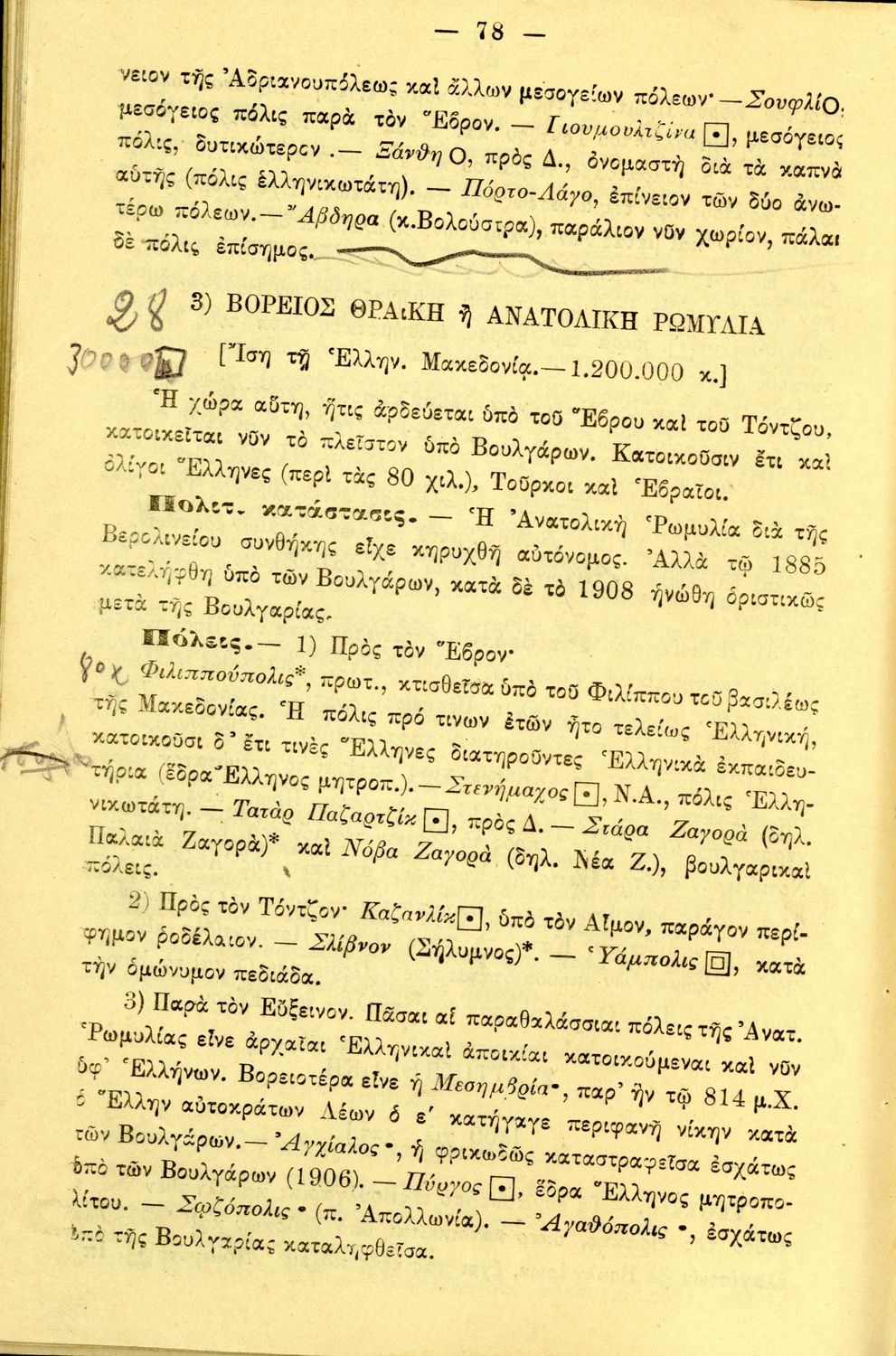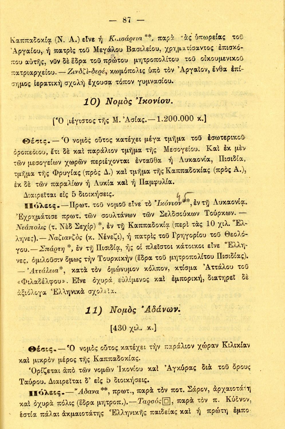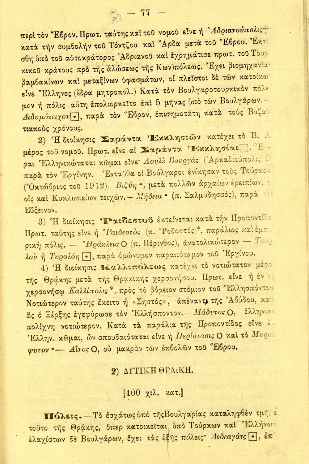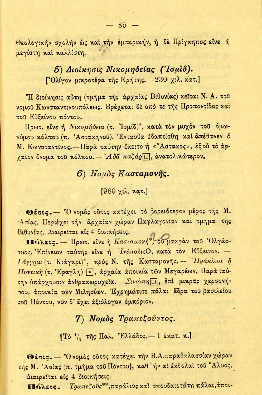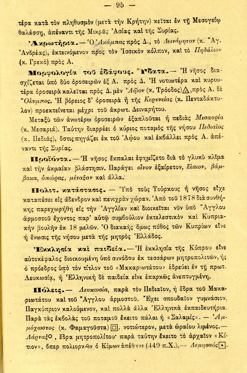 Σχολικό εγχειρίδιο Γεωγραφίας Γ΄ Ελληνικού Σχολείου που αποτελεί μια γενική επισκόπηση της Ελλάδας ανά διαμέρισμα και νομό. Περιέχει και ειδικό κεφάλαιο για τις "λοιπές ελληνικές χώρες" στις οποίες περιλαμβάνονται τα Δωδεκάνησα, η Τουρκική Θράκη, η Ανατολική Ρωμυλία, η Σερβική και Βουλγαρική Μακεδονία, η Μικρά Ασία, η Συρία, η Παλαιστίνη, και η Κύπρος.