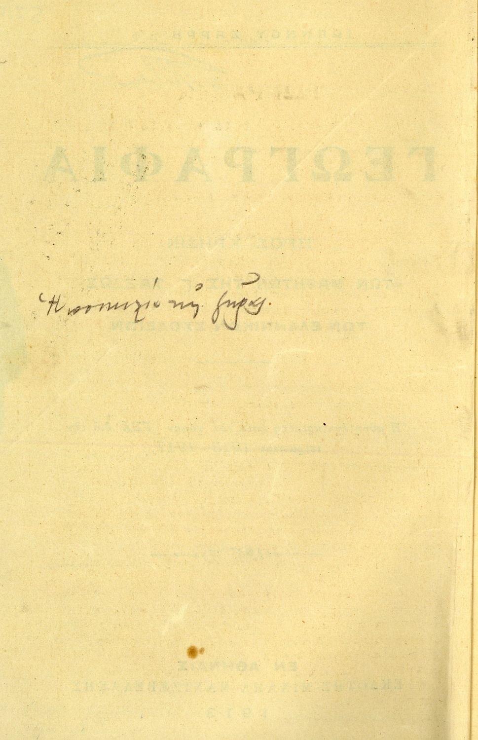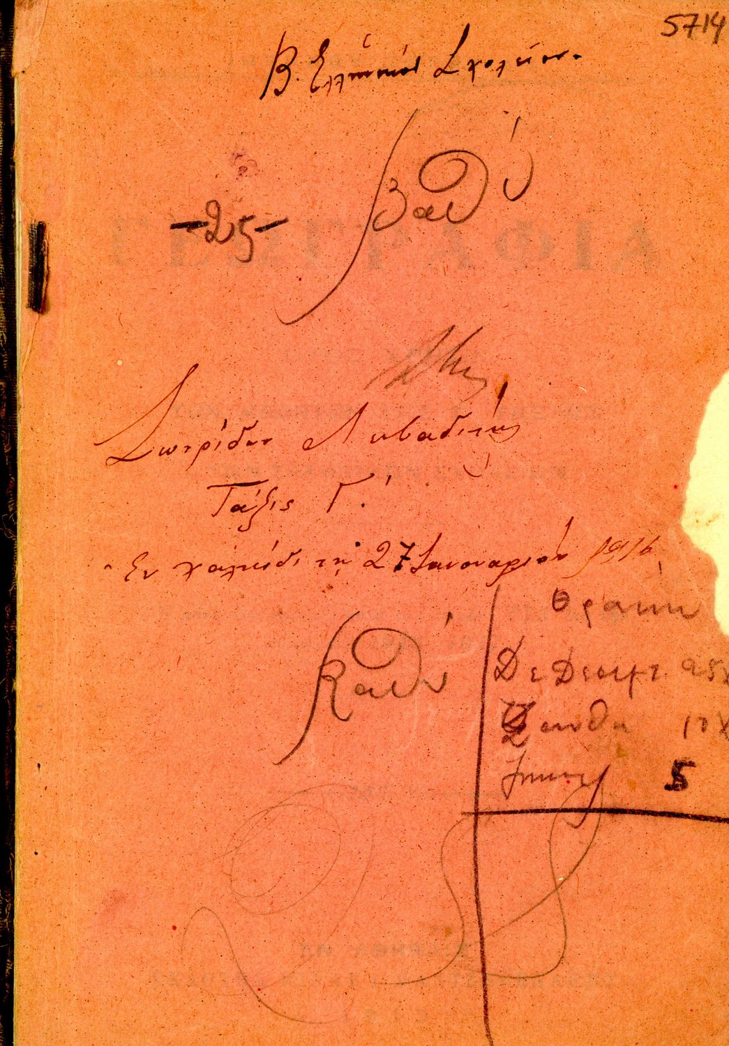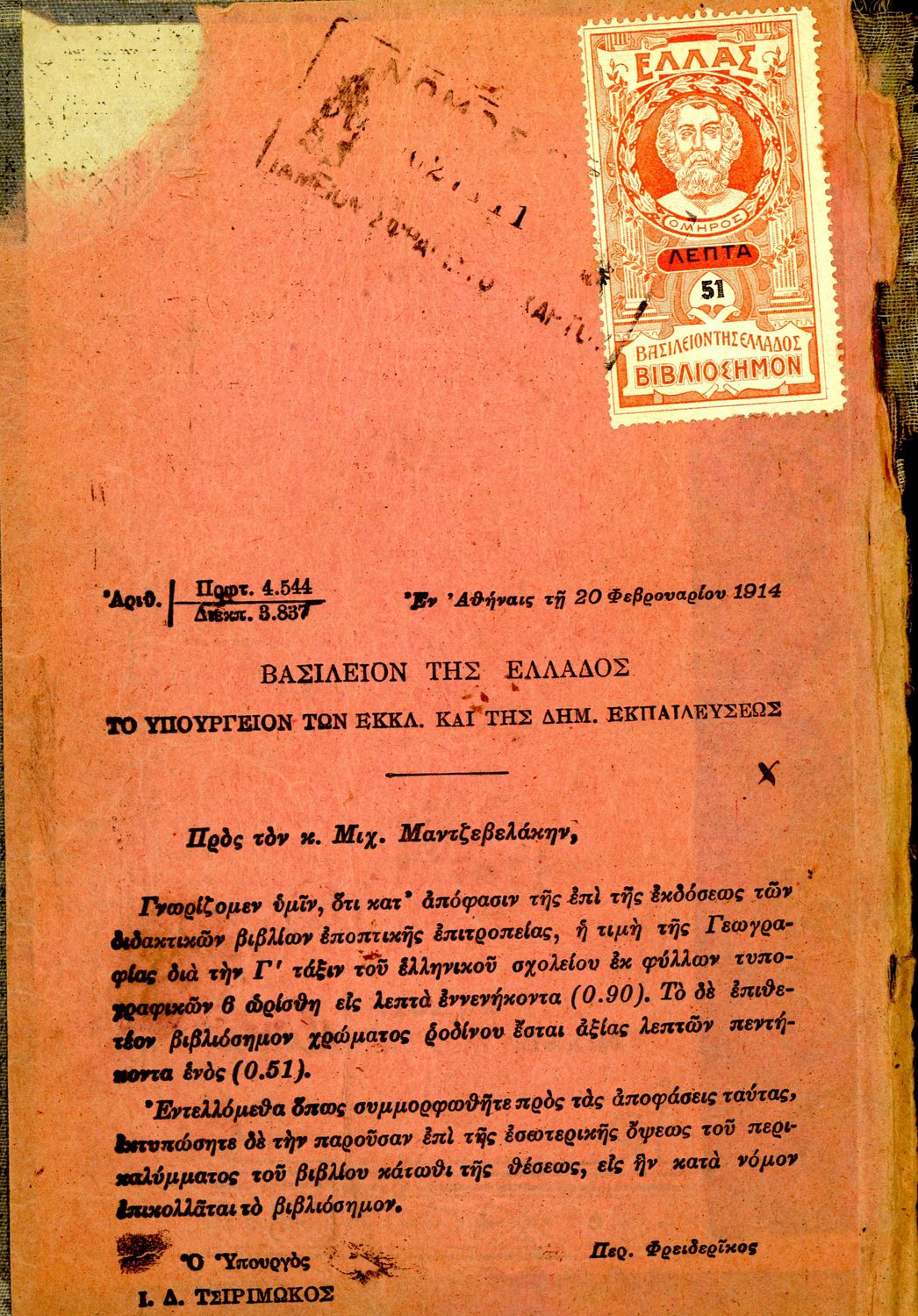 Εκδότης: Μ. Μαντζεβελάκης Έτος έκδοσης: 1913 Τόπος έκδοσης: Αθήνα Υπουργική απόφαση / Σύμβαση: 4544/20-2-1914 |