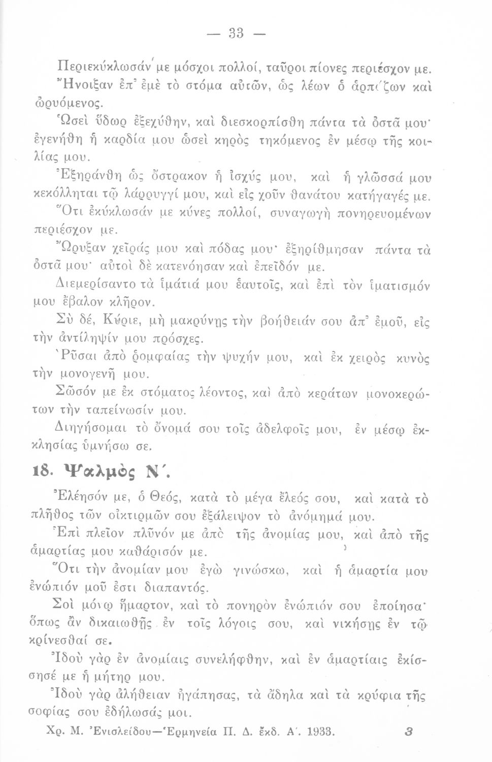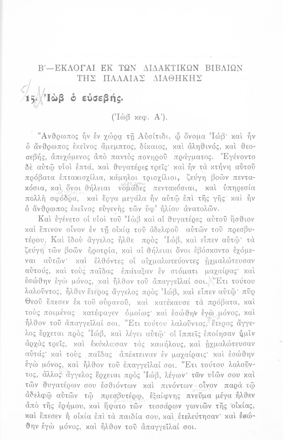 Τίτλος: Ερμηνεία περικοπών εκ των βιβλίων της Παλαιάς Διαθήκης προς χρήσιν των μαθητών της τετάρτης τάξεως των Γυμνασίων και της αντιστοίχου των λοιπών σχολείων της Μέσης Εκπαιδεύσεως