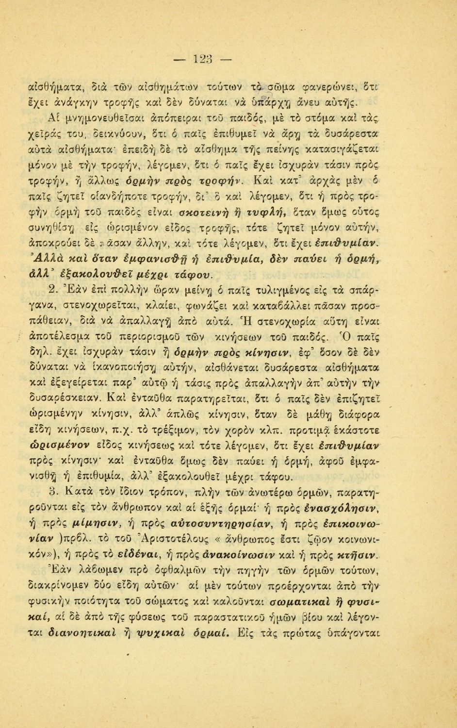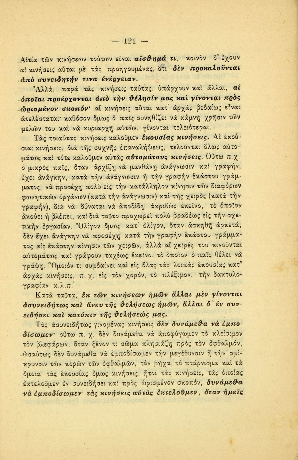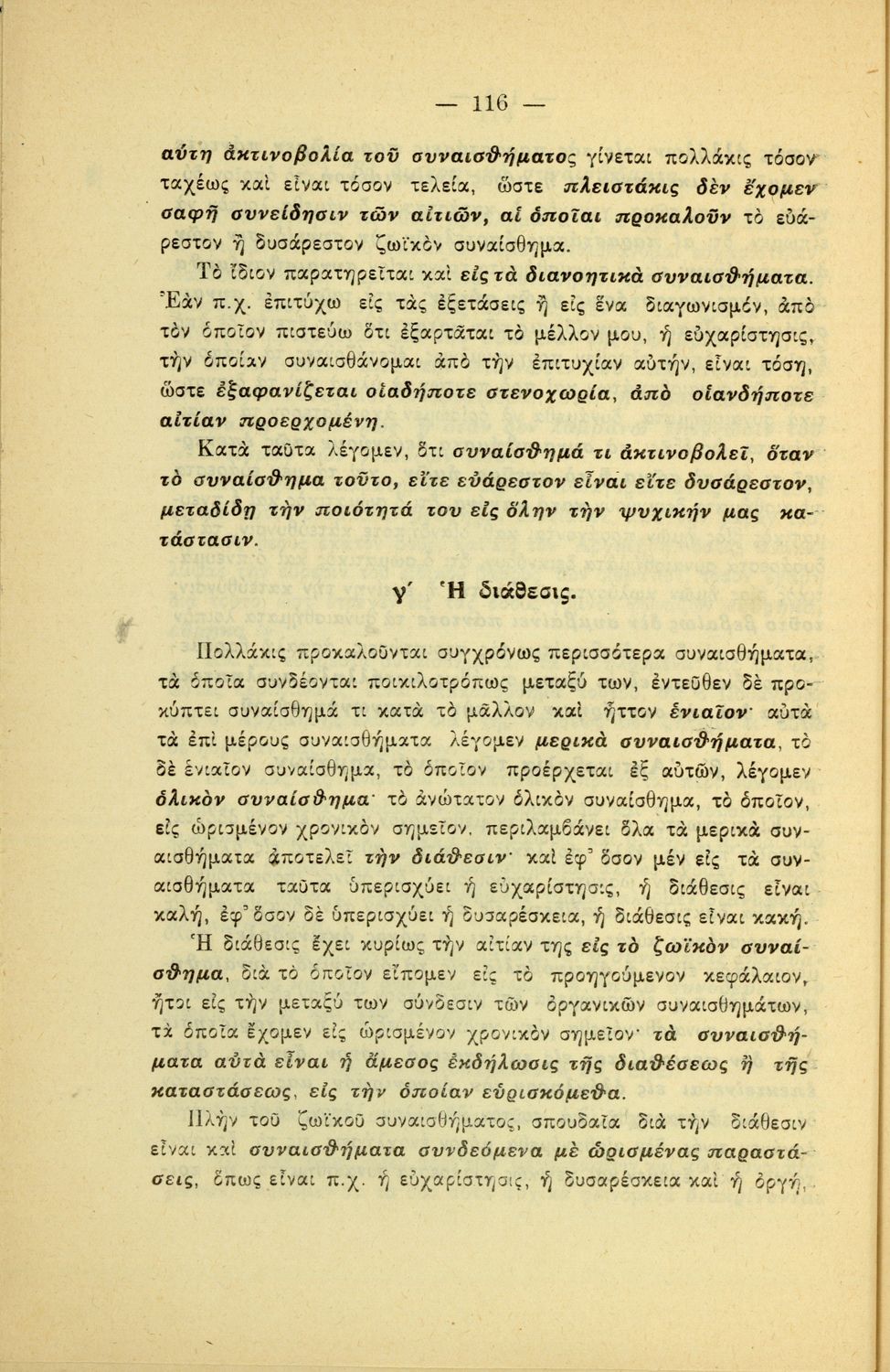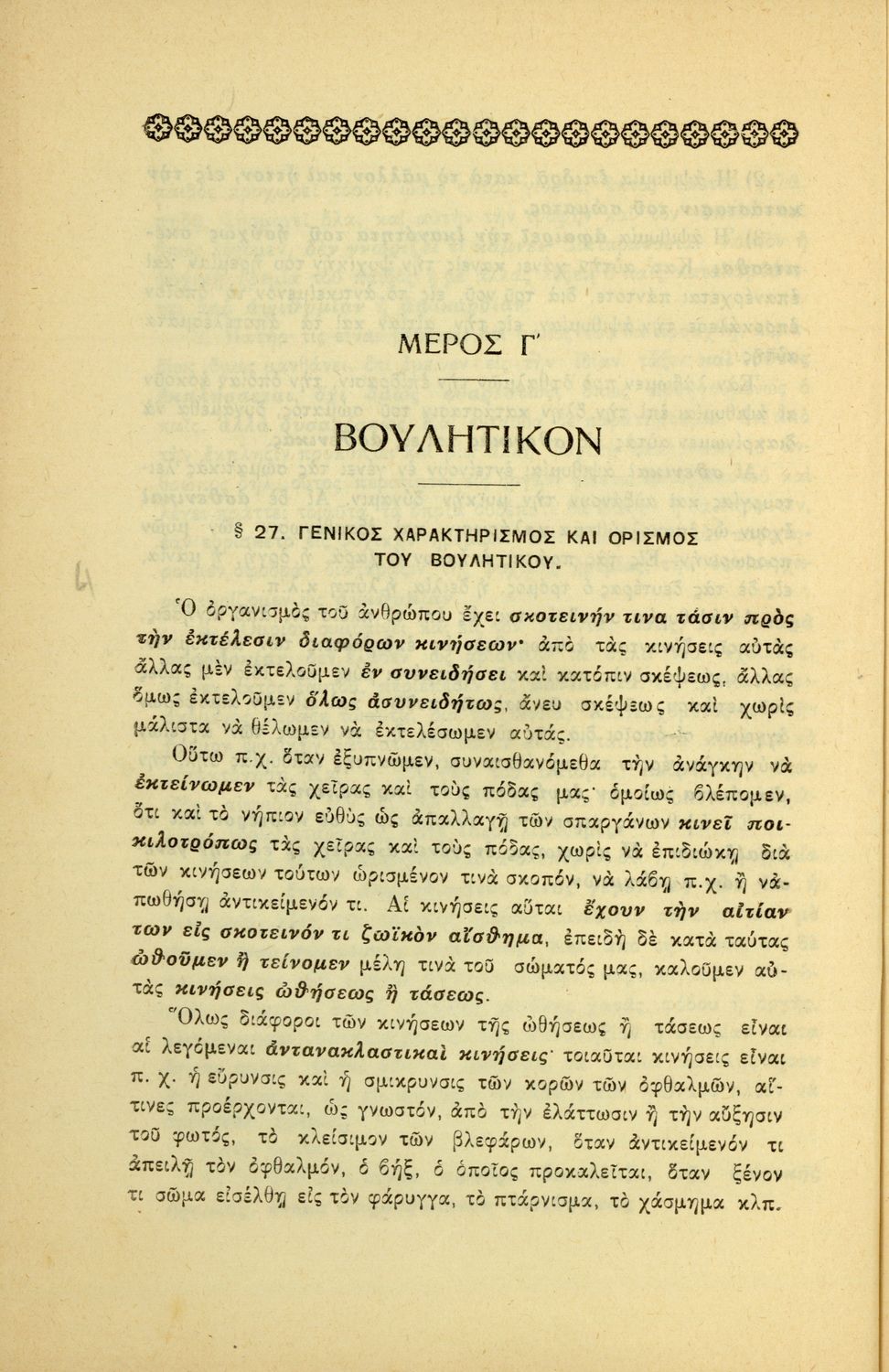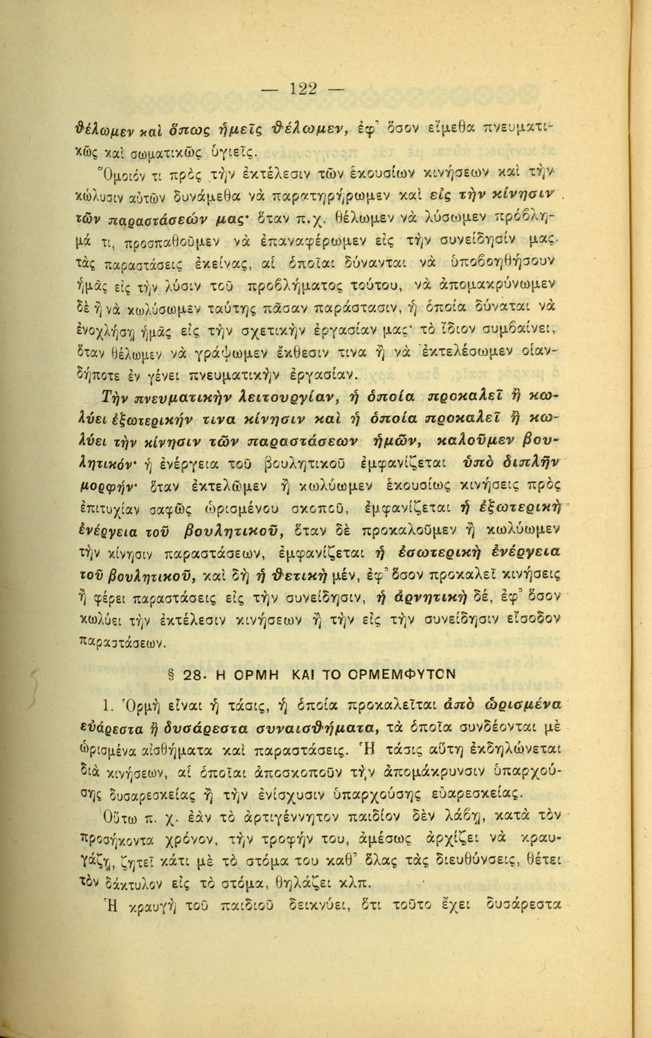 Σχολικό εγχειρίδιο Πειραματικής Ψυχολογίας για τη Γ΄ Γυμνασίου χωρισμένο σε τρία τμήματα: το παριστάναι, το συναισθάνεσθαι, και το βούλεσθαι.