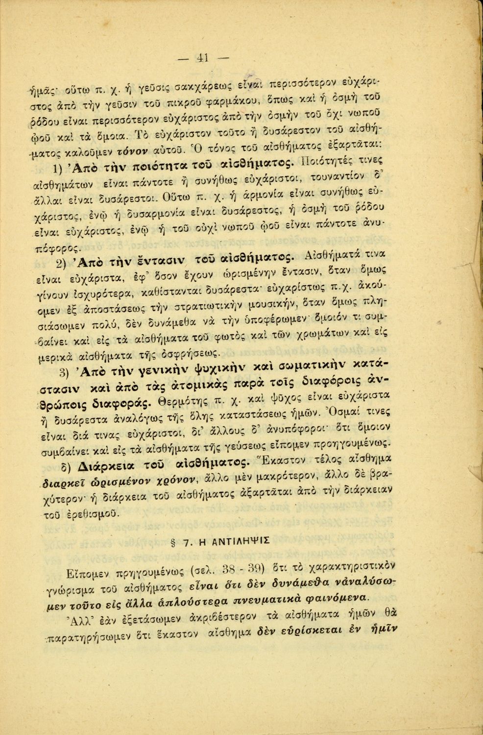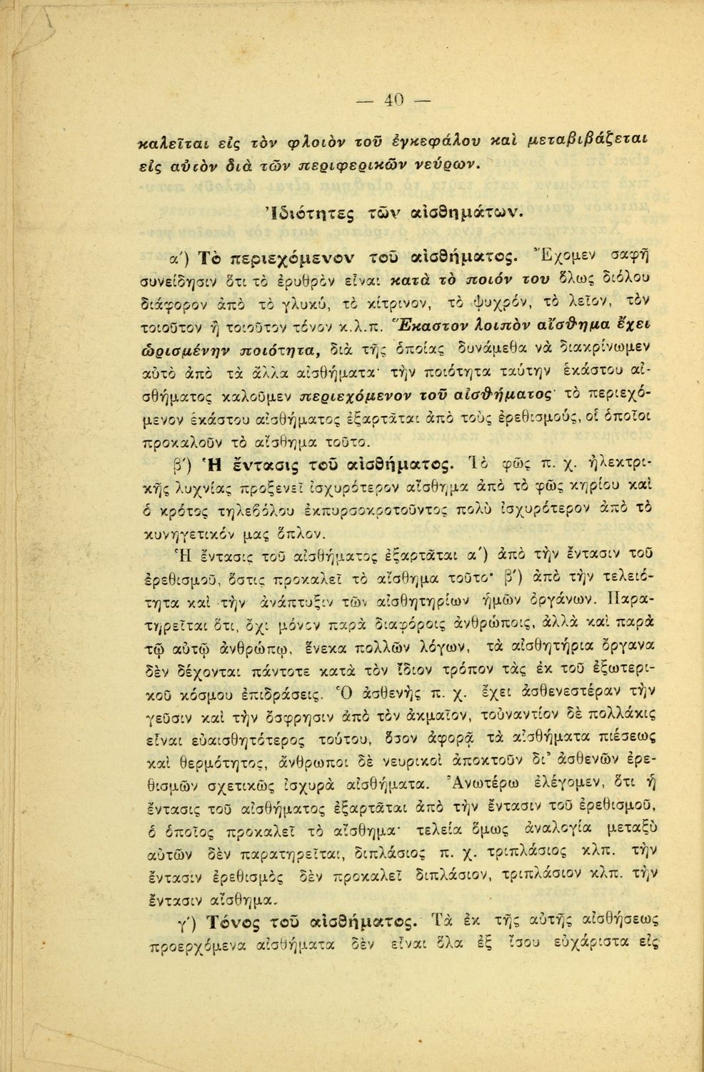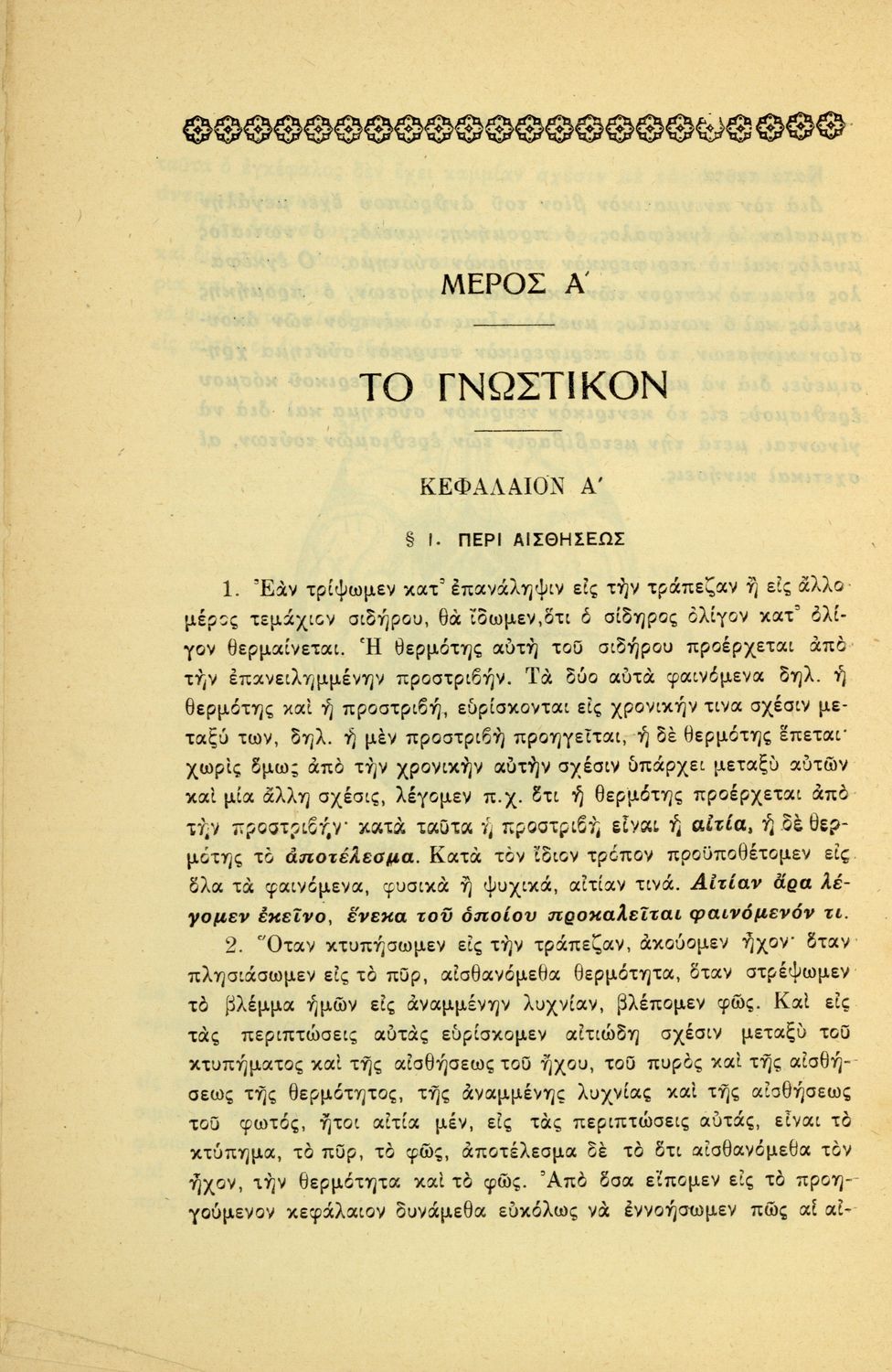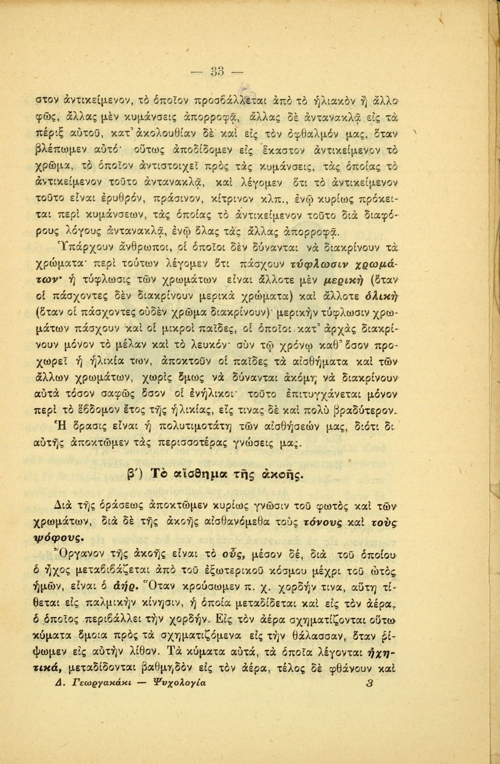 Σχολικό εγχειρίδιο Πειραματικής Ψυχολογίας για τη Γ΄ Γυμνασίου χωρισμένο σε τρία τμήματα: το παριστάναι, το συναισθάνεσθαι, και το βούλεσθαι.