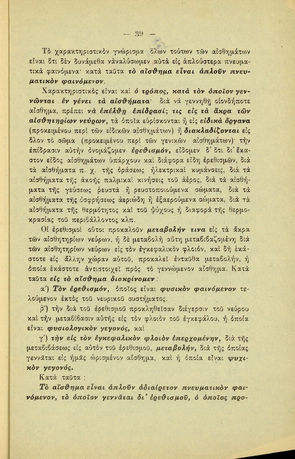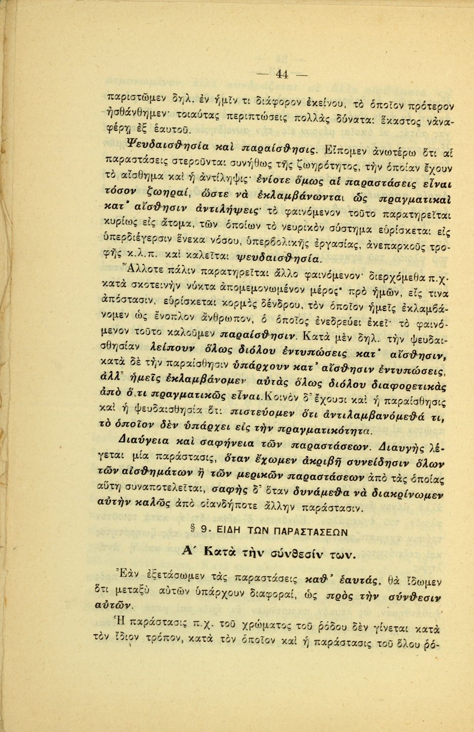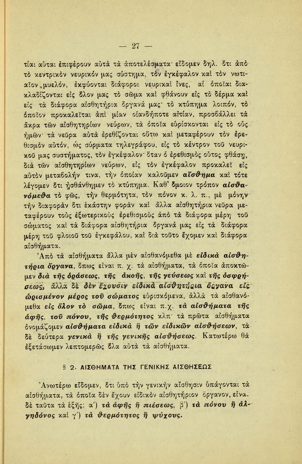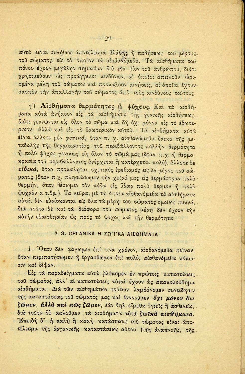 Σχολικό εγχειρίδιο Πειραματικής Ψυχολογίας για τη Γ΄ Γυμνασίου χωρισμένο σε τρία τμήματα: το παριστάναι, το συναισθάνεσθαι, και το βούλεσθαι.