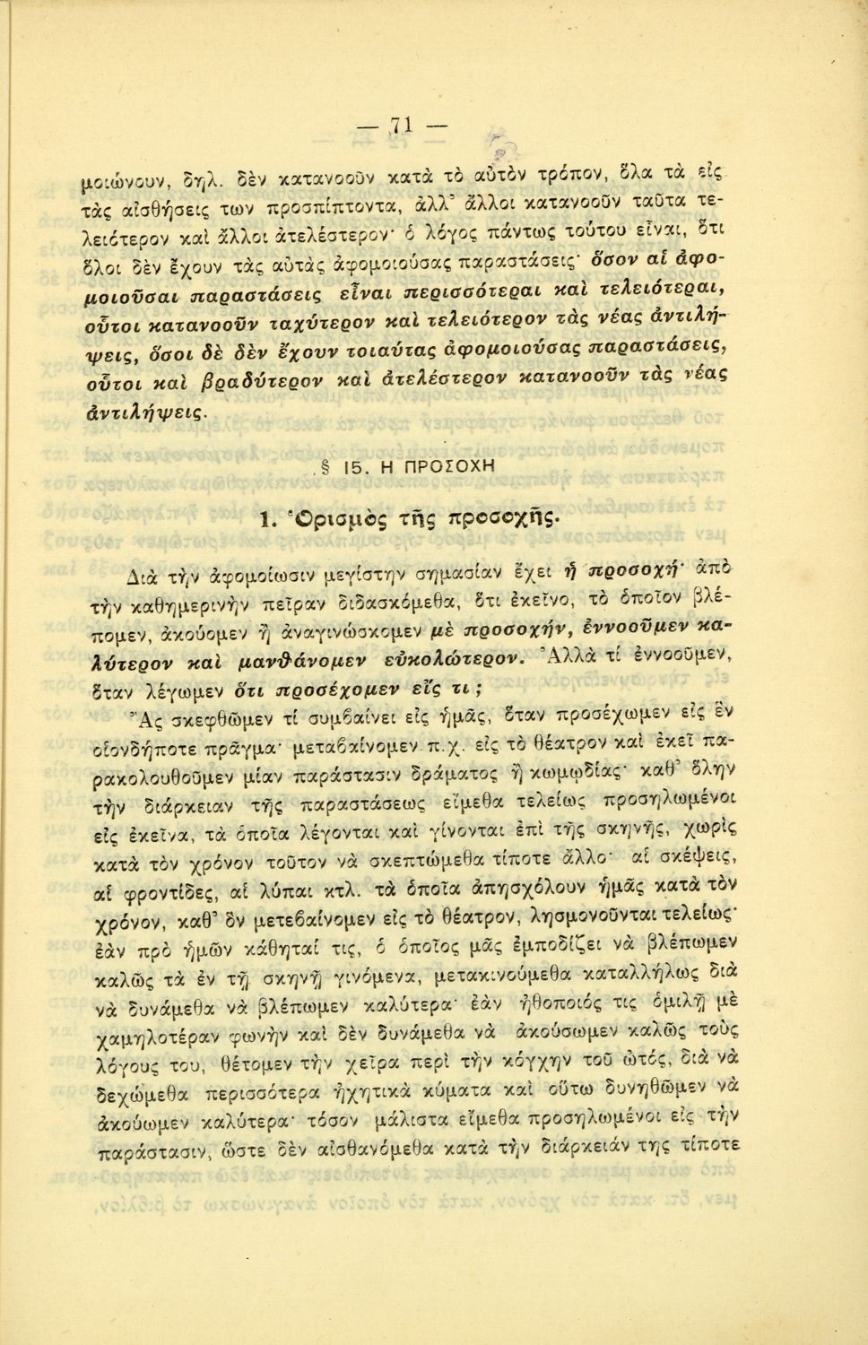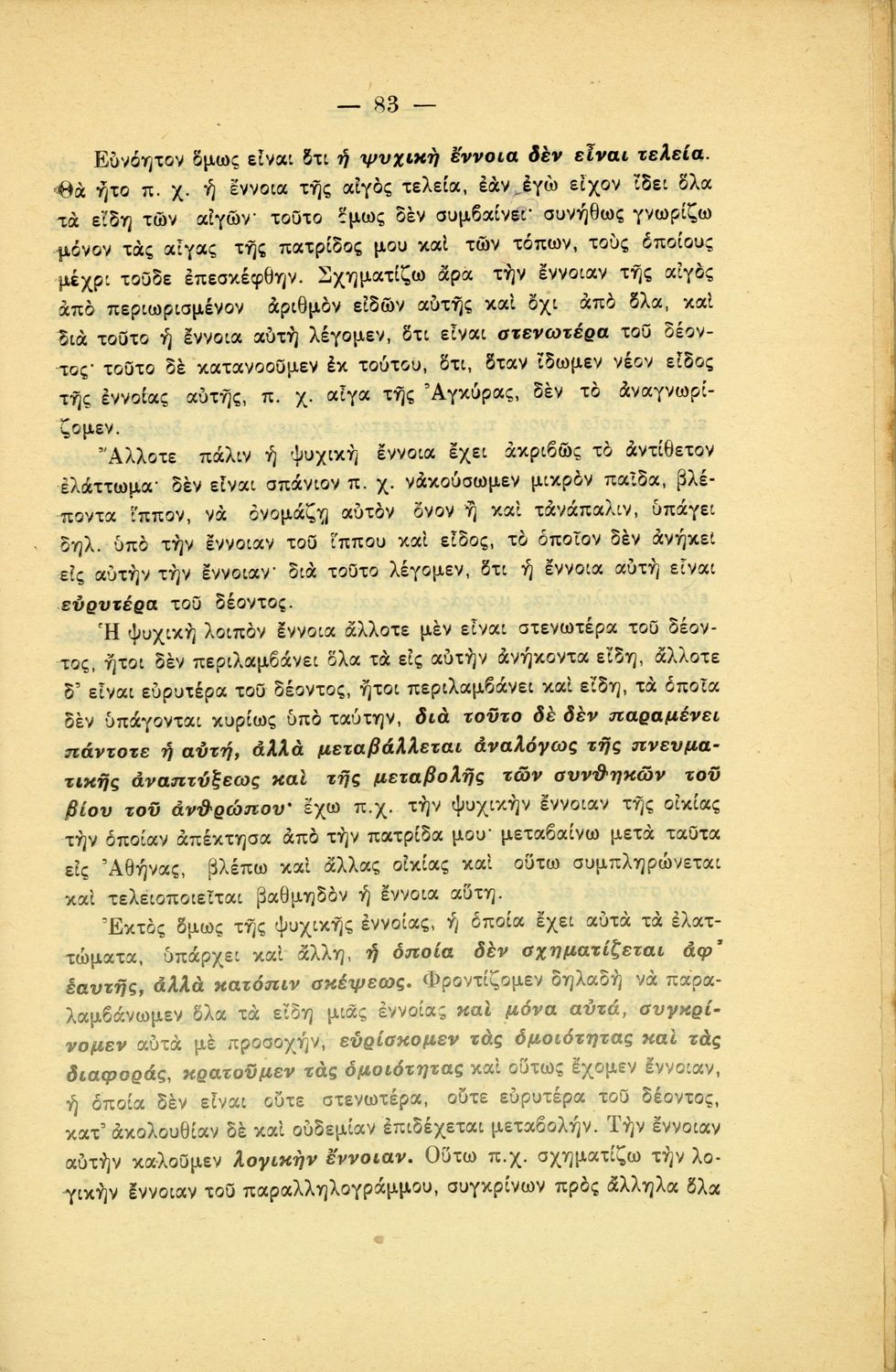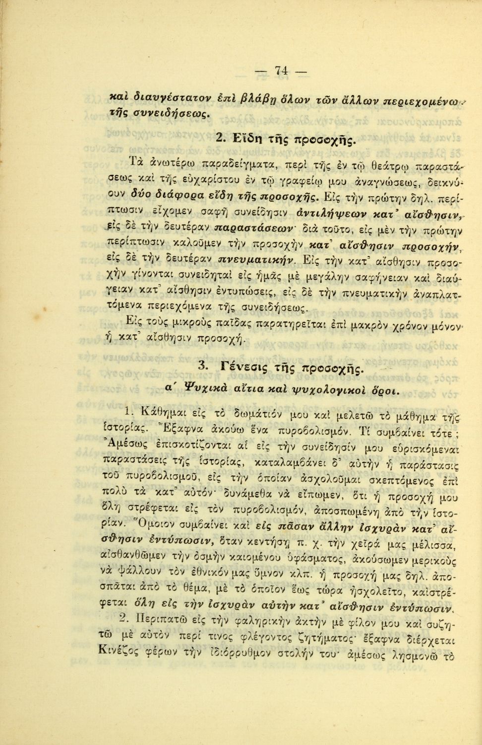 Βαθμίδα εκπαίδευσης: Δευτεροβάθμια Τάξη: Γ' Γυμνασίου Μάθημα: Ψυχολογία Γλώσσα: Καθαρεύουσα Παρουσίαση περιεχομένου: Σχολικό εγχειρίδιο Εμπειρικής Ψυχολογίας για τη Γ΄ Γυμνασίου χωρισμένο σε τρία τμήματα: το γνωστικό, το συναισθηματικό και το βουλητικό. Εξετάζει και τις ανωμαλίες της συνείδησης. |